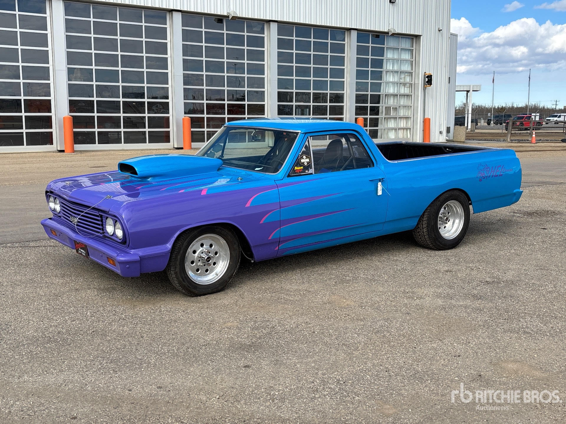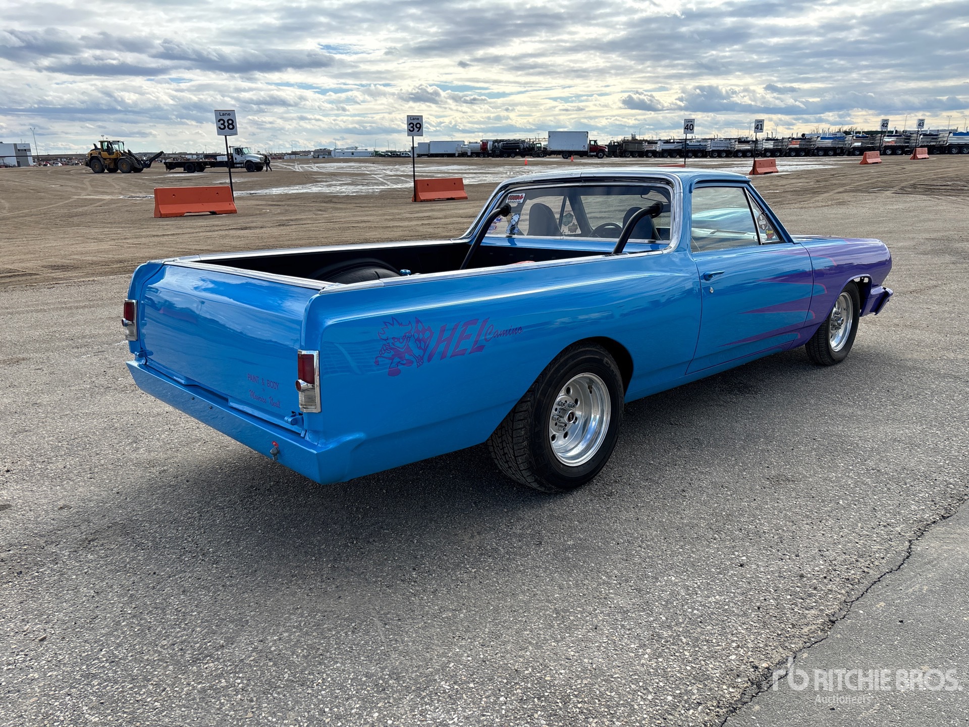 V8 Gasoline Engine, Automatic Transmission, 396 cu in Big Block Bored to 406, 4-barrel Carburetor, Custom-Built Turbo 400 Automatic Transmission, 12-bolt Posi Rear End with 4.11 Gears, Weld Draglite Wheels, Fiberglass Hood, Custom Blue/Purple Paint, Roll Cage, Racing Bucket Seats with Harnesses, N.O.S. System, 4 Core Heavy-Duty Radiator with Electric Fan, Custom Gas Tank & Exhaust, Painless Wiring Harness