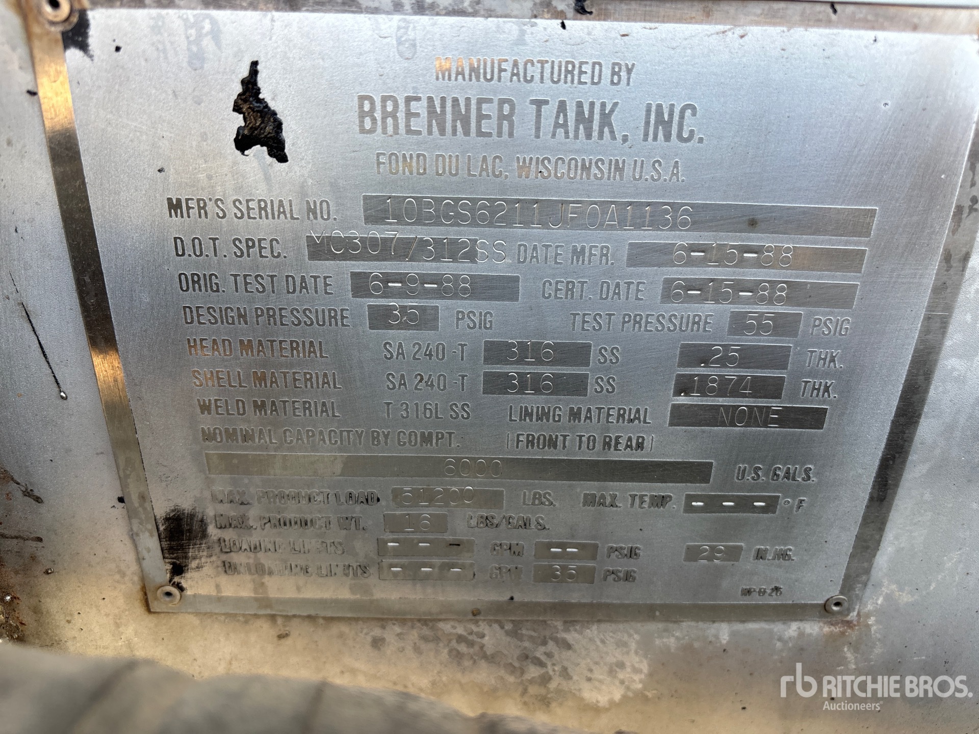 Located in Lane 10 Spot 54, Aluminum Frame, Air Brakes, Aluminum Outer Wheels, 11R24.5 Tires, Stainless Steel Tank, MC307/312SS Code, 68000 lb GVWR