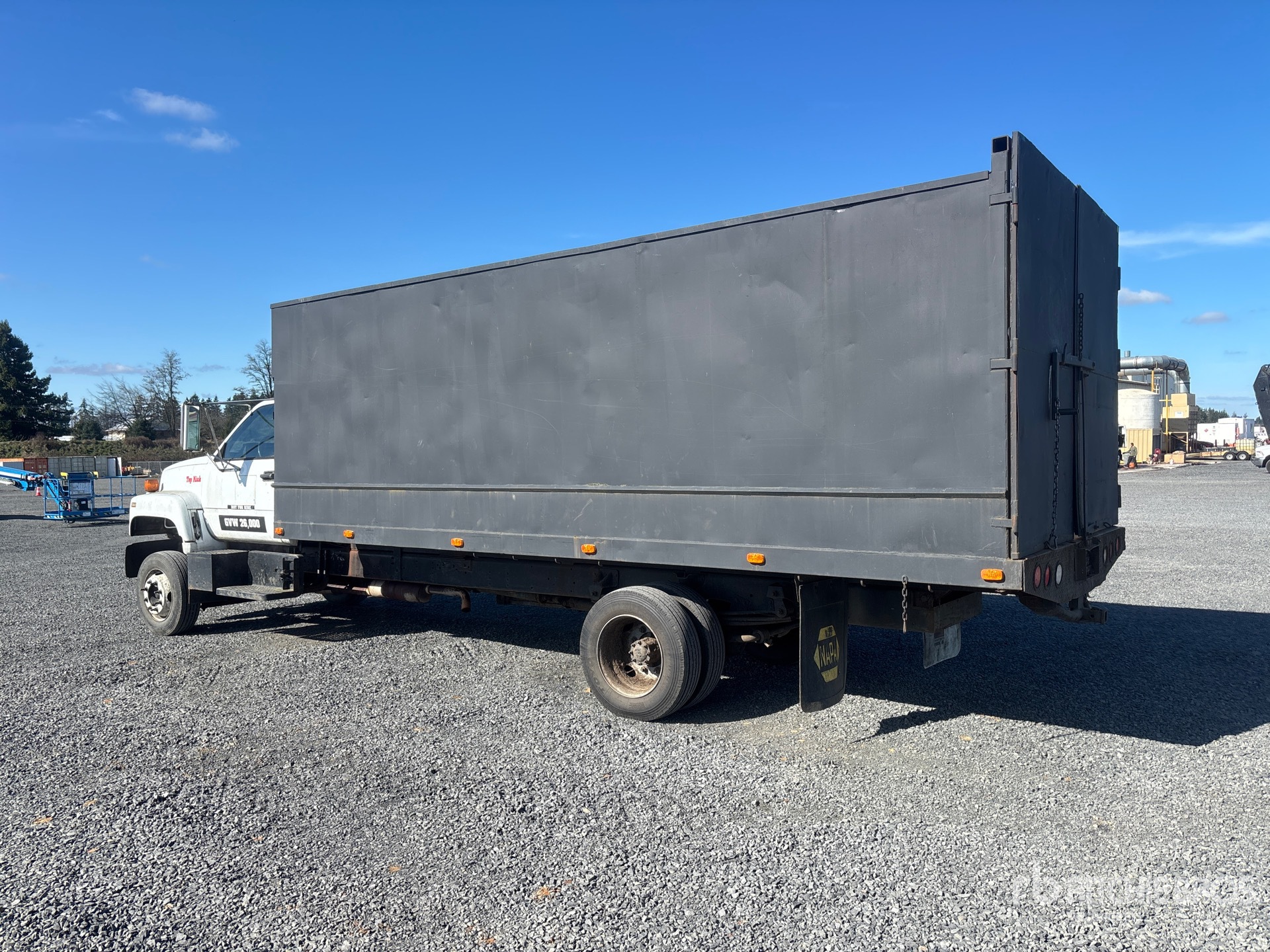 Located in Lane 8 Spot 39, GM V8 6 L Gasoline Engine, 1993 US EPA Label, Automatic Transmission, 7000 lb Front Axle, 16900 lb Rears, 23900 lb GVWR, 245/70R19.5, Spring Suspension, 228 in Wheelbase, PTO, 20 ft Long x 6 ft High Steel Body, Split Swing Tailgate
