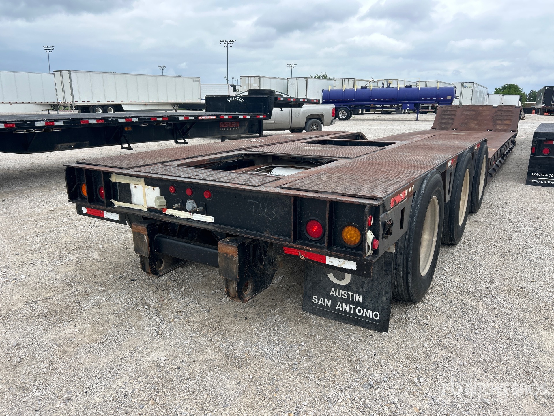 Located in Lane 65 Spot 12, Air Ride Suspension, T/A Jeep, S/A Pin-On Booster Axle, Plumbed for Booster Axle, 14 ft 6 in Upper Deck, 25 ft Main Deck, 102 in Usable Deck Width, 102 in Overall Deck Width, Aluminum Outer Wheels, 275/70R22.5 Tires, 120000 lb GVWR