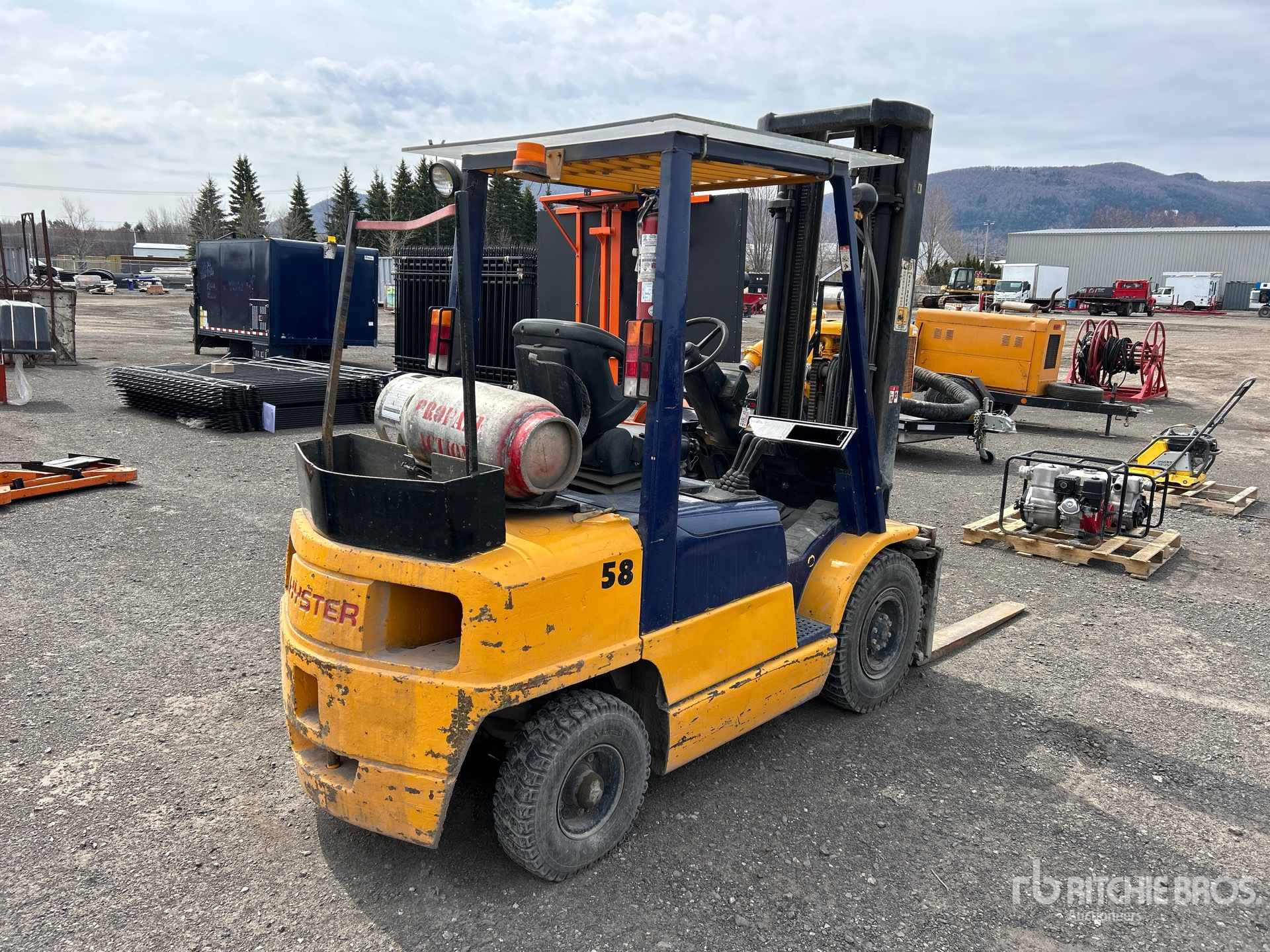3 Stage Mast, 181.9 in Max Lift Height, 95 in Lowered Mast Height, 47 in Forks, Side Shift, Fork Positioner, 4 Cylinder LPG Engine, Bertrand Mathieu Ltee - Vente Complète des Actifs / Bertrand Mathieu Ltee - Complete Dispersal