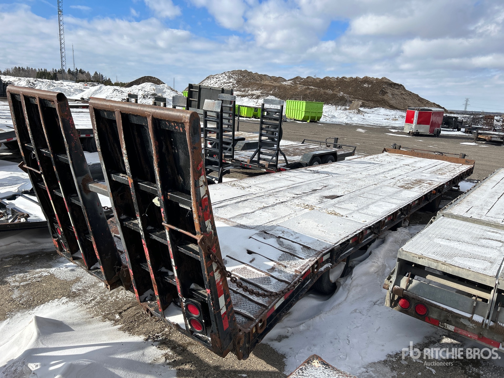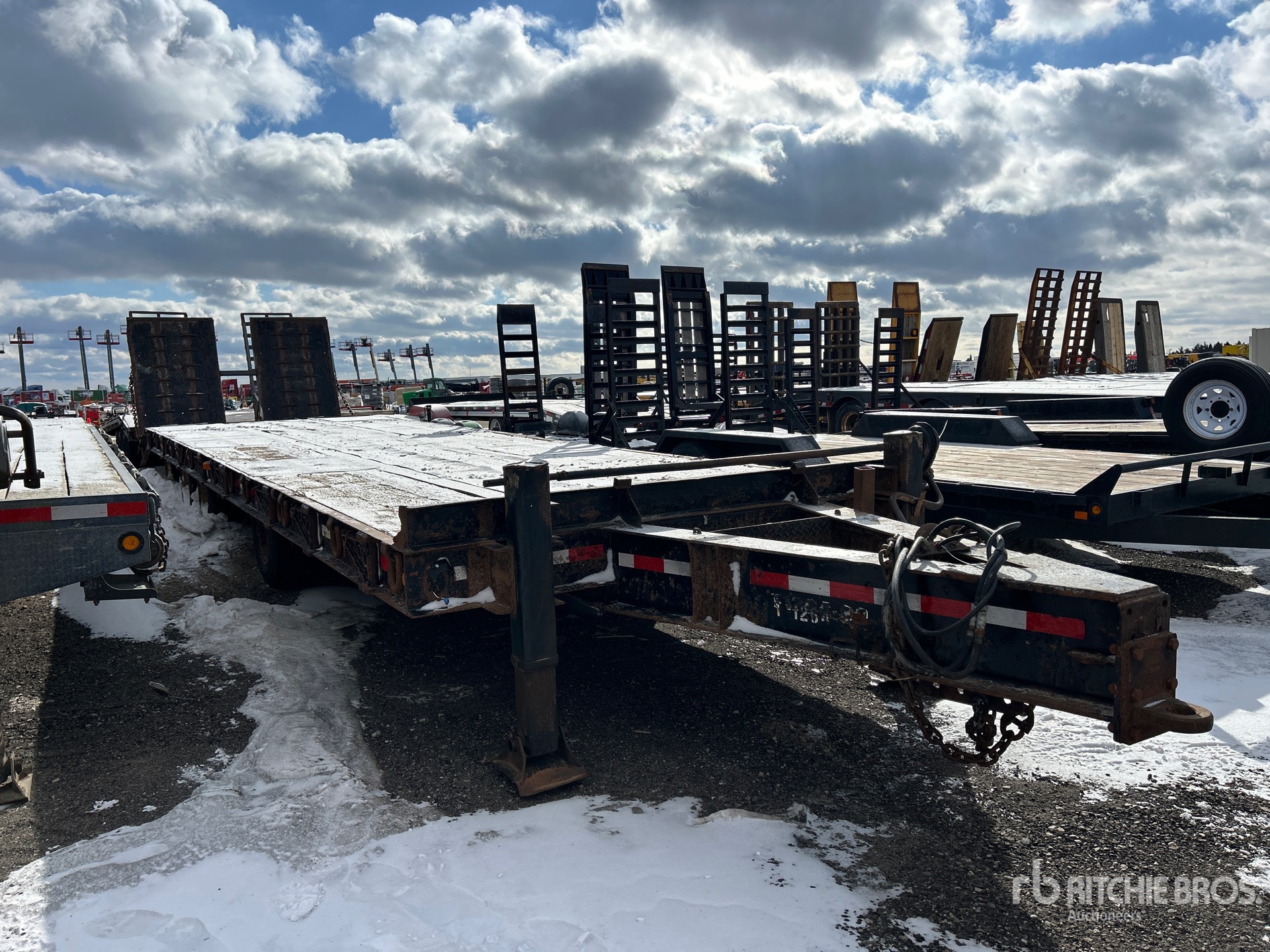 Lunette Ring Hitch, Spring Suspension, Electric Brakes, 30 ft Main Deck, 4 ft Fixed Dovetail, 102 in Usable Deck Width, 102 in Overall Deck Width, Deck Over Tires, Manual Ramps, Wood Flooring, 215/75R17.5 Tires