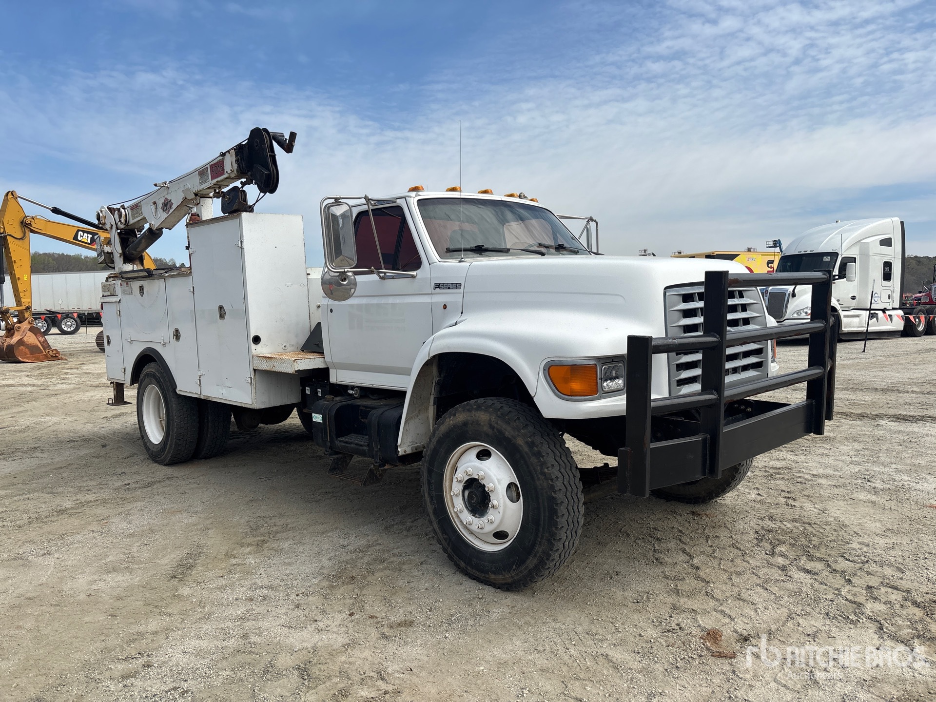 Cummins ISB 215 6 Cylinder 5.9 L Diesel 215 hp Engine, 1998 US EPA Label, Eaton Fuller 6-Speed Manual Transmission, 11R22.5, Spring Suspension, 175 in Wheelbase, 11 ft Body, Manual Stabilizers, 1997 IMT 8600 lb 2 Section Hydraulic Crane, Wired Remote Control