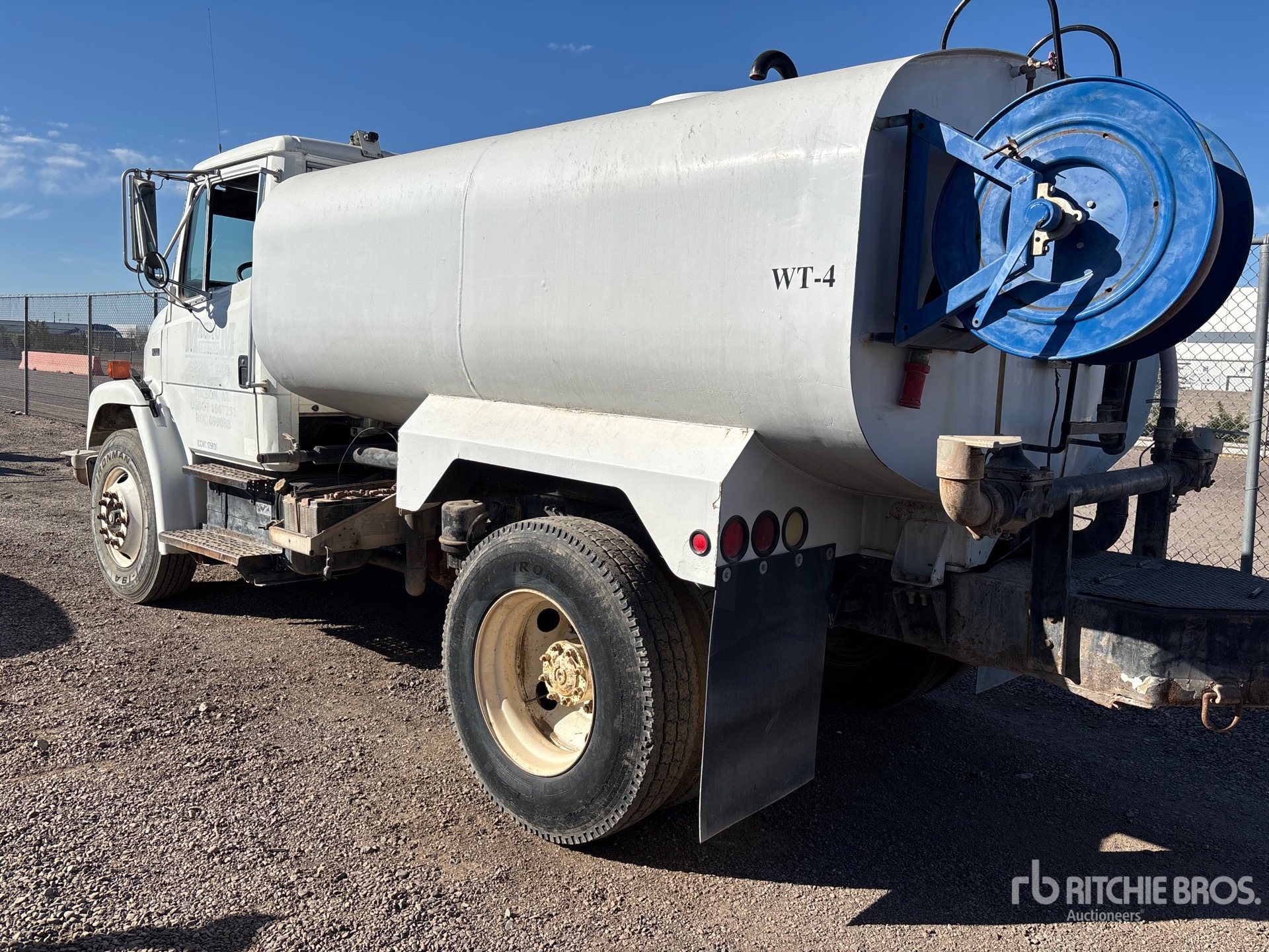6 Cylinder 7.2 L Diesel Engine, 2000 US EPA Label, 12648 Engine hrs, Eaton Fuller 9-Speed Manual Transmission, 12000 lb Front Axle, 20000 lb Rears, 32000 lb GVWR, Aluminum Wheels, 11R22.5, Spring Suspension, 152 in Wheelbase, PTO, 2000 gal Tank, Hose Reel, Front Spray, Rear Spray, Side Spray