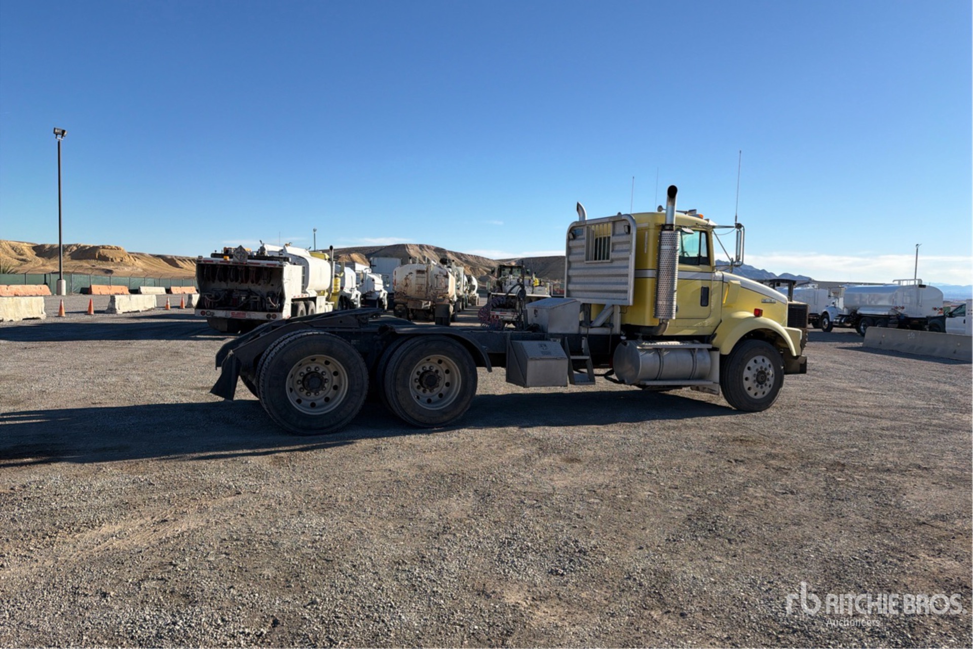 Cat C15 Engine, 6384 Engine hrs, Eaton Fuller Manual Transmission, 58000 lb GVWR, 232 in Wheelbase, Air Suspension, Aluminum Wheels, 11R24.5, Wet Kit, Air Sliding 5th Wheel, Dual Fuel Tanks
