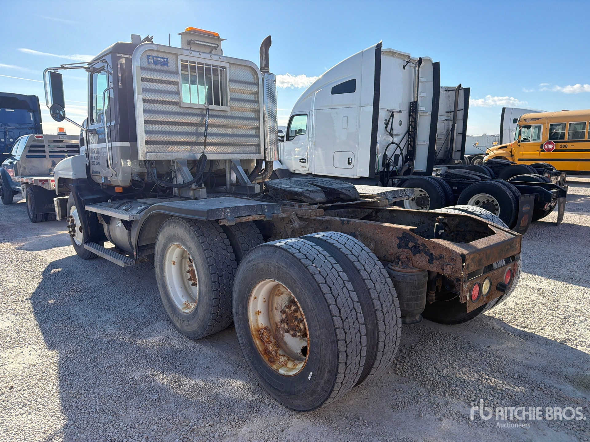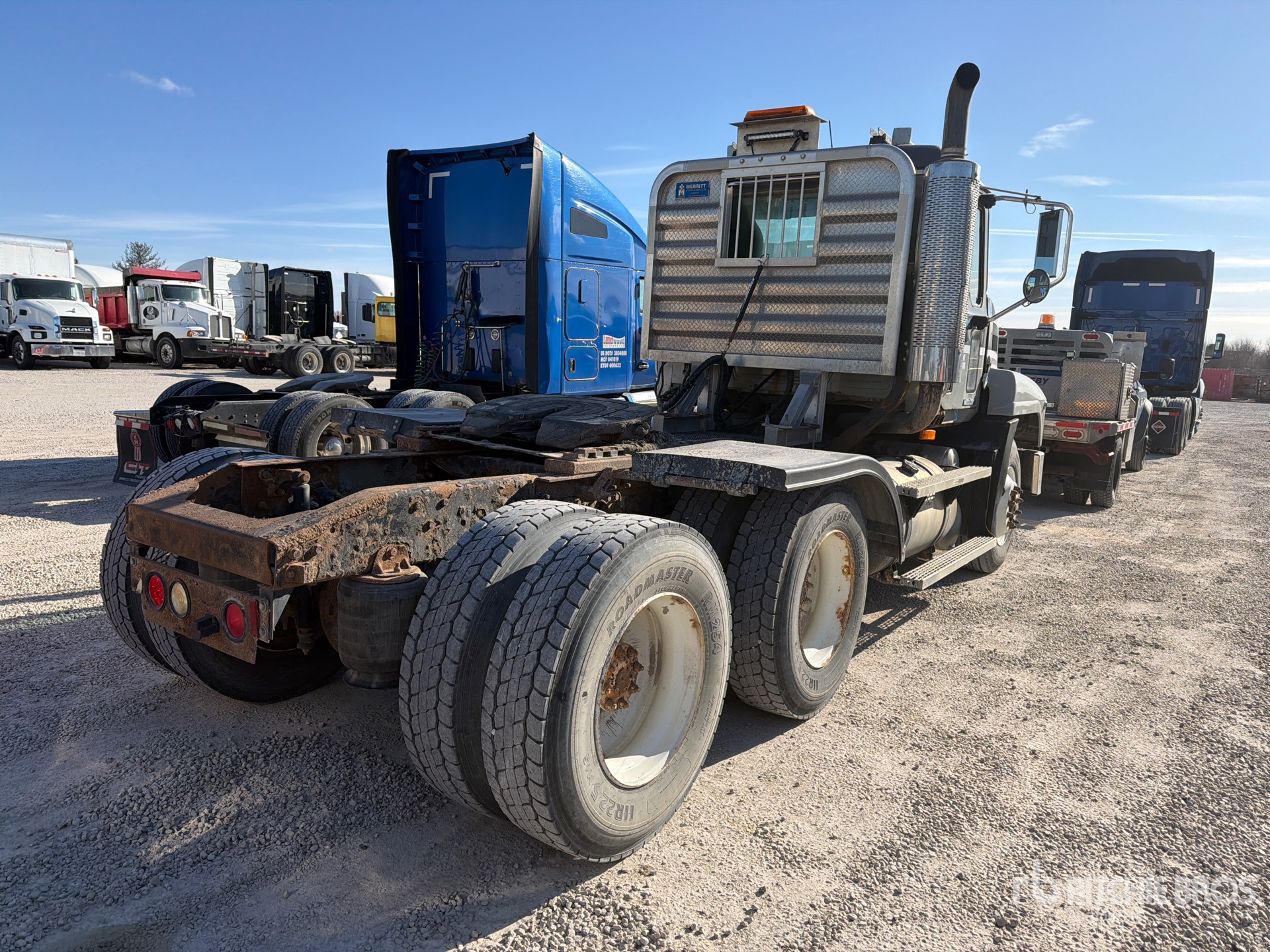 Mack Engine, 17505 Engine hrs, 12000 lb Front Axle, 40000 lb Rears, 52000 lb GVWR, Engine Brake, 162 in Wheelbase, Air Suspension, 11R22.5 Front Tires, 11R22.5 Rear Tires, Air Sliding 5th Wheel, Dual Fuel Tanks