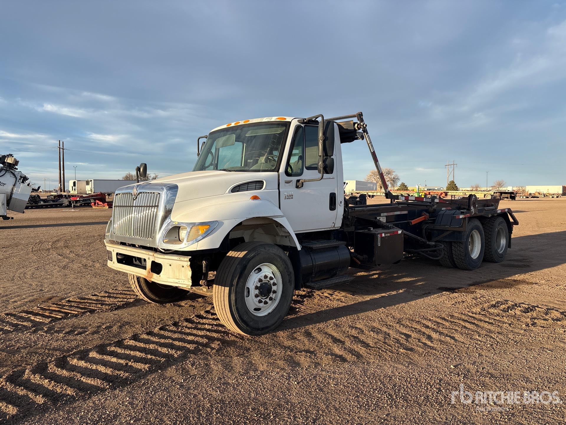 Located in Lane 13 Spot 10, International 6 Cylinder 8.6 L Diesel Engine, Eaton Fuller 10-Speed Manual Transmission, Air Ride Cab, 315/80R22.5 Front Tires, 11R22.5 Rear Tires, Rubber over Walking Beam Suspension, 250 in Wheelbase, PTO, 2004 Smart Trucking K900 DROLL OFFS Roll-Off Body, 22 ft Hoist