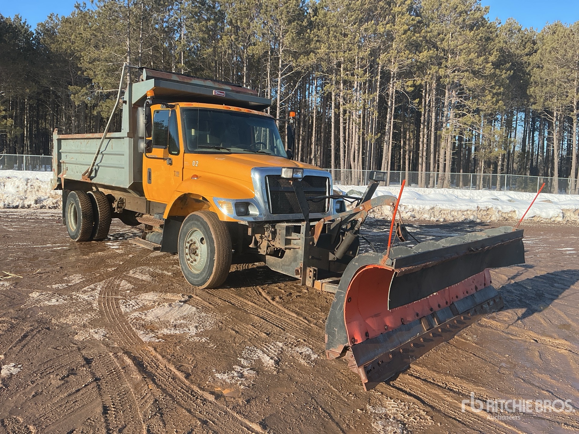 International Engine, 75739 Engine hrs, Allison Automated Transmission, Differential Lock, 13200 lb Front Axle, 23000 lb Rears, 36200 lb GVWR, Air Ride Cab, steel, 12R22.5 Front Tires, 11R22.5 Rear Tires, Double Frame, Spring Suspension, 186 in Wheelbase, PTO, Viking-cives LTD 11 ft 1 in 2-Way Plow, 13 ft 5 in Long x 3 ft High Steel Body, Manual Roll Tarp, Pintle Hitch, plow