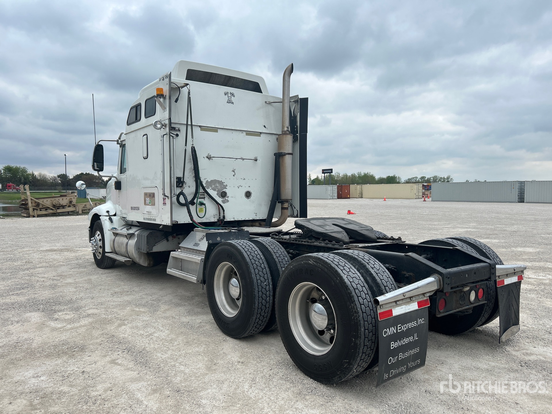 Cummins ISX 450 hp Engine, 2004 US EPA Label, 22938 Engine hrs, Eaton Fuller 10-Speed Manual Transmission, 12000 lb Front Axle, 40000 lb Rears, 52000 lb GVWR, Engine Brake, 56 in Mid Roof Sleeper Cab, 243 in Wheelbase, Air Suspension, Aluminum Wheels, 11R22.5, Air Sliding 5th Wheel, Dual Fuel Tanks