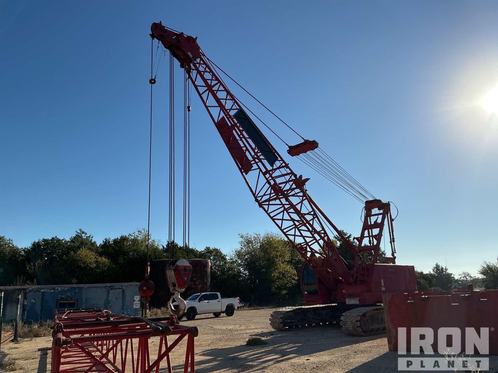 100 ft Boom, Self Erecting, Auxiliary Hoist, Rooster Sheave, Johnson 4 Sheave Hook Block, Overhaul Ball, Air Conditioner, Anti Two-Block, Load Moment Indicator, 2004 US EPA Label, 36 in Smooth Track Shoes, Expandable Width Tracks