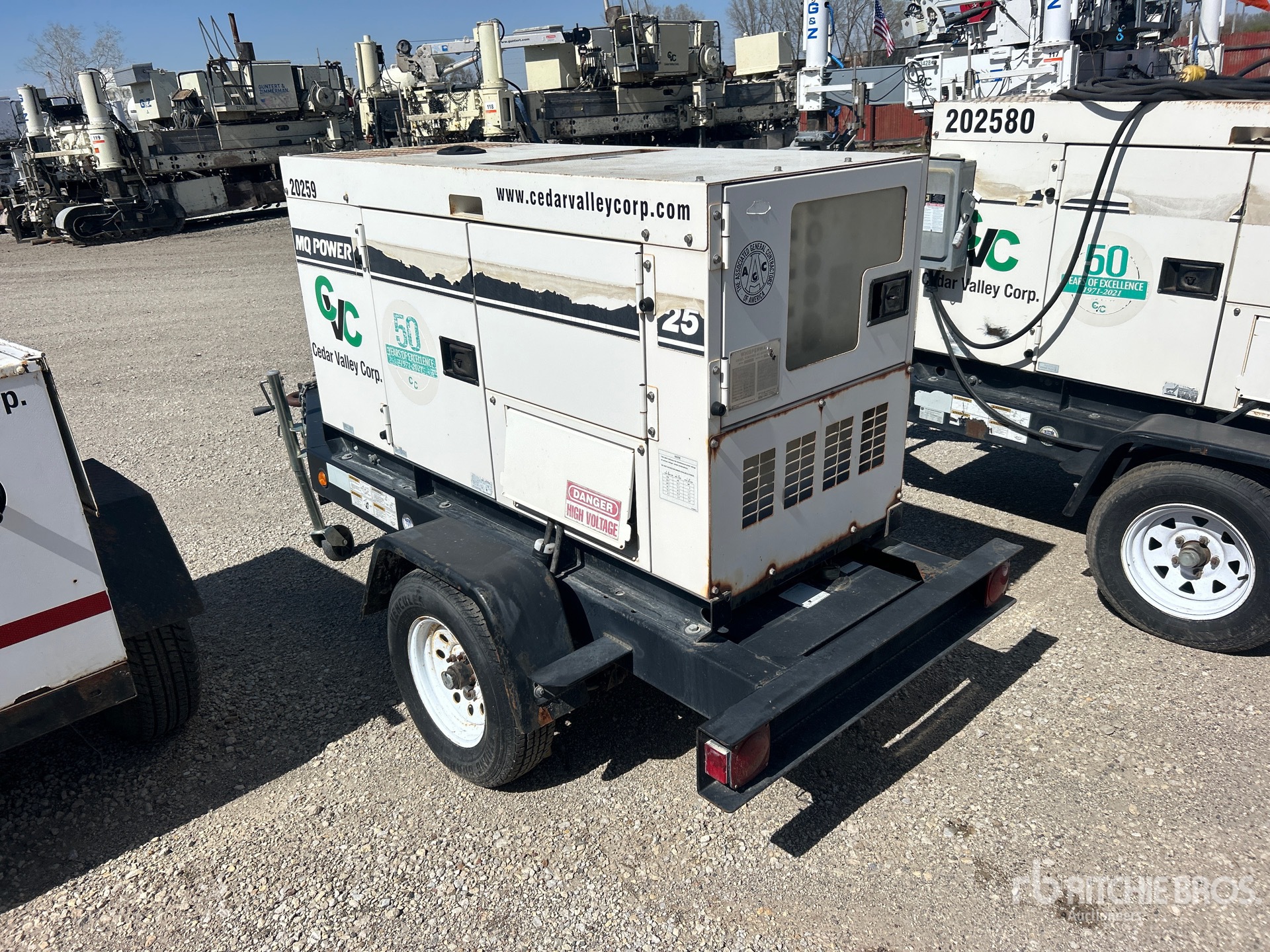 2005 US EPA Label, Isuzu 4 Cylinder 2.2 L Diesel Engine, 25 kVA/20 kW Rated 3 Phase Output, 240 V / 480 V Rated Voltage, 14.4 kVA,/14.4 kW, Rated Single Phase Output, 240 V / 120 V Rated Voltage, Lunette Ring Carrier Trailer