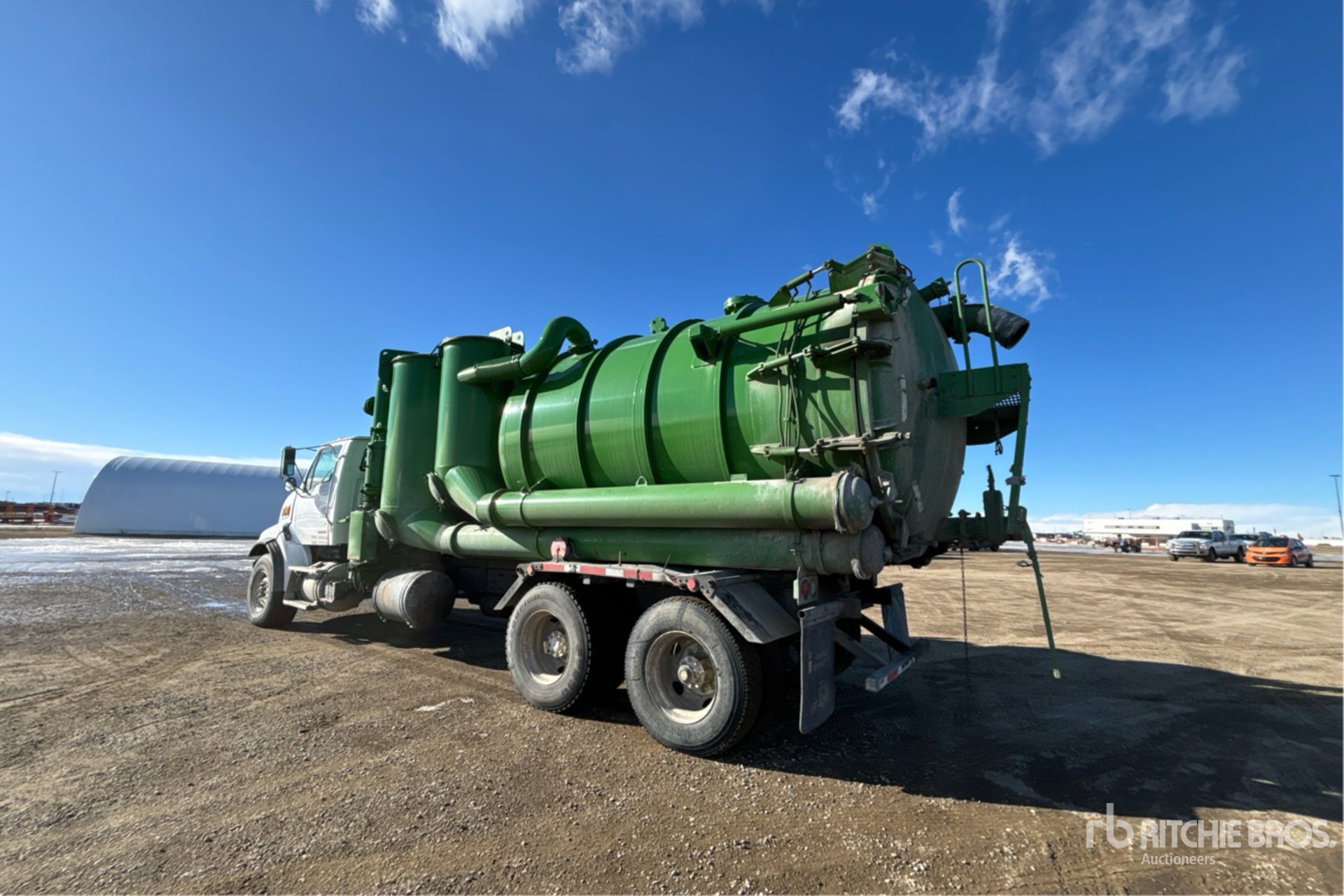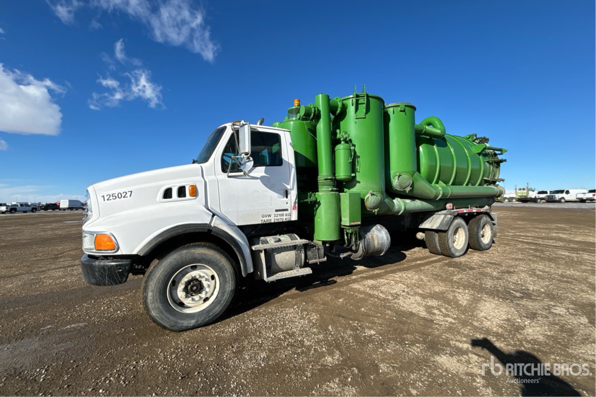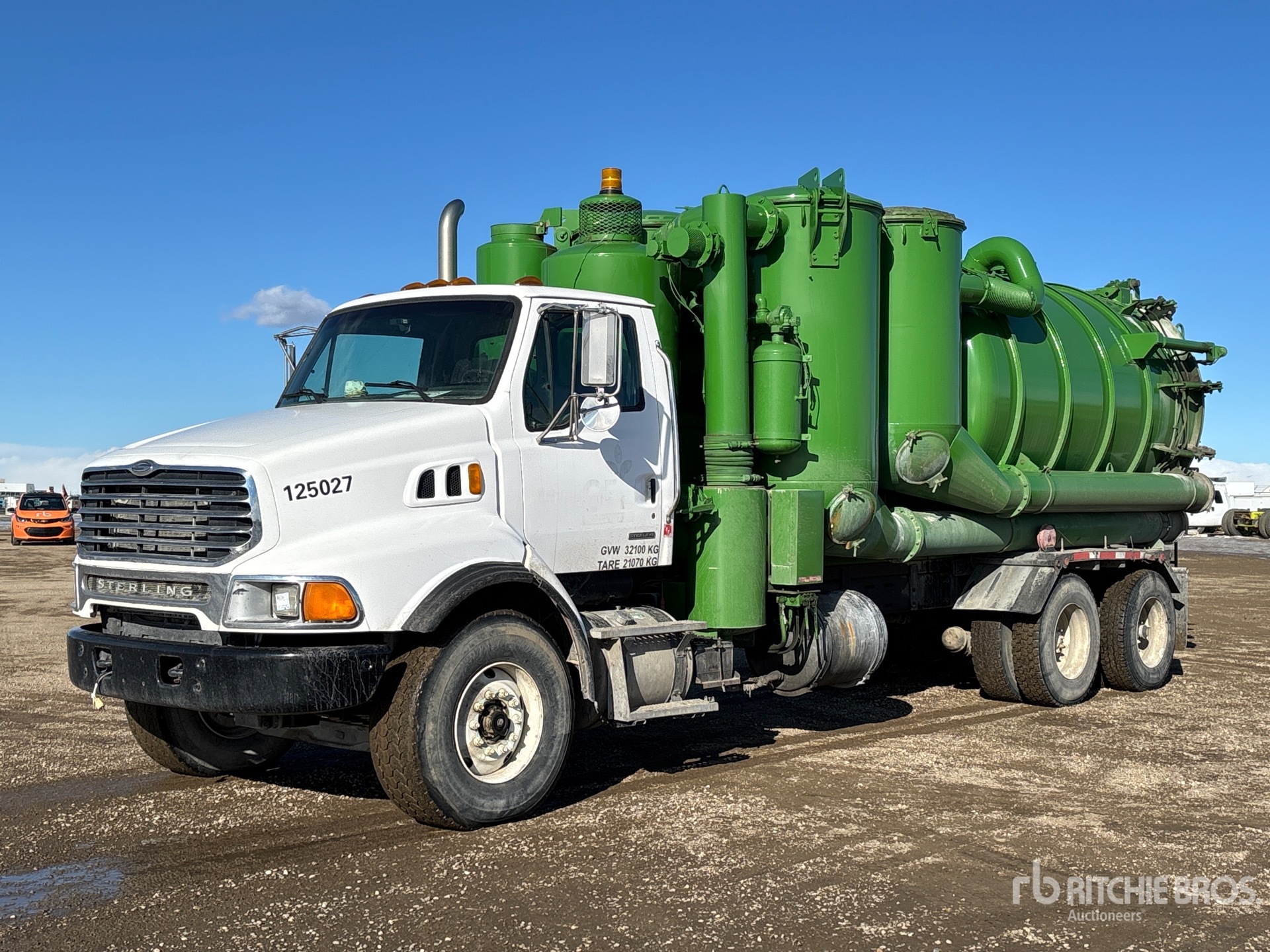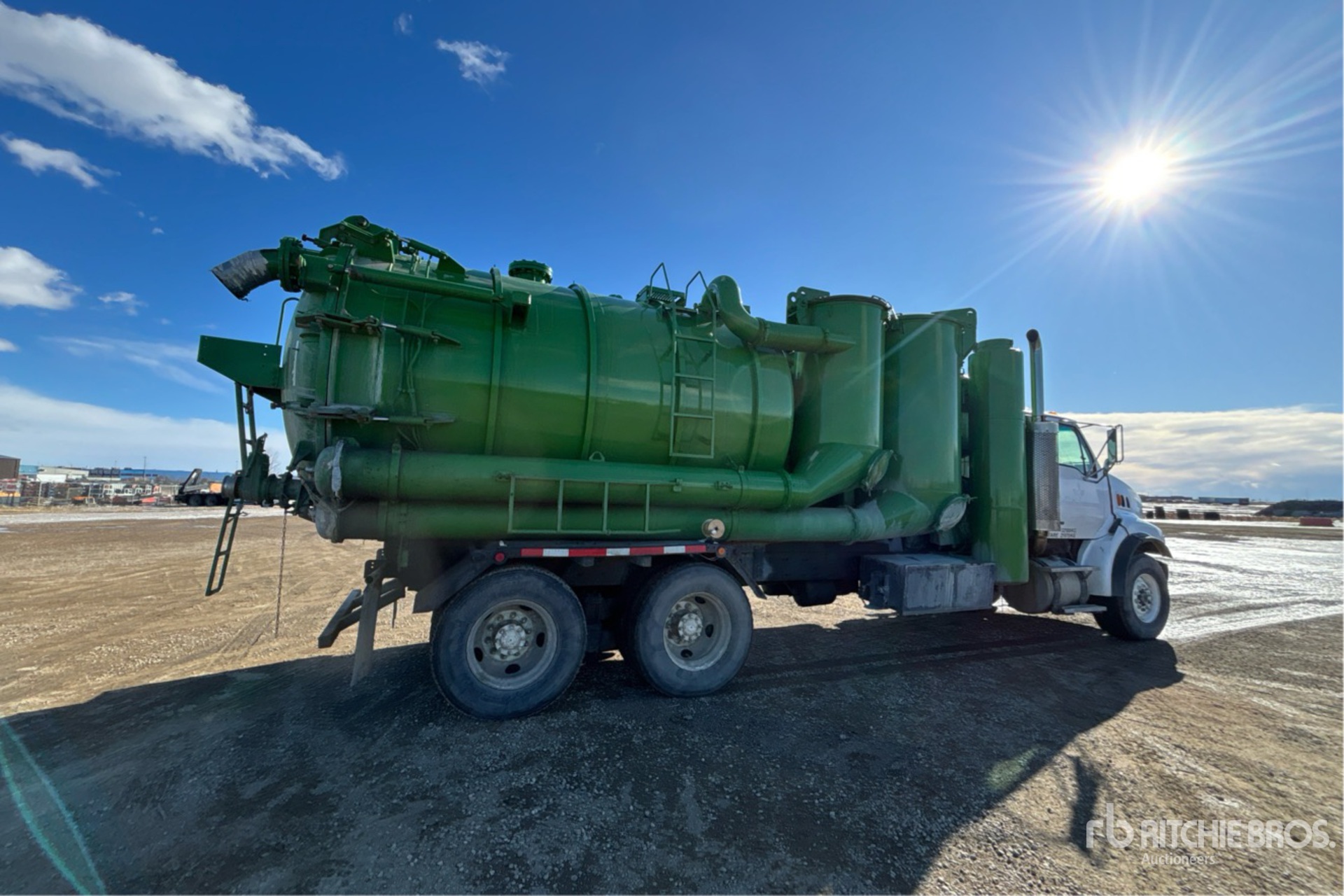Cat C13 6 Cylinder 12.5 L Diesel 380 hp Engine, 2004 US EPA Label, CARB Compliant, Positive Air Shutoff, 14472 Engine hrs, Engine Brake, Eaton Fuller FRO-14210C 10-Speed Manual Transmission, 20000 lb Front Axle, 46000 lb Rears, Meritor RT-46-160 Drive Axles, 4.56:1 Axle Ratio, 66000 lb GVWR, Air Ride Cab, 425/65R22.5 Front Tires, 11R22.5 Rear Tires, Dual Steering Boxes, Double Frame, Spring over Walking Beam Suspension, 238 in Wheelbase, PTO, Steel Debris Tank, Hoist, Vibrator, Full Open Tailgate, Hydraulic Tailgate Locks, Fraserwoods SIAV 8702 Blower