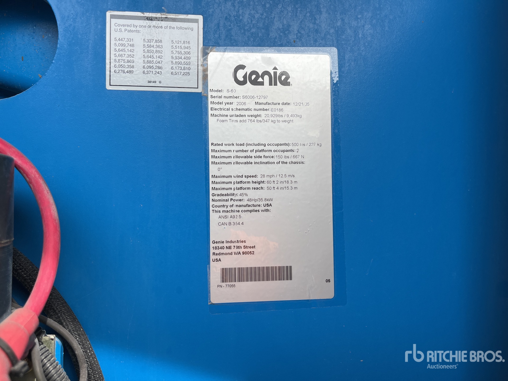 60 ft 2 in Max Platform Height, 500 lb Max Weight Capacity, Power to Platform, 2005 US EPA Label, Deutz F3L2011 3 Cylinder 48 hp 2.33 L Diesel Engine, 355/55D625 Tires