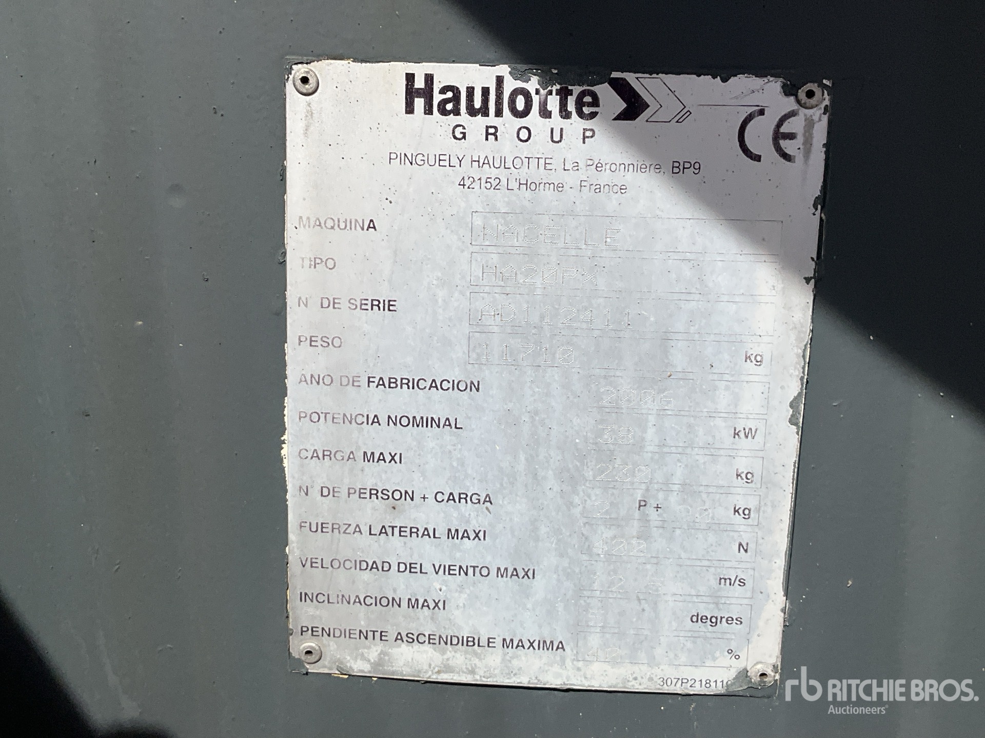 자세한 장비 정보는 범위가 제한되어 있으며, Ritchie Bros. Auctioneers에서는 본 문서에 명시된 항목 이외의 장비 구성요소나 측면에 대해서는 검사하지 않았습니다. 명시적으로 언급하지 않는 한, 당사는 장비 또는 그 구성요소와 관련하여 명시적으로나 묵시적으로 어떠한 진술이나 보증을 제공하지 않습니다. 여기에는 기능, 해당 당국이나 규제 기관의 안전 표준 또는 요구 사항의 준수, 특정 용도 적합성, 상업성 등과 관련된 진술 또는 보증을 포함하되 이에 국한되지 않습니다. 입찰하기 전 장비의 상세한 검사를 실시하도록 강력히 권장합니다.