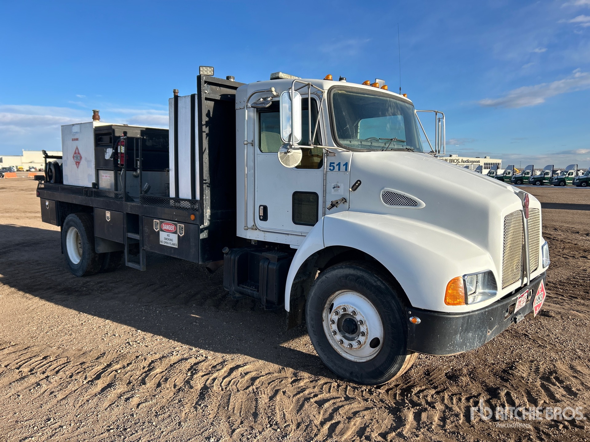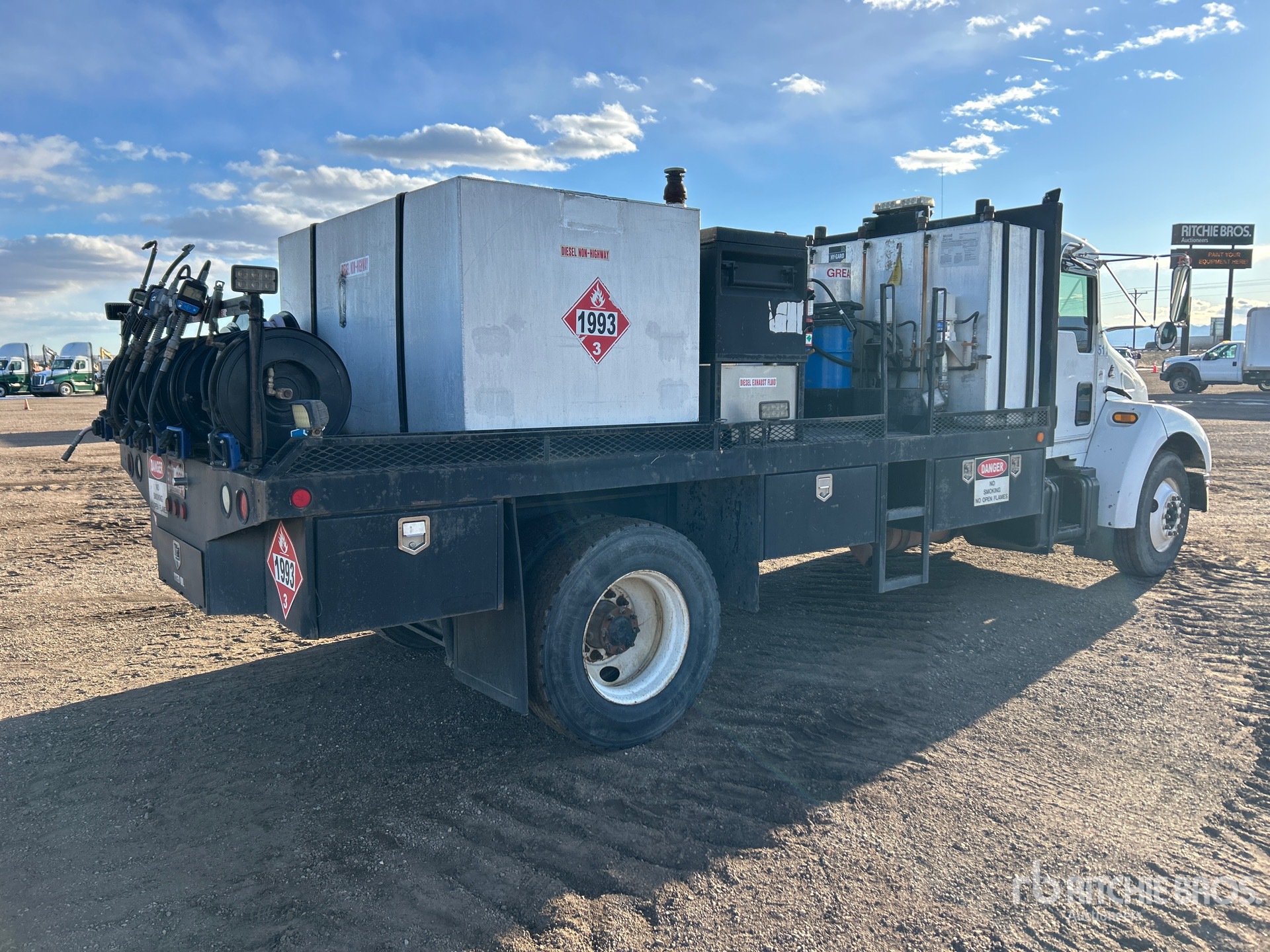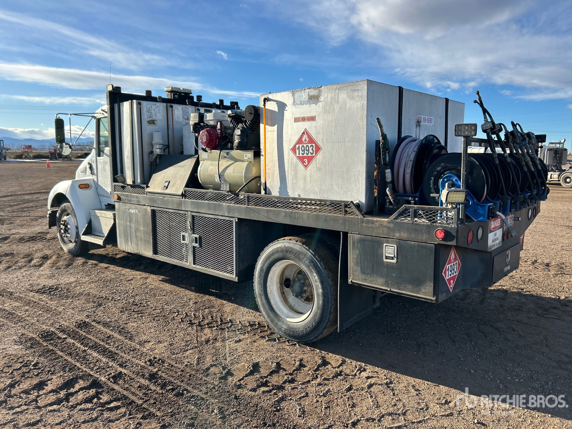 Cat C7 6 Cylinder 7.2 L Diesel Engine, 2005 US EPA Label, Allison 3000 Automatic Transmission, 12000 lb Front Axle, 21000 lb Rears, 4.88:1 Axle Ratio, 33000 lb GVWR, 295/75R22.5, Hendrickson Air Ride Suspension, 207 in Wheelbase, 16 ft Body, ( 11 ) Hose Reels, Grease Barrel, Ingersoll-Rand Gasoline Air Compressor