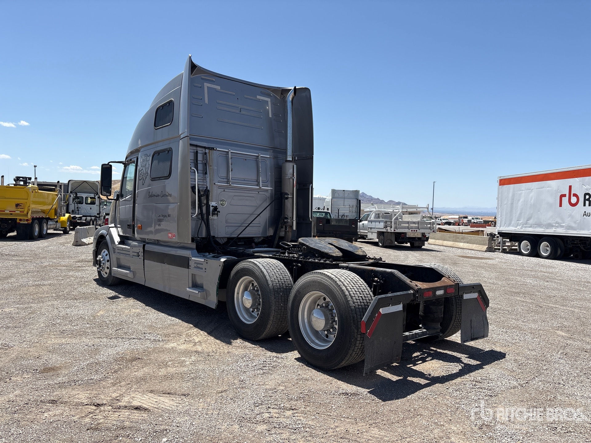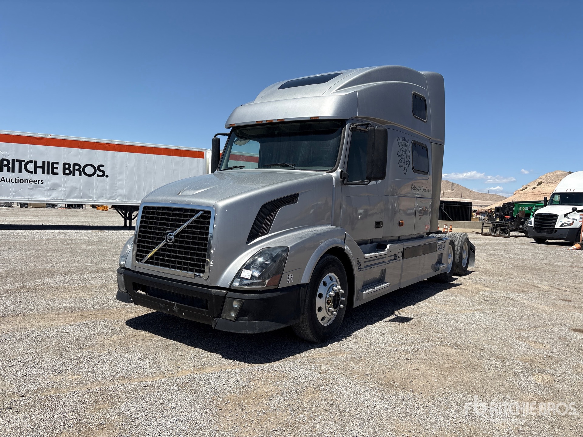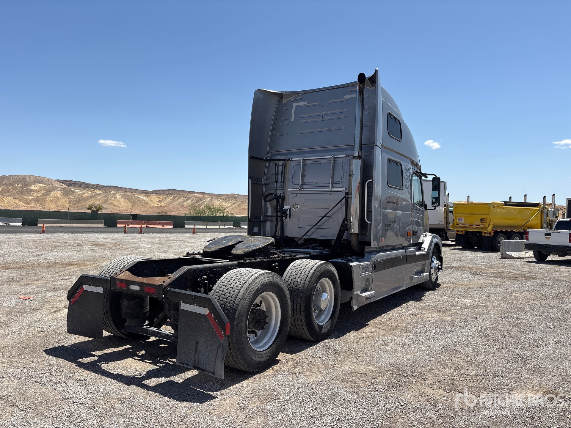 Volvo Engine, 2005 US EPA Label, 12350 lb Front Axle, 38000 lb Rears, 50351 lb GVWR, Differential Lock, 70 in High Rise Sleeper Cab, Bunk Beds, 238 in Wheelbase, Air Suspension, Aluminum Wheels, 295/75R22.5 Front Tires, 445/50R22.5 Super Singles Rear Tires, Air Sliding 5th Wheel, Dual Fuel Tanks