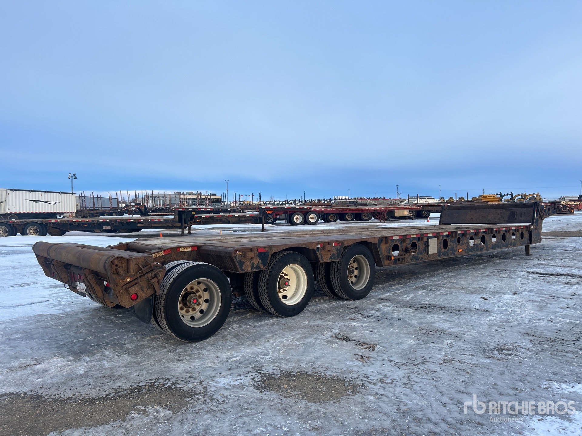 Located in Lane 23 Spot 1, Air Ride Suspension, 11 ft Upper Deck, 35 ft Main Deck, 5 ft 2-Position Dovetail, 120 in Usable Deck Width, Deck Over Tires, Full Width Pickup Throat, Fold-Up Dolly Legs, Center Roller, Tail Roller, 275/70R22.5 Tires
