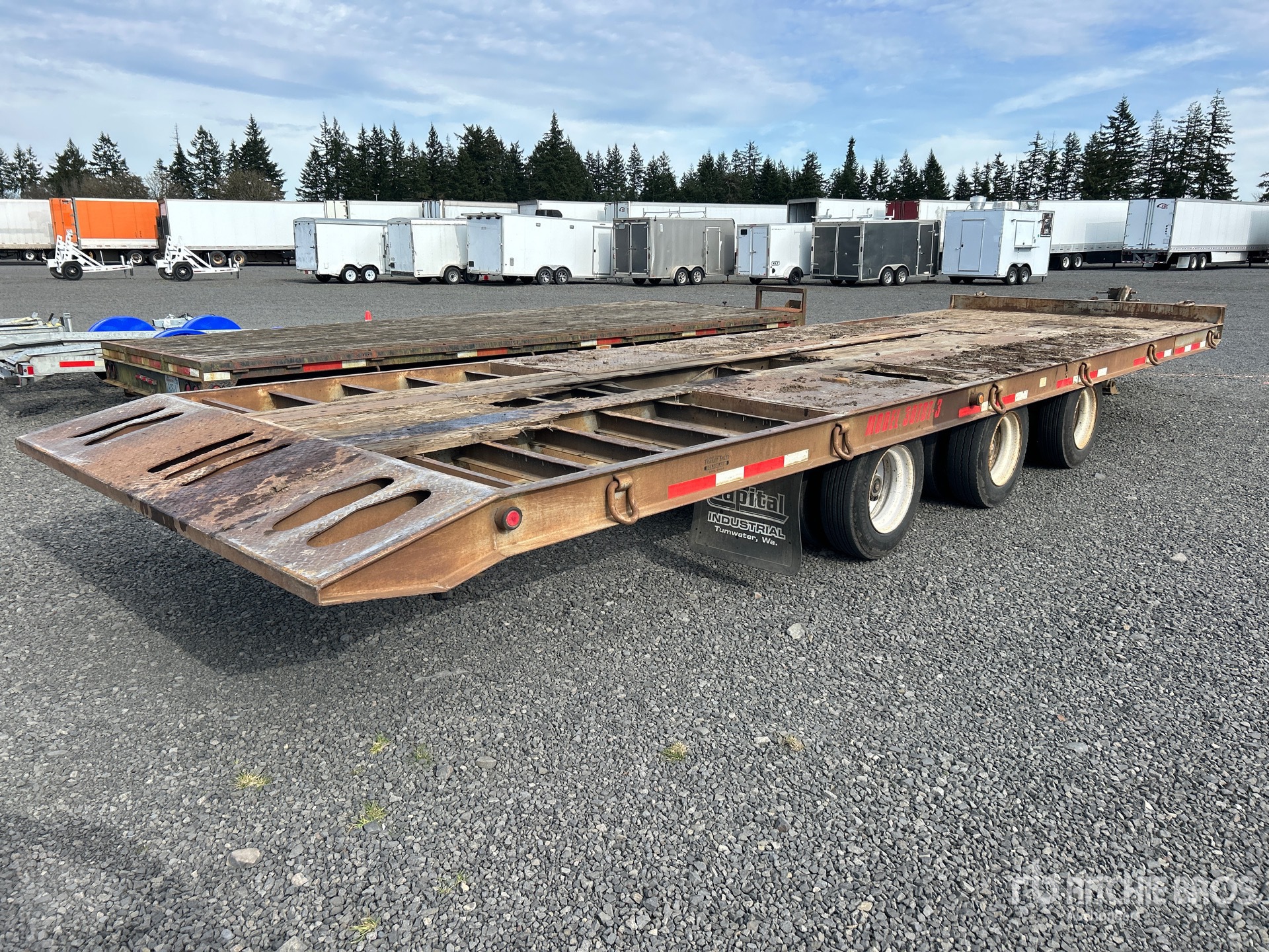 Lunette Ring Hitch, Spring Suspension, Deck Over Tires, 25 ft Deck Tilting Length, 101 in Deck Width, 215/75R17.5 Tires, 62000 lb GVWR