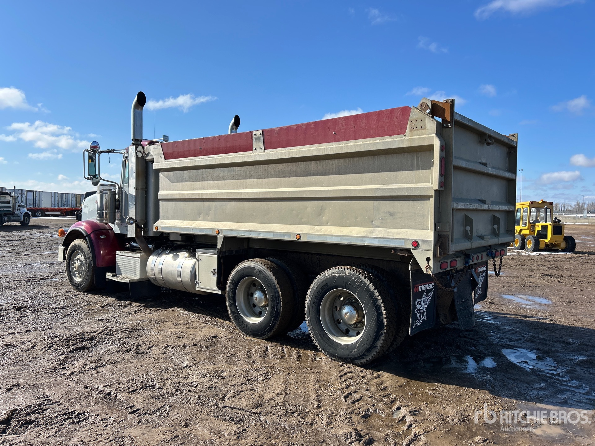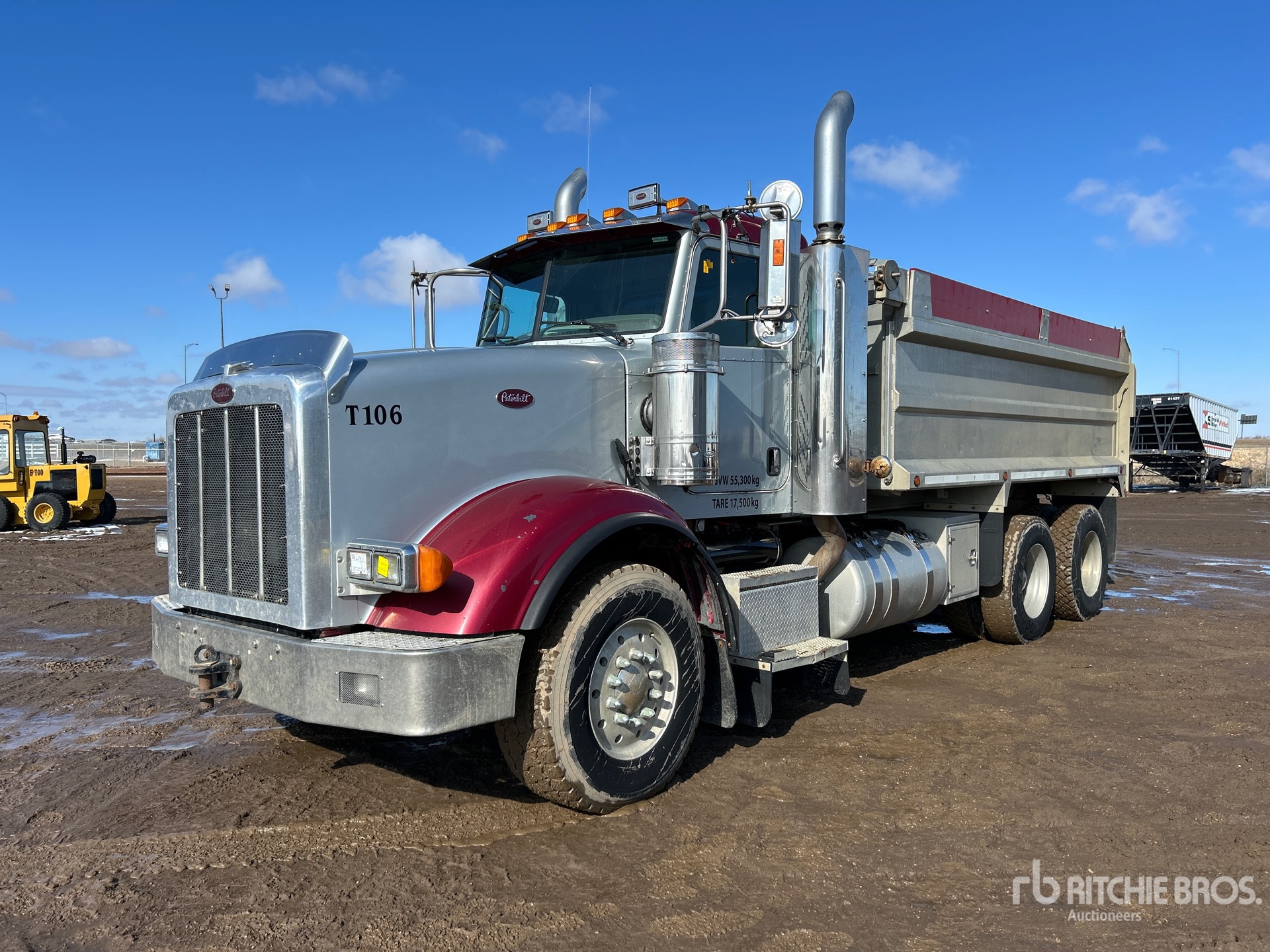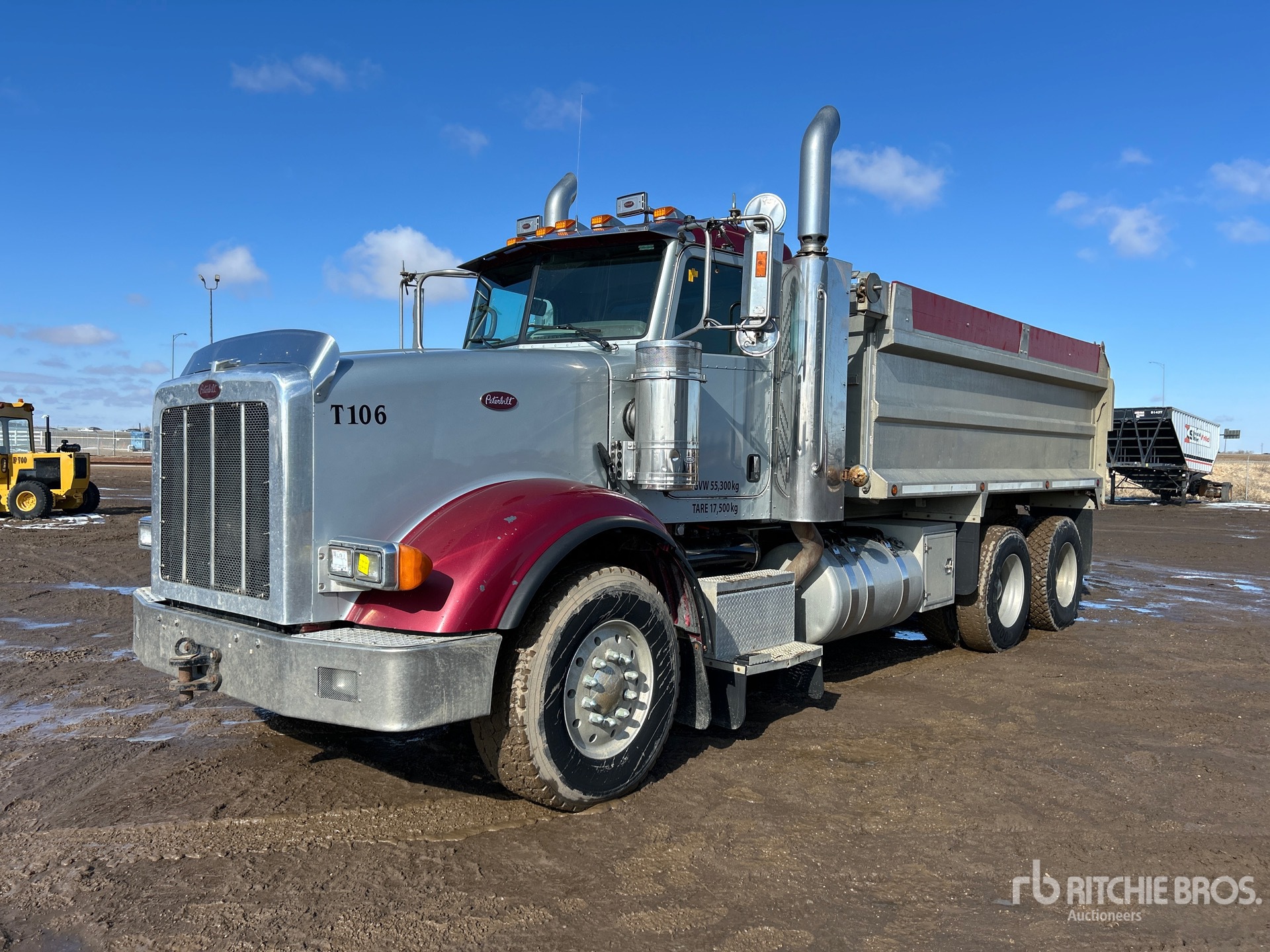 Cummins ISX 6 Cylinder 12 L Diesel 500 hp Engine, 2007 US EPA Label, 15550 Engine hrs, Engine Brake, Eaton Fuller RTLO18918A-AS3 Automatic Transmission, Double Differential Locks, 16000 lb Front Axle, 46000 lb Rears, 62000 lb GVWR, Aluminum Wheels, 385/65R22.5 Front Tires, 11R24.5 Rear Tires, Dual Steering Boxes, Air Ride Suspension, 216 in Wheelbase, PTO, 15 ft Long x 4 ft 6 in High Aluminium Body, Electric Roll Tarp, Rear Hydraulics, Pintle Hitch