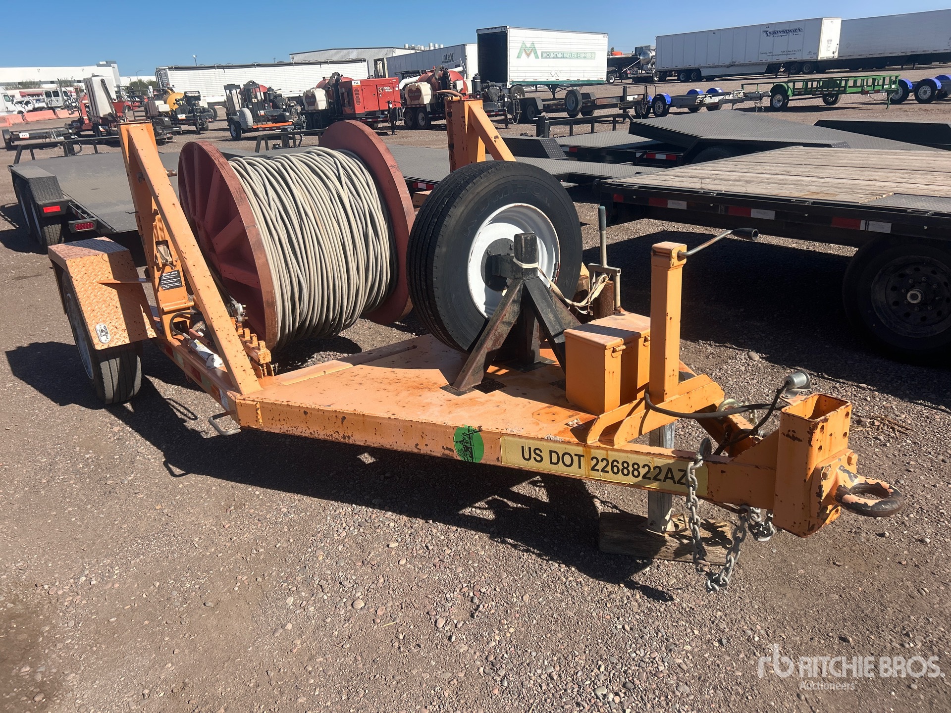 Located in Lane 55 Spot 36, Lunette Ring Hitch, Electric Brakes, Hydraulic Reel Hoist, 215/75R17.5 Tires, 9000 lb GVWR