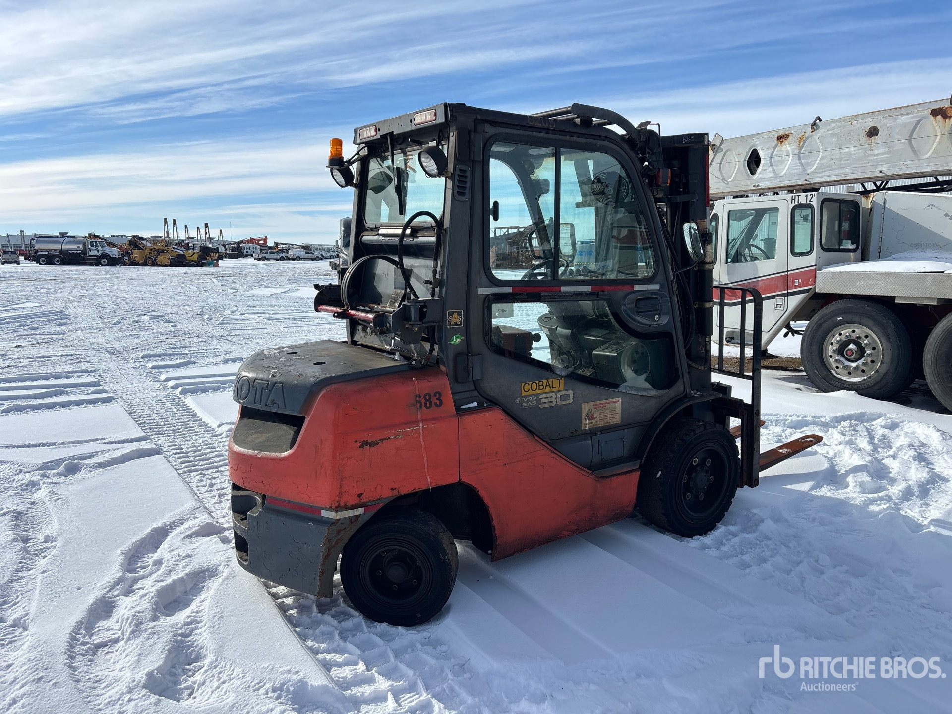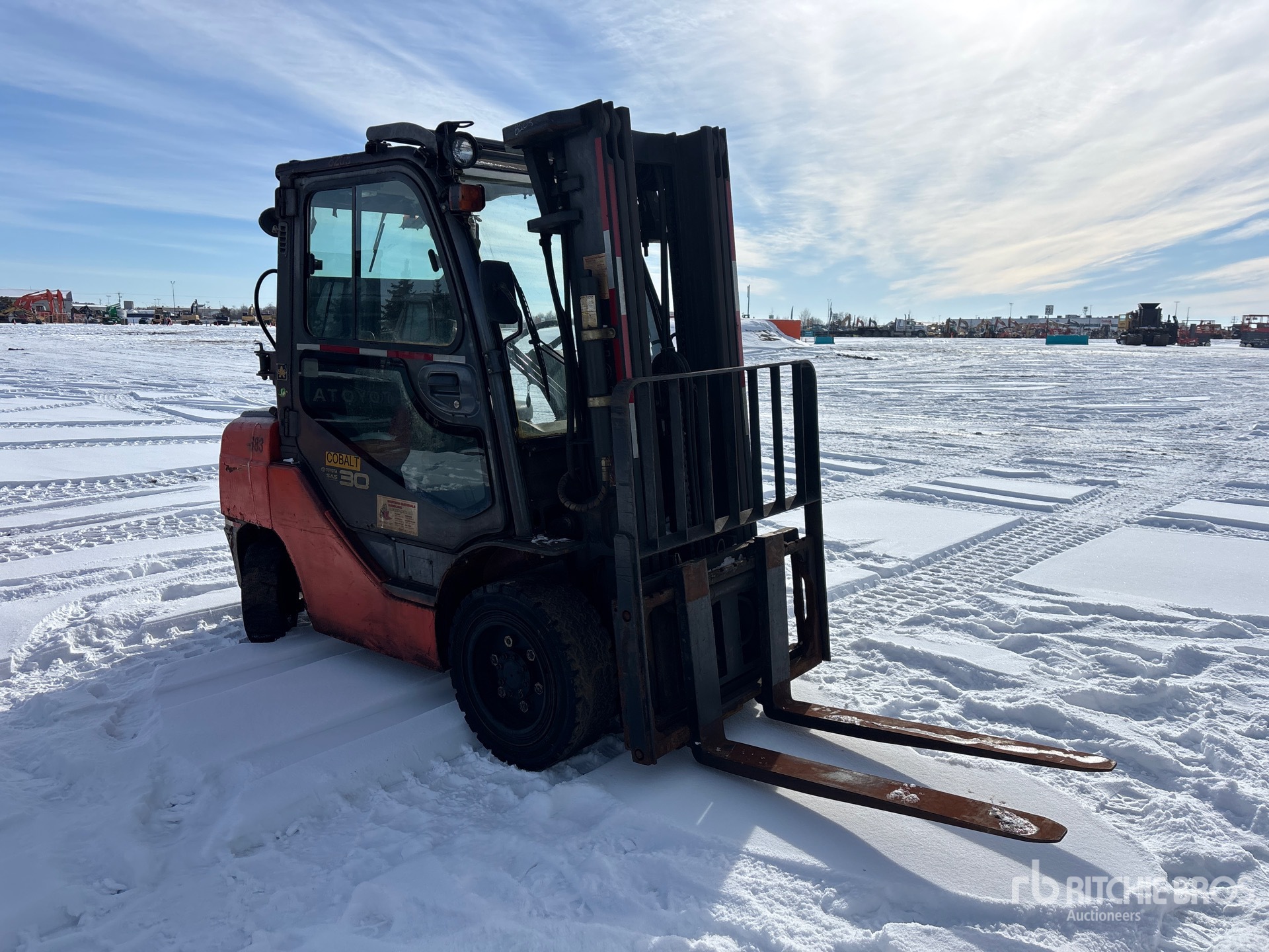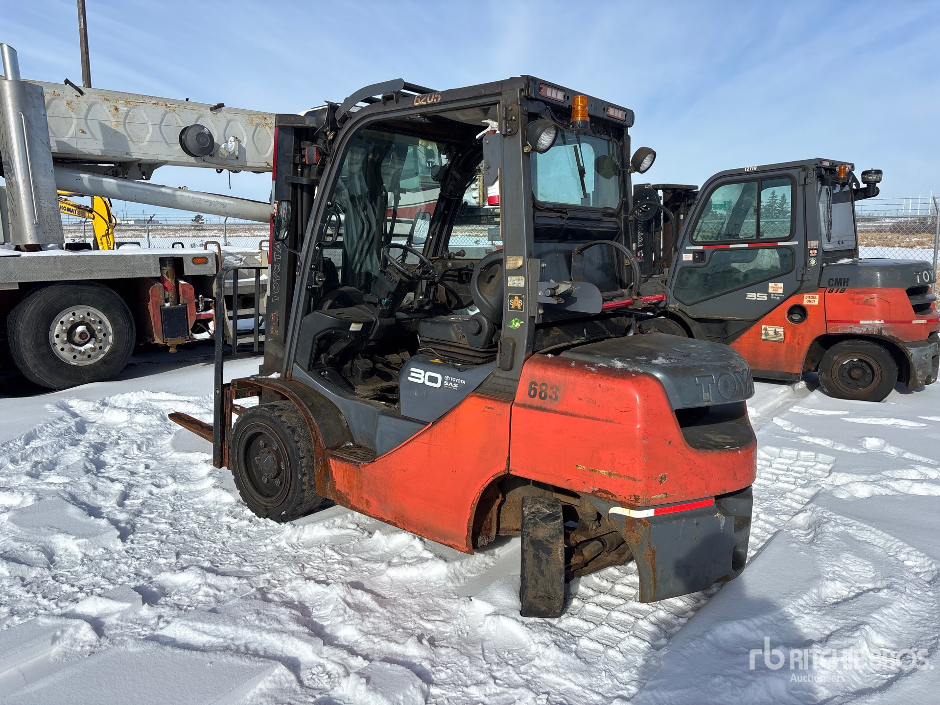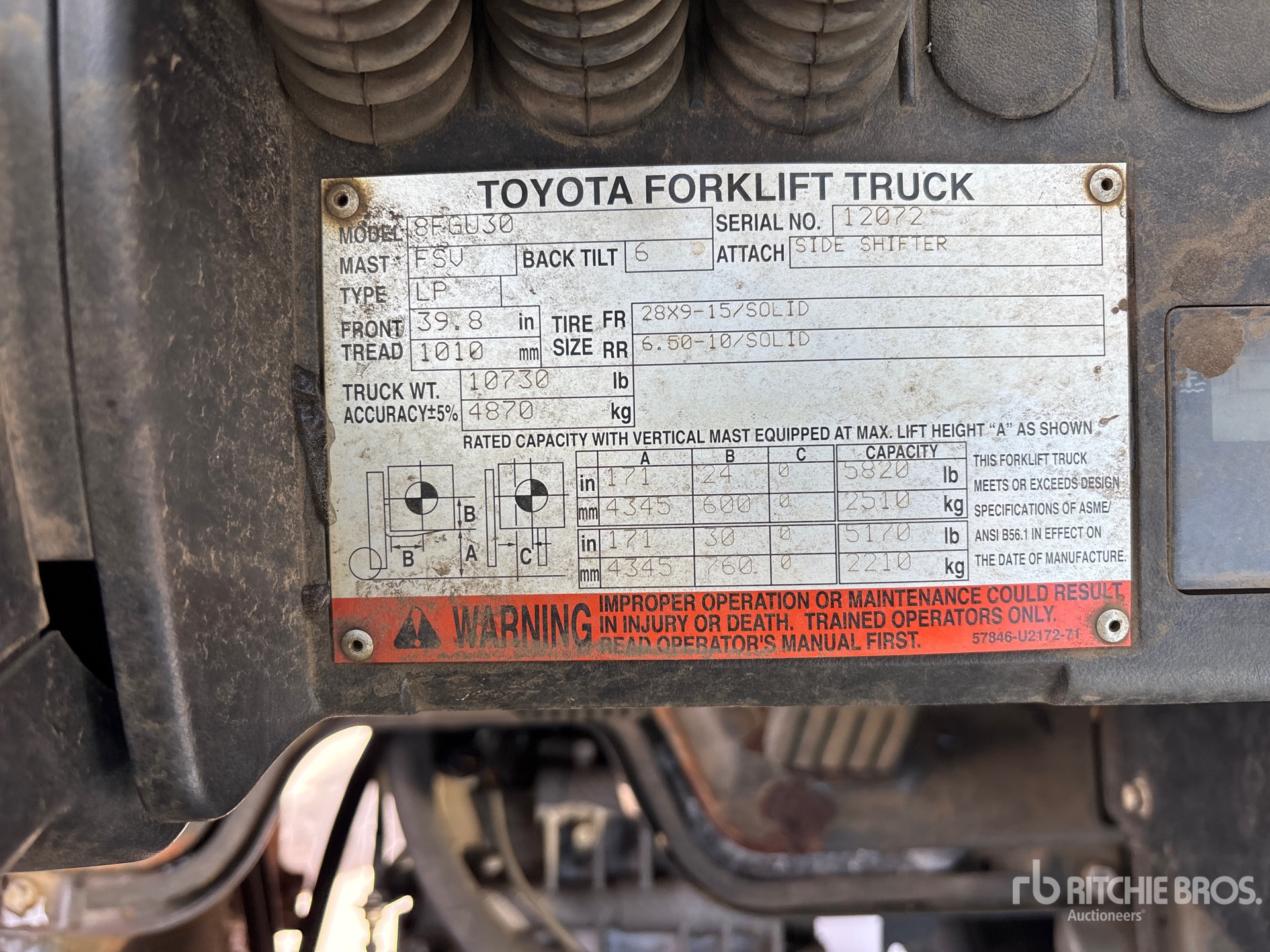 3 Stage Mast, Full Free Lift, 171 in Max Lift Height, 85 in Lowered Mast Height, 42 in Forks, Side Shift, 2007 US EPA Label, CARB Compliant, Toyota 4 Cylinder LPG Engine