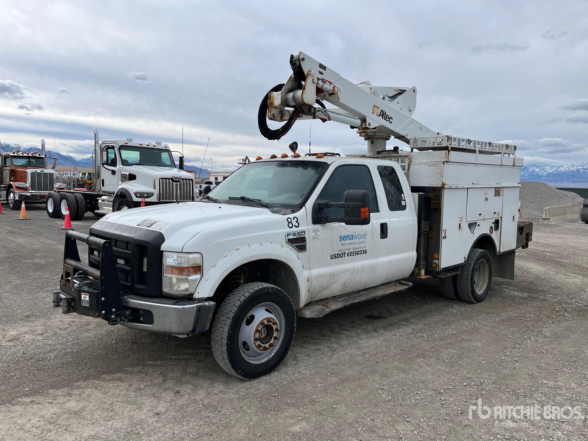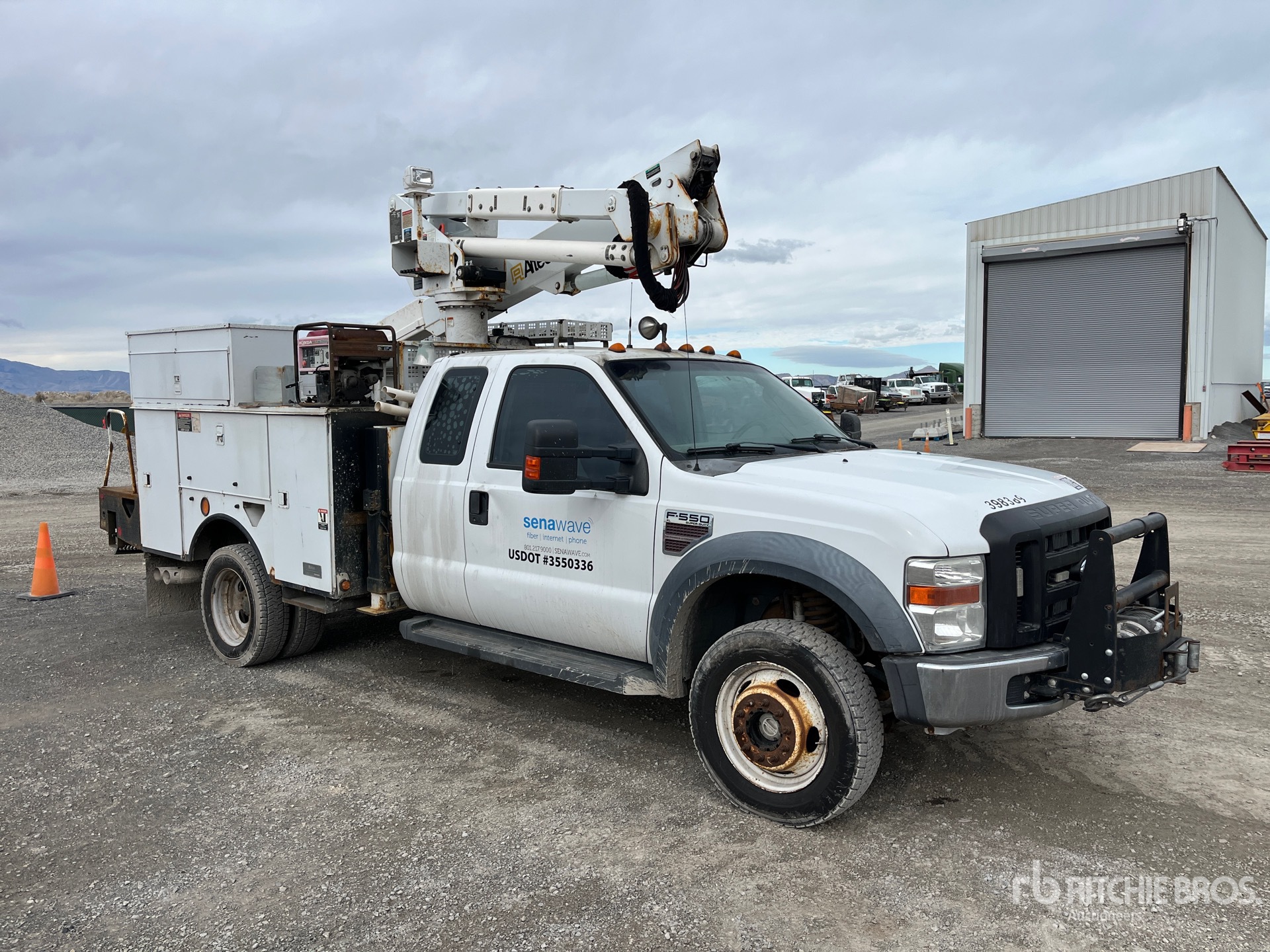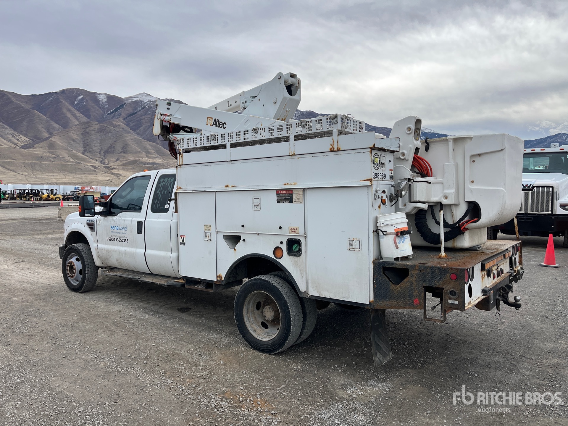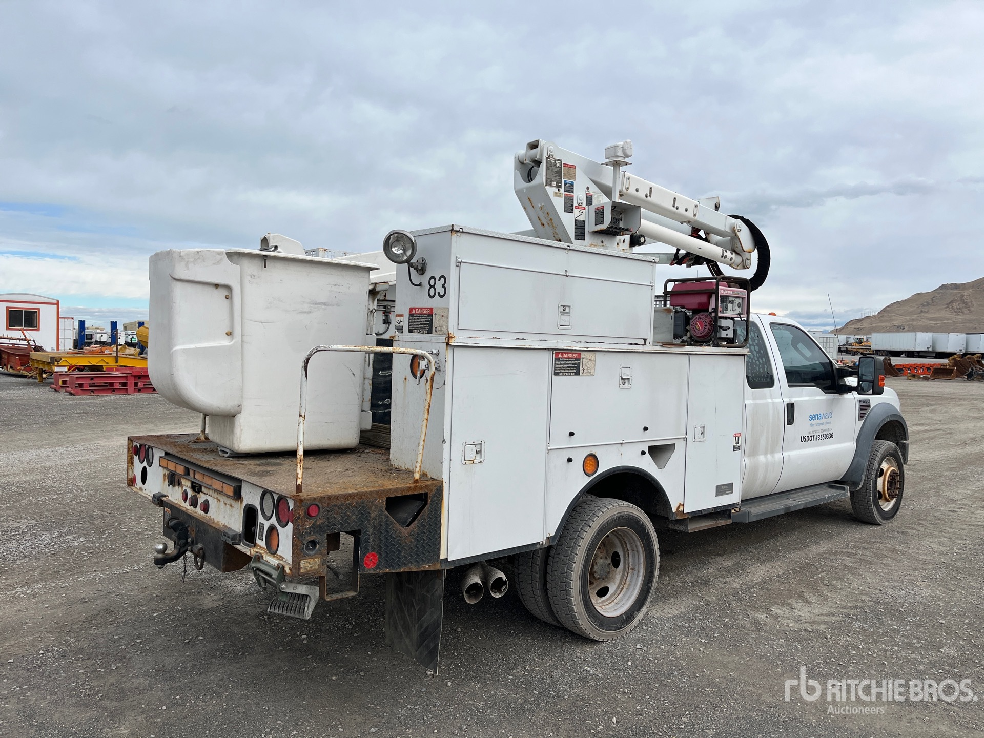 V8 6.4 L Diesel 350 hp Engine, Automatic Transmission, 17950 lb GVWR, 225/70R19.5 Front Tires, 225/70R19.5 Rear Tires, Spring Suspension, PTO, 400 lb Capacity, Center Mounted, One-Person Articulating-Telescopic Boom, Utility Body, Straight Down Outriggers, Bumper Mounted Winch, Honda EB3000 3 kVA Gasoline Generator Set, 11 ft x 93 in Bed, Pintle Hitch