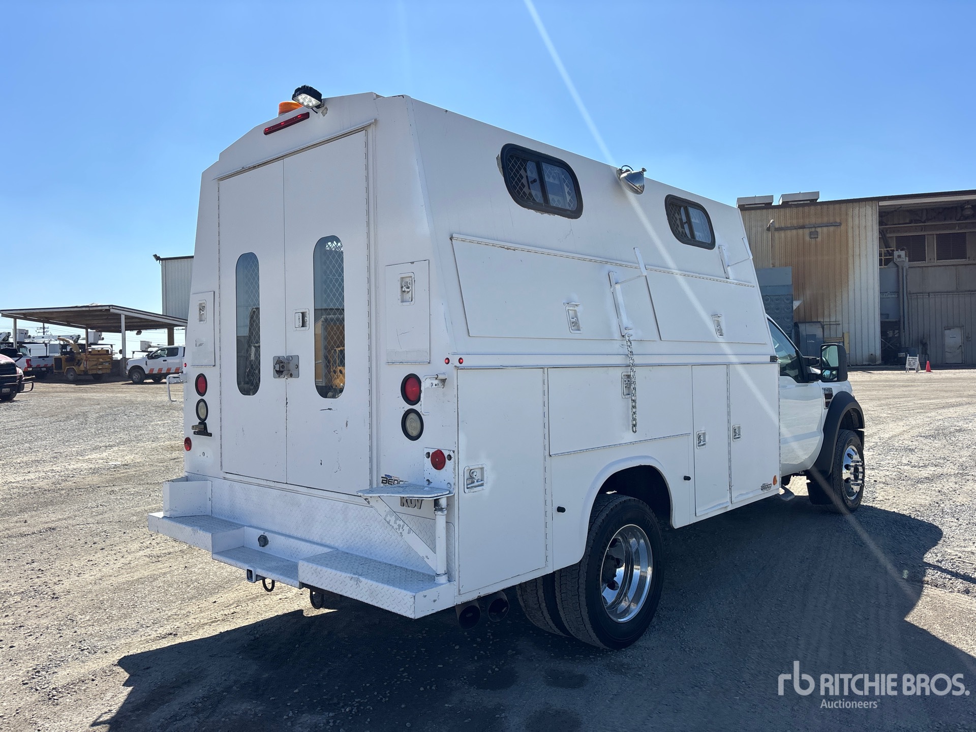 Located in Lane 24 Spot 10, Ford Powerstroke V8 6.4 L Diesel Engine, 2008 US EPA Label, Automatic Transmission, 6000 lb Front Axle, 12000 lb Rears, 16000 lb GVWR, Aluminum Outer Wheels, 225/70R19.5, Spring Suspension, 166 in Wheelbase, Knapheide KC132H2094J 11 ft Body, 1000 lb Crane