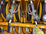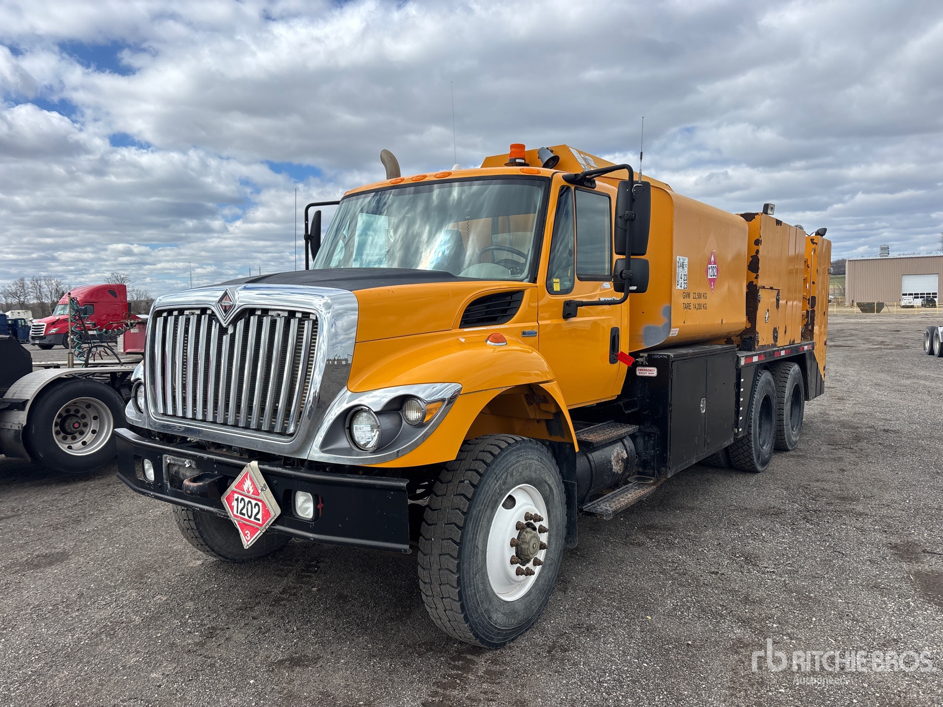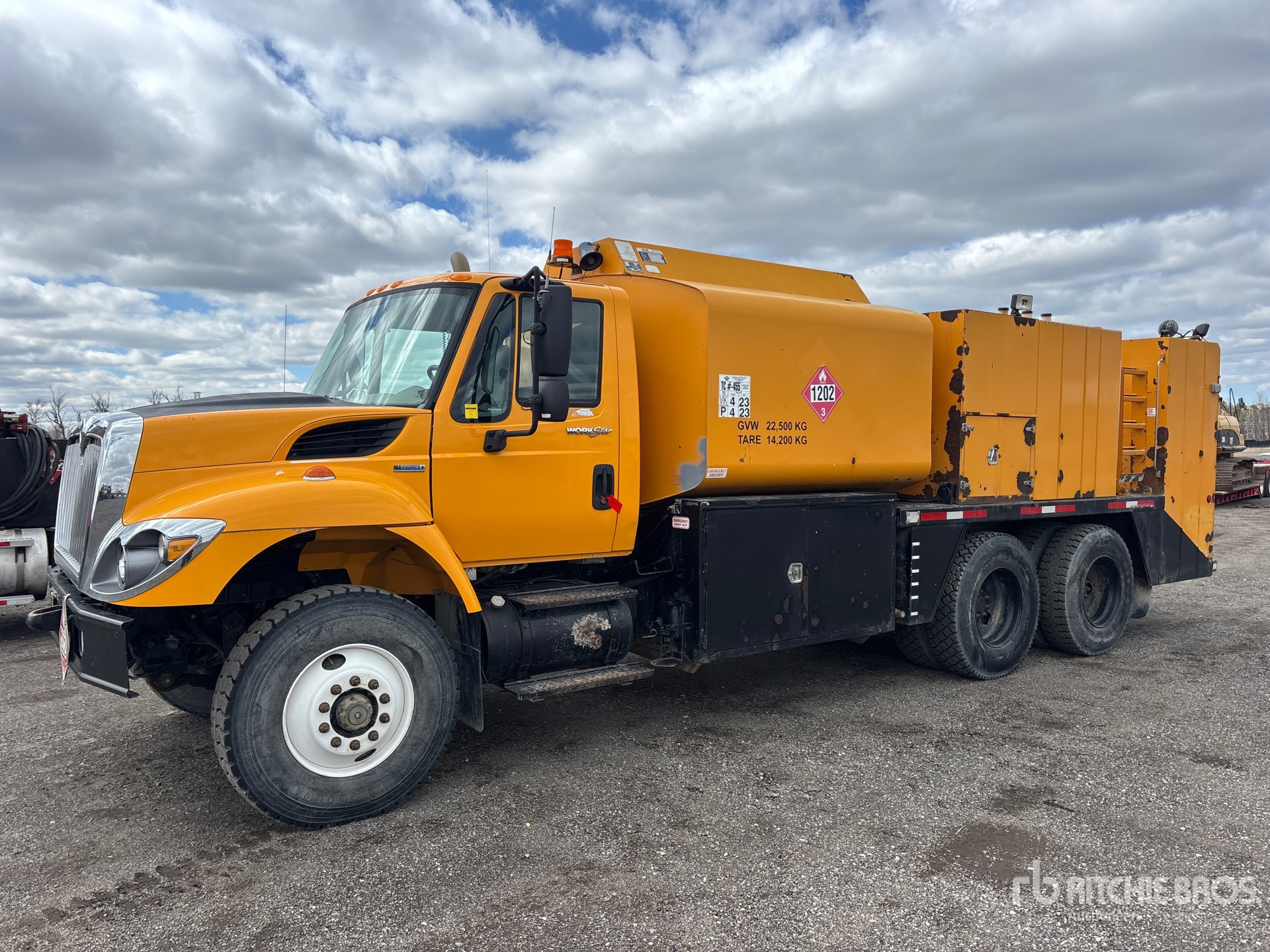International MaxxForce 9 6 Cylinder 9.3 L Diesel 310 hp Engine, 2007 US EPA Label, CARB Compliant, 13185 Engine hrs, Engine Brake, Allison Automatic Transmission, Differential Lock, 14780 lb Front Axle, 40000 lb Rears, 54780 lb GVWR, 12R22.5, Hendrickson Spring over Walking Beam Suspension, 218 in Wheelbase, PTO, 155.73 20 ft 4 in Body, 1800 gal Diesel Tank, ( 5 ) Oil Tanks, ( 12 ) Hose Reels, Metered Nozzles, Grease Barrel, Pressure Washer, Oil Recovery System, Hydraulic Hose Reel, Atlas Copco LE7-10VU B Gasoline Air Compressor, Air Hose Reel
