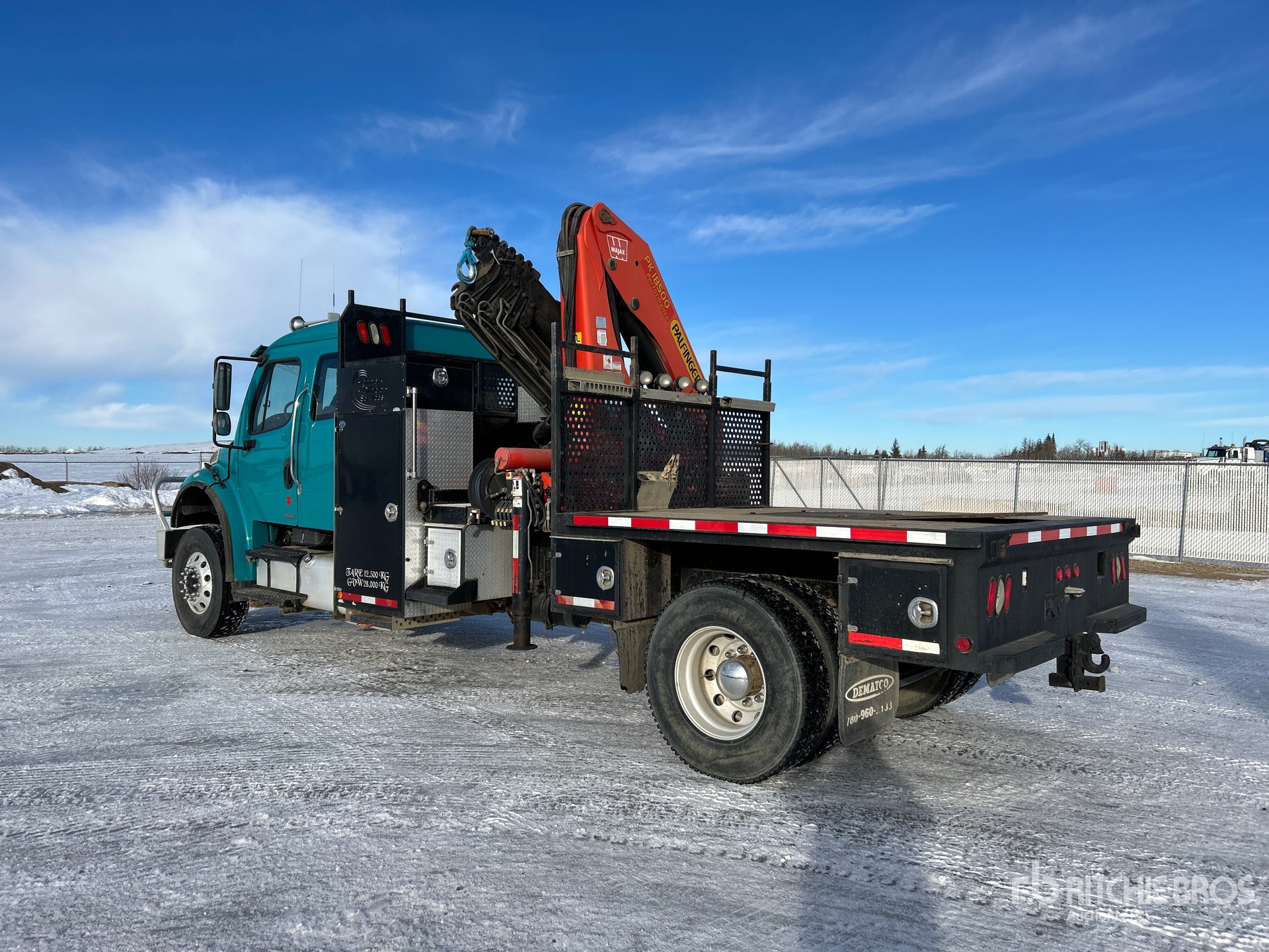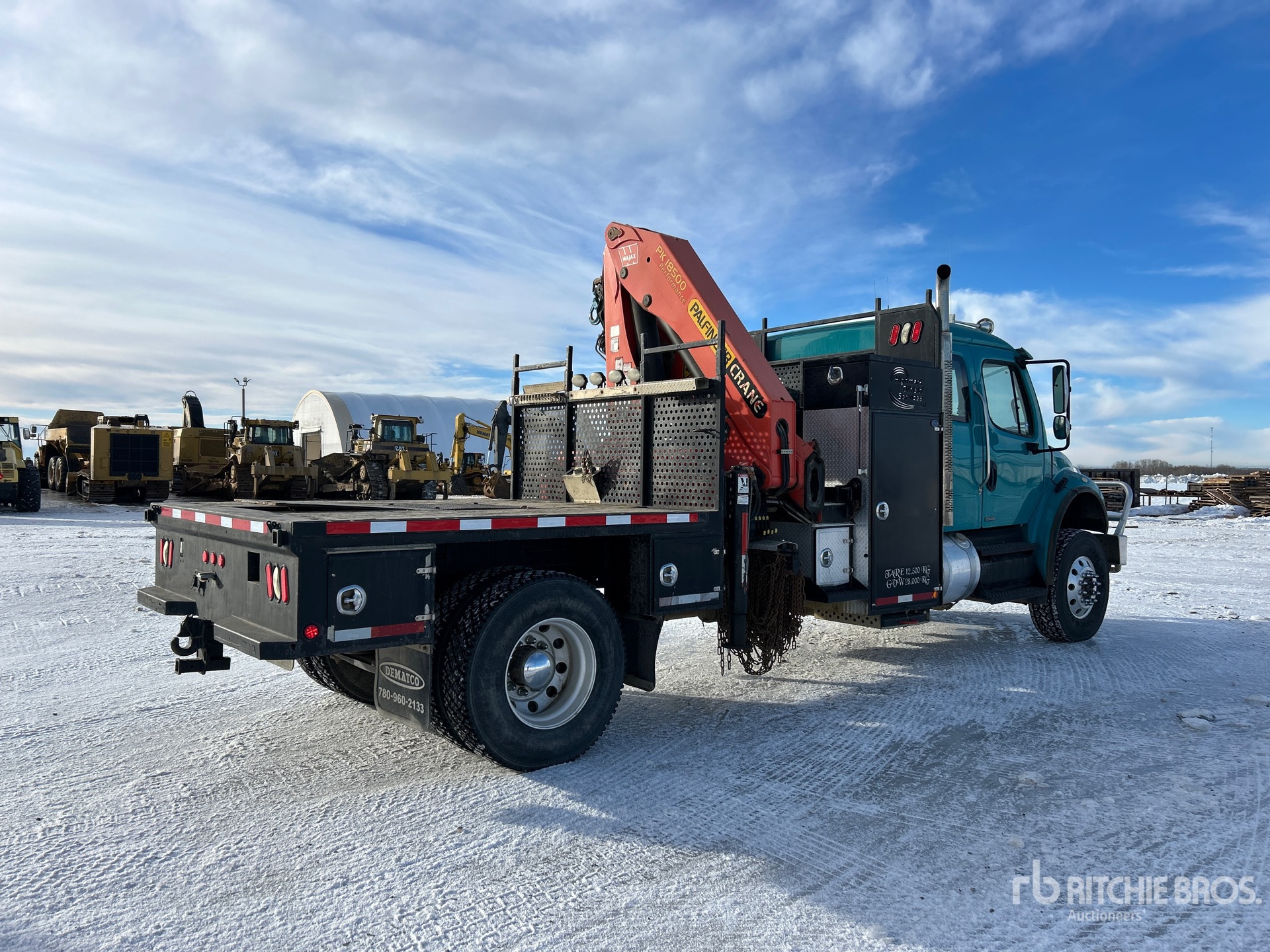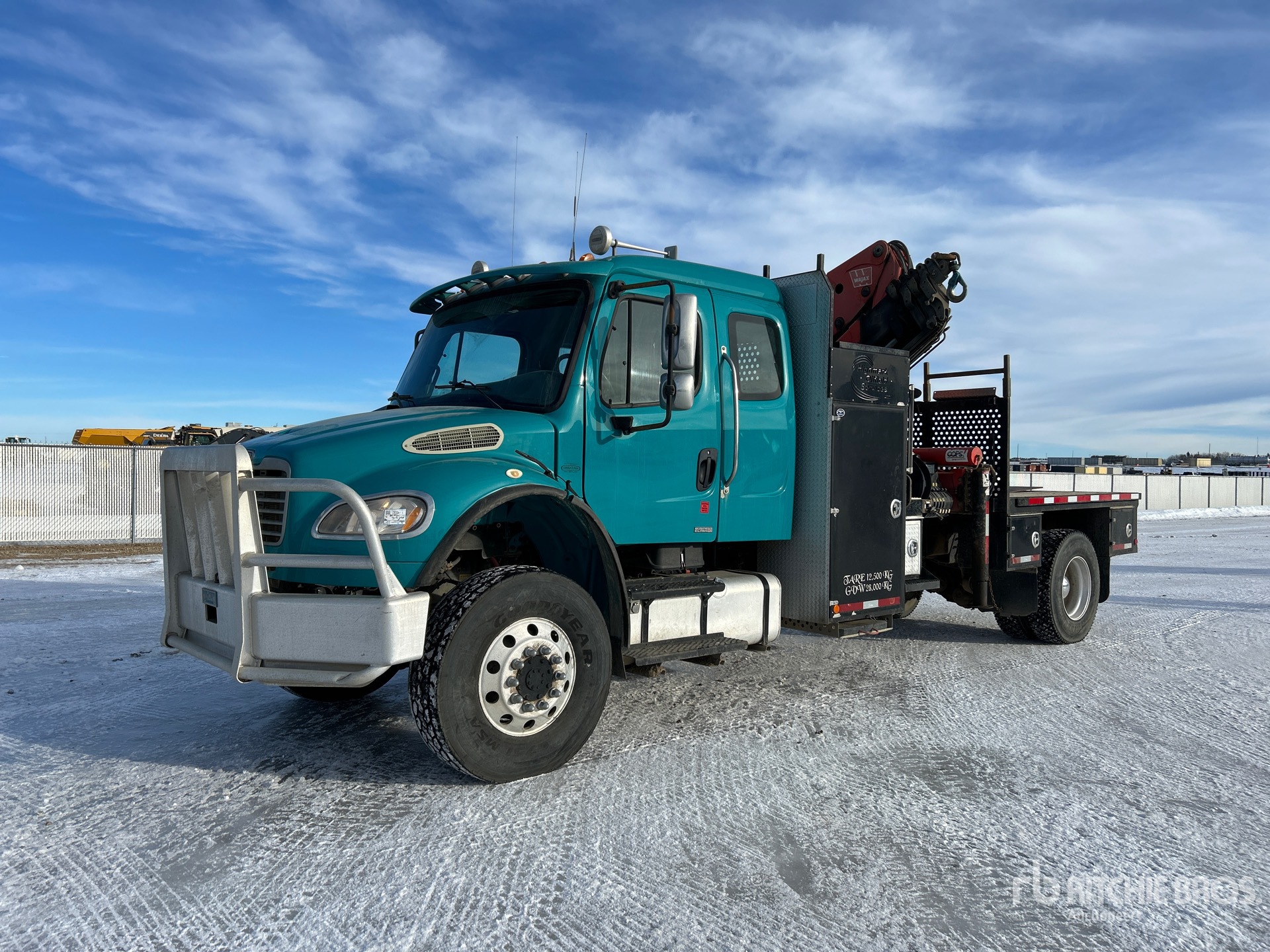 Cummins 6 Cylinder 8.3 L Diesel Engine, Positive Air Shutoff, 8456 Engine hrs, Eaton Fuller 10-Speed Manual Transmission, Differential Lock, 13220 lb Front Axle, 23000 lb Rears, 36220 lb GVWR, Air Ride Cab, Aluminum Wheels, 315/80R22.5 Front Tires, 11R22.5 Rear Tires, Air Ride Suspension, 241 in Wheelbase, PTO, 7 Section Boom, Out and Down Outriggers, 8 ft 9 in x 97 in Bed, 5th Wheel, Ringfeder