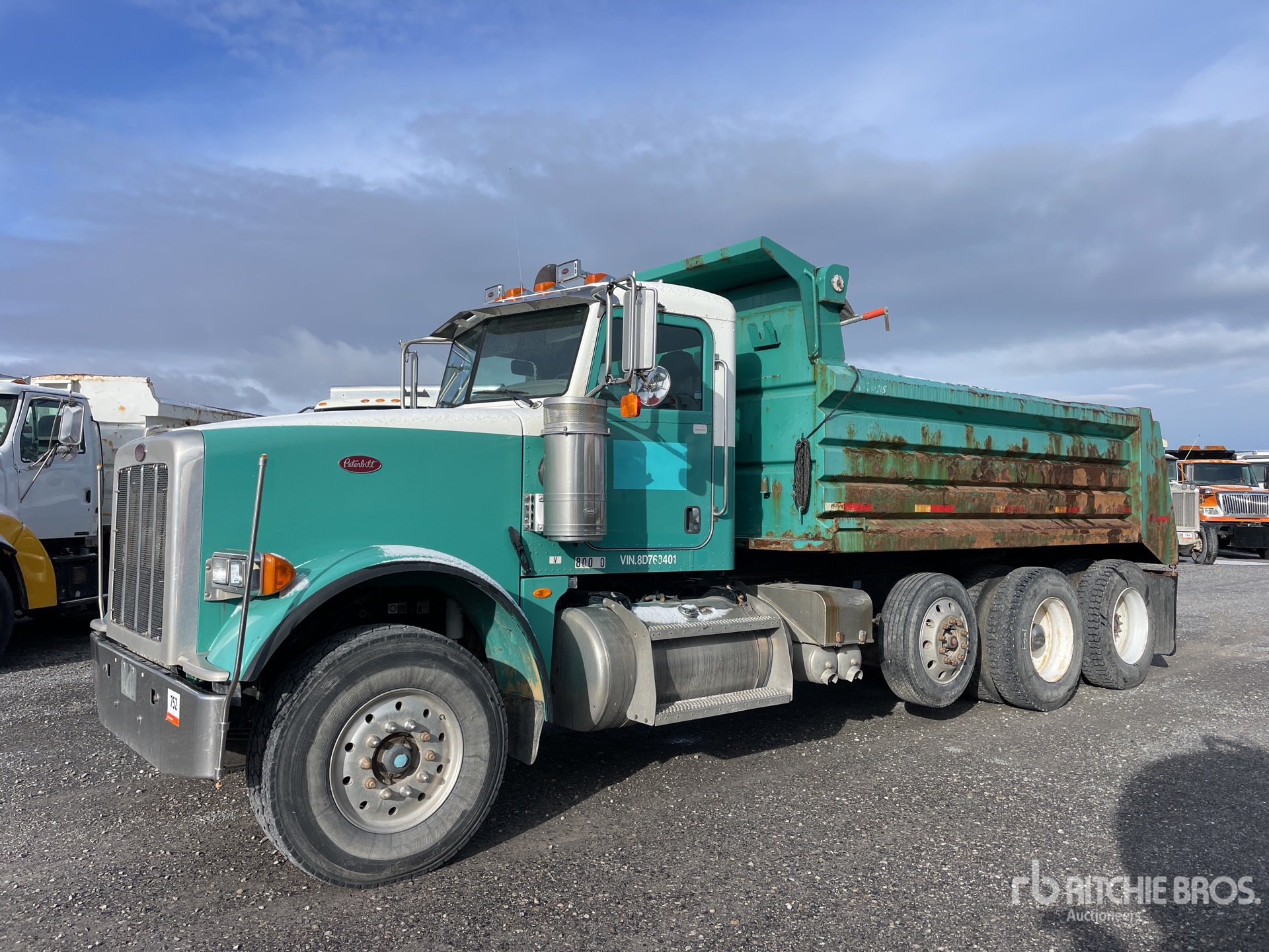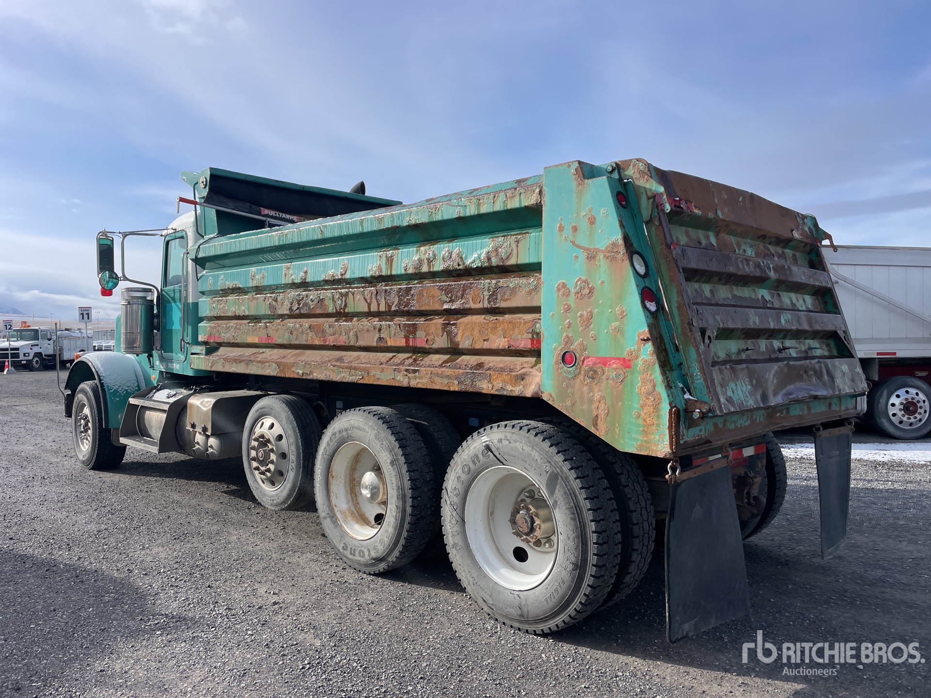 Located in Lane 11 Spot 8, Cat C15 6 Cylinder Diesel 475 hp Engine, 2007 US EPA Label, 4670 Engine hrs, Eaton Fuller 15-Speed Manual Transmission, 18740 lb Front Axle, 46000 lb Rears, 75760 lb GVWR, 385/65R22.5 Front Tires, 11R24.5 Rear Tires, Steerable Air Lift Pusher Axle, Air Ride Suspension, 242 in Wheelbase, 16 ft Long x 0 ft 46 in High Steel Body