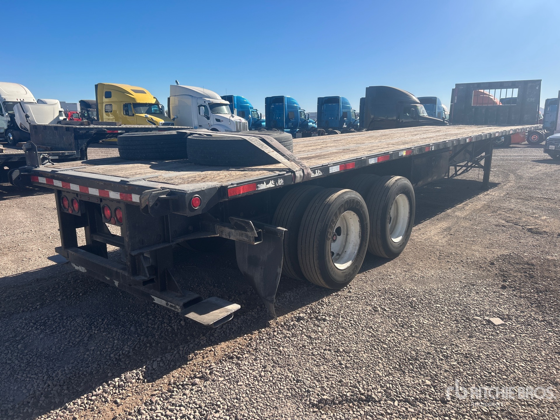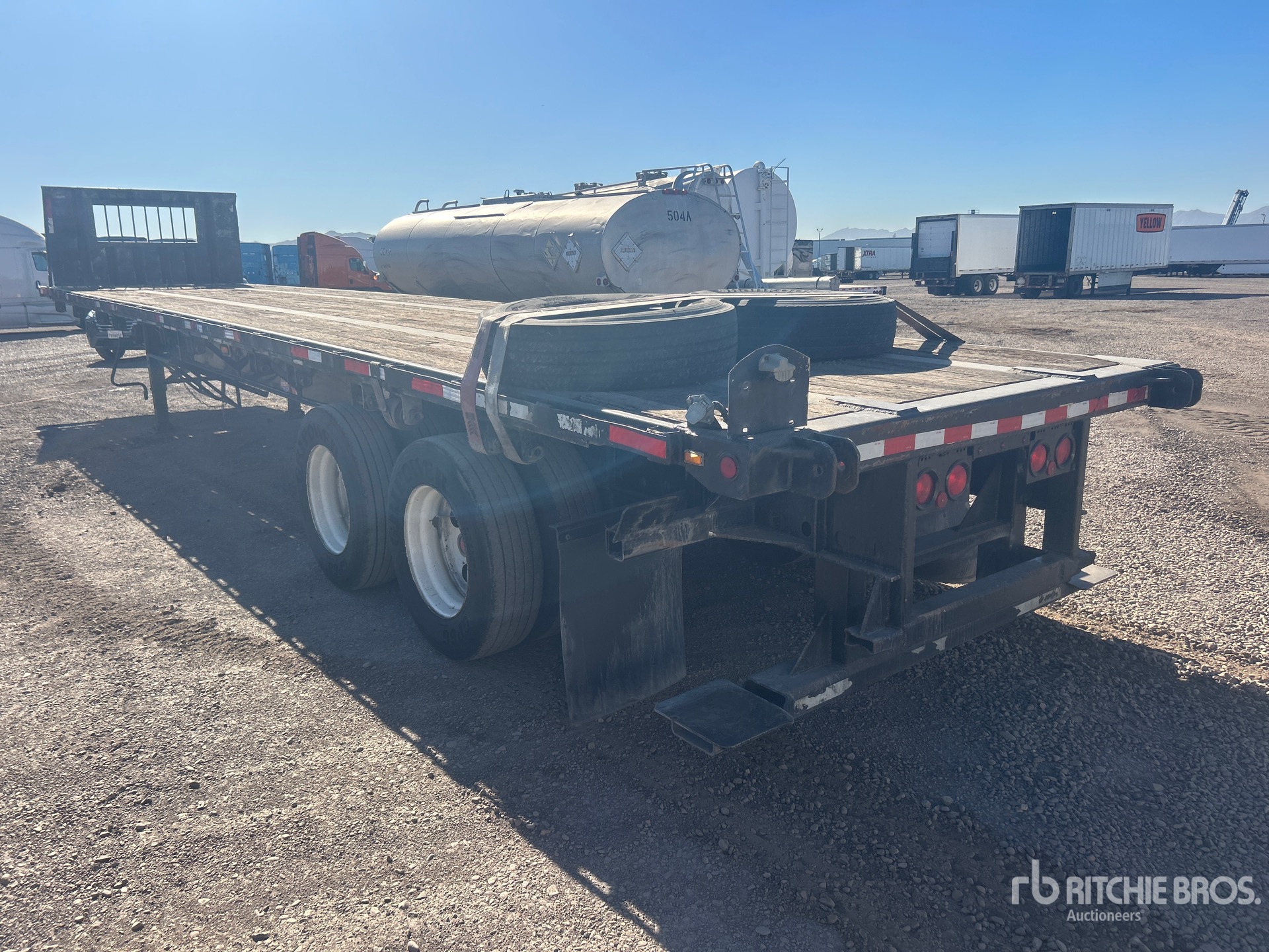 Located in Lane 11 Spot 44, Air Ride Suspension, Sliding Suspension, 97 in Deck Width, 102 in Overall Width, Bulkhead, Forklift Mount Kit, Wood Flooring, 295/75R22.5 Tires