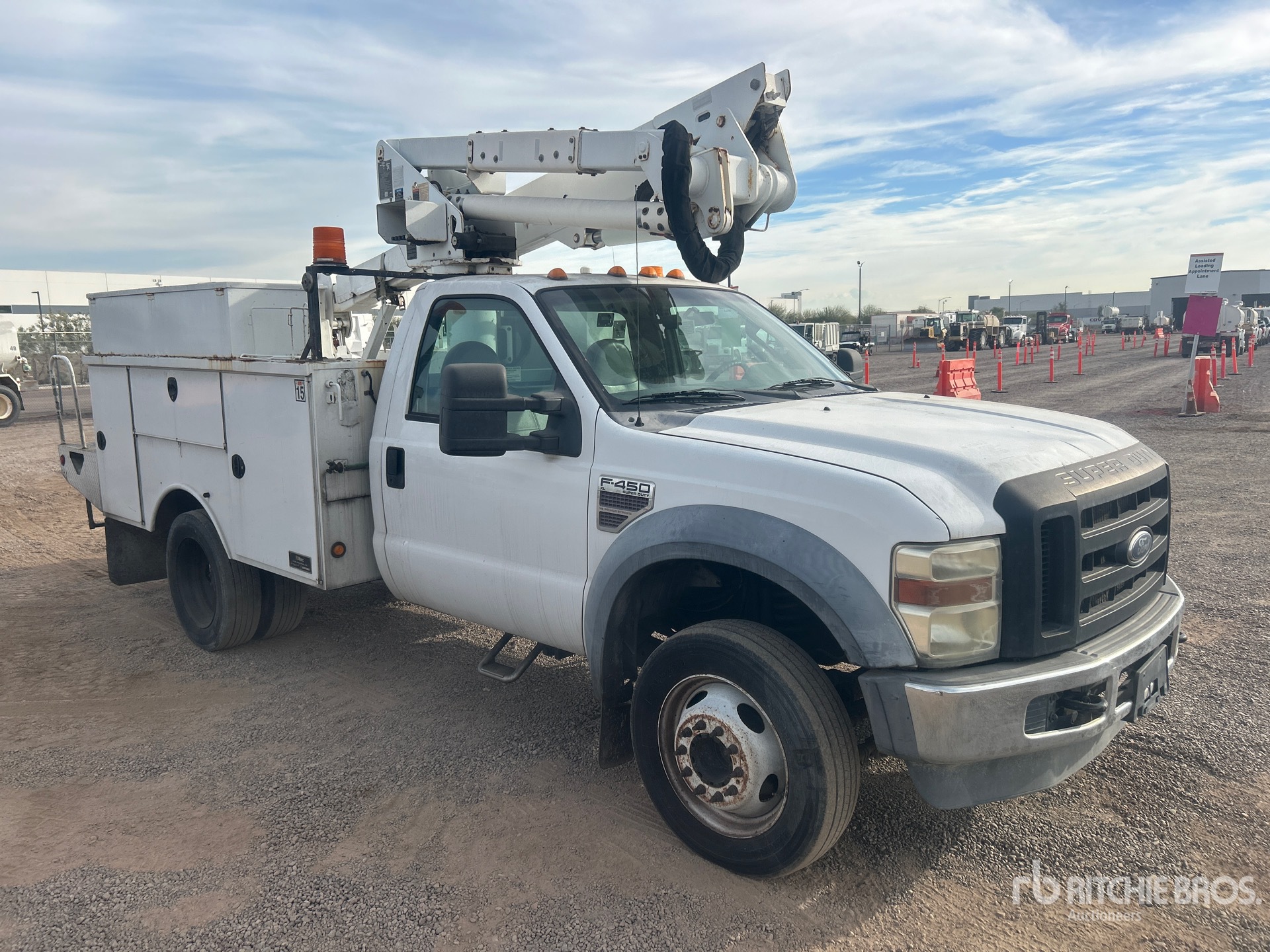 Located in Lane 16 Spot 11, V8 6.4 L Diesel Engine, Automatic Transmission, 7000 lb Front Axle, 12000 lb Rears, 16500 lb GVWR, 225/70R19.5, Spring Suspension, 141 in Wheelbase, 350 lb Capacity, Rear Mounted, Insulated One-Person Articulated Boom, Utility Body, 11 ft 5 in x 58 in Bed