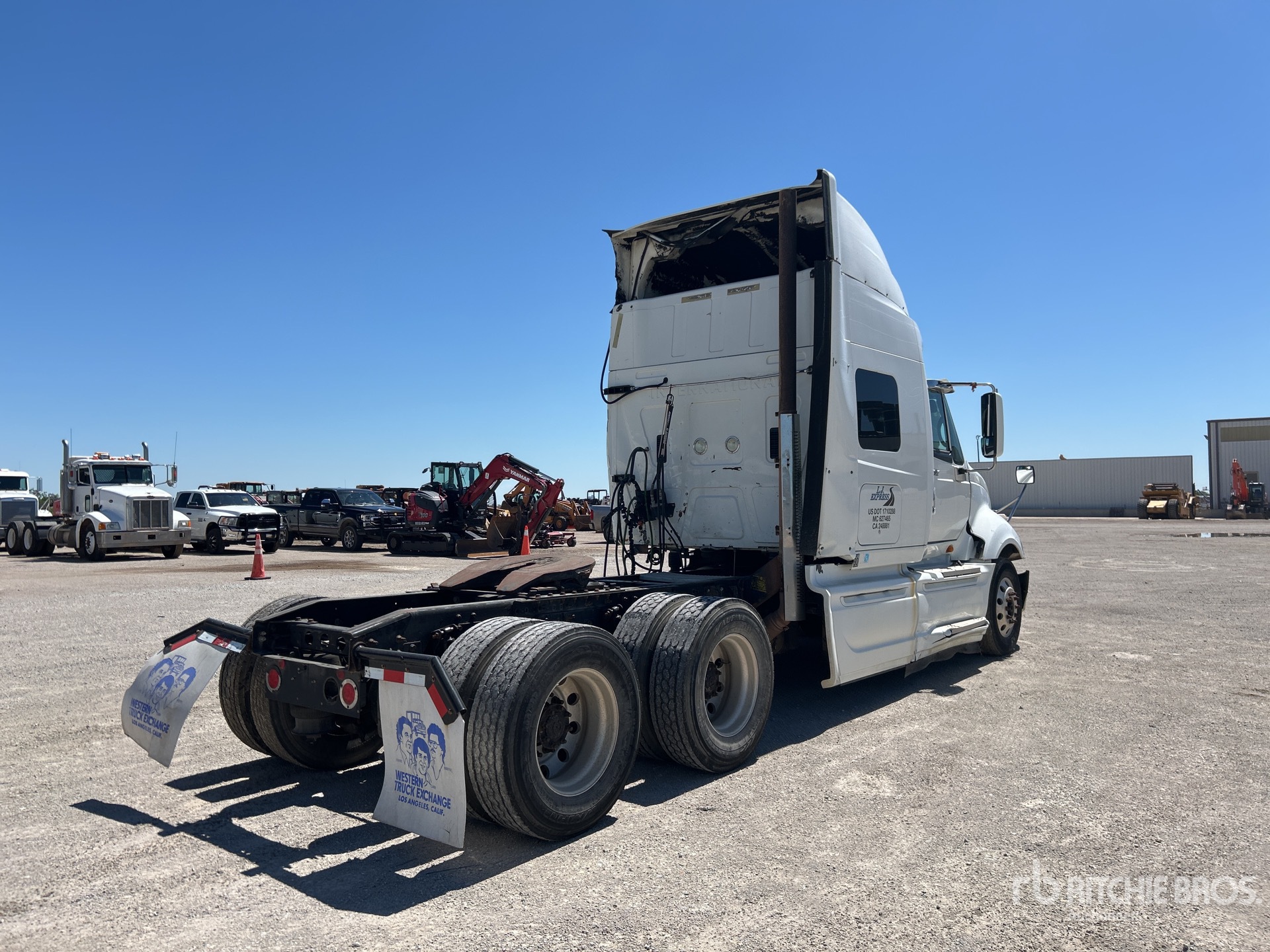 Located in Lane 36 Spot 9, Cummins ISX 435 kW Engine, 2008 US EPA Label, 32138 Engine hrs, Eaton Fuller 13-Speed Manual Transmission, 12350 lb Front Axle, 40000 lb Rears, 52350 lb GVWR, Engine Brake, Mid Roof Sleeper Cab, Bunk Beds, 228 in Wheelbase, Air Suspension, Aluminum Outer Wheels, 295/75R22.5, Air Sliding 5th Wheel, Dual Fuel Tanks