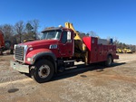 Mack MP7 6 Cylinder 6.7 L Diesel 300 hp Engine, 2009 US EPA Label, Engine Brake, Mack TM308 Manual Transmission, Meritor Drive Axles, 4.63:1 Axle Ratio, Air Ride Cab, 315/80R22.5 Front Tires, 11R22.5 Rear Tires, Spring Suspension, 253 in Wheelbase, PTO, 13 ft 0 in Body, Hydraulic Stabilizers, LMT 8031 13000 lb 3 Section Hydraulic Crane, Wired Remote Control, Air Hose Reel, Lincoln Air Vantage 500 Diesel 3-in-1 Welder