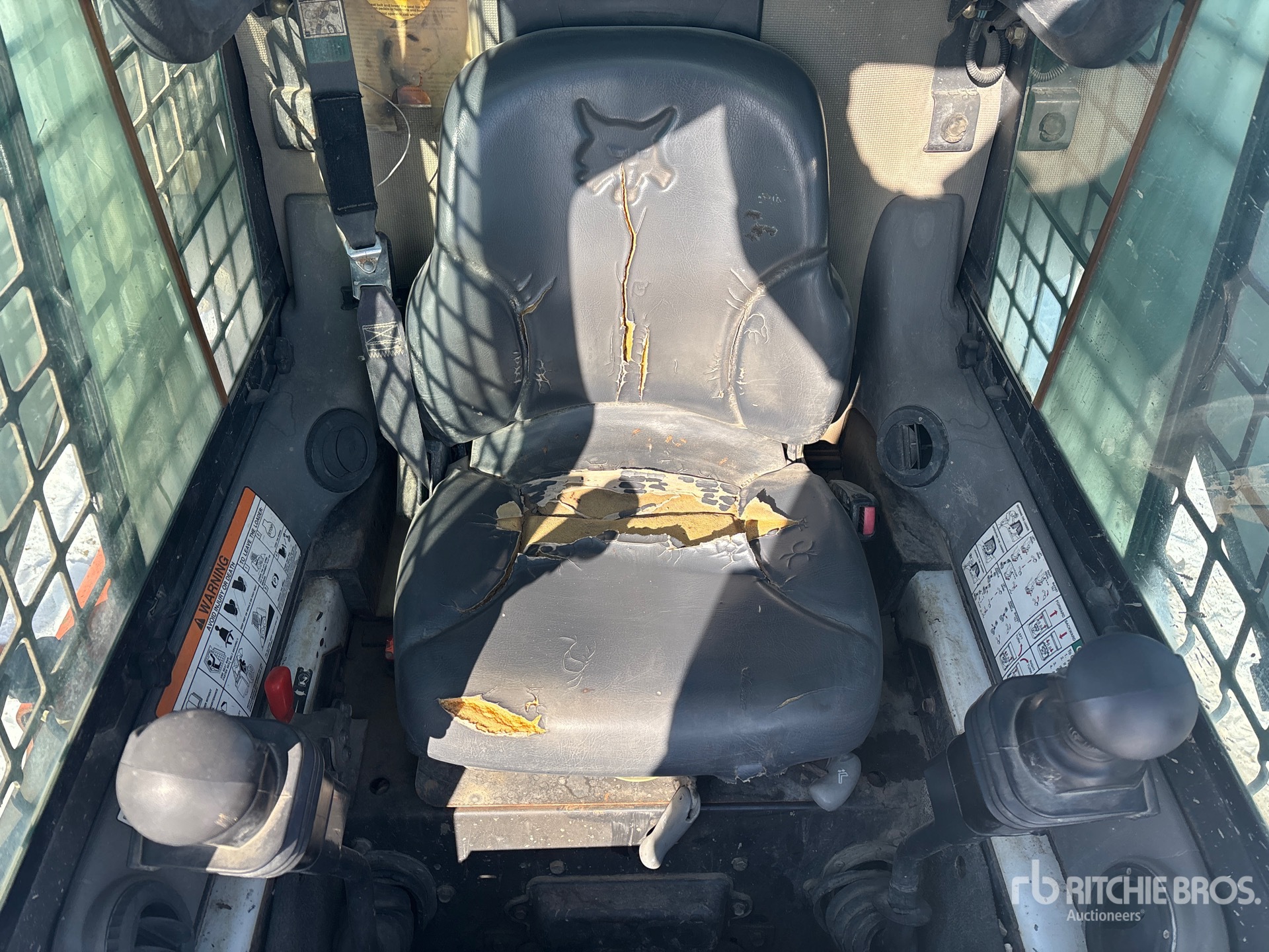 Enclosed Cab (Door missing), Joystick Steering, US EPA Label, CARB Compliant, Hydraulic Coupler, 55 in Bucket