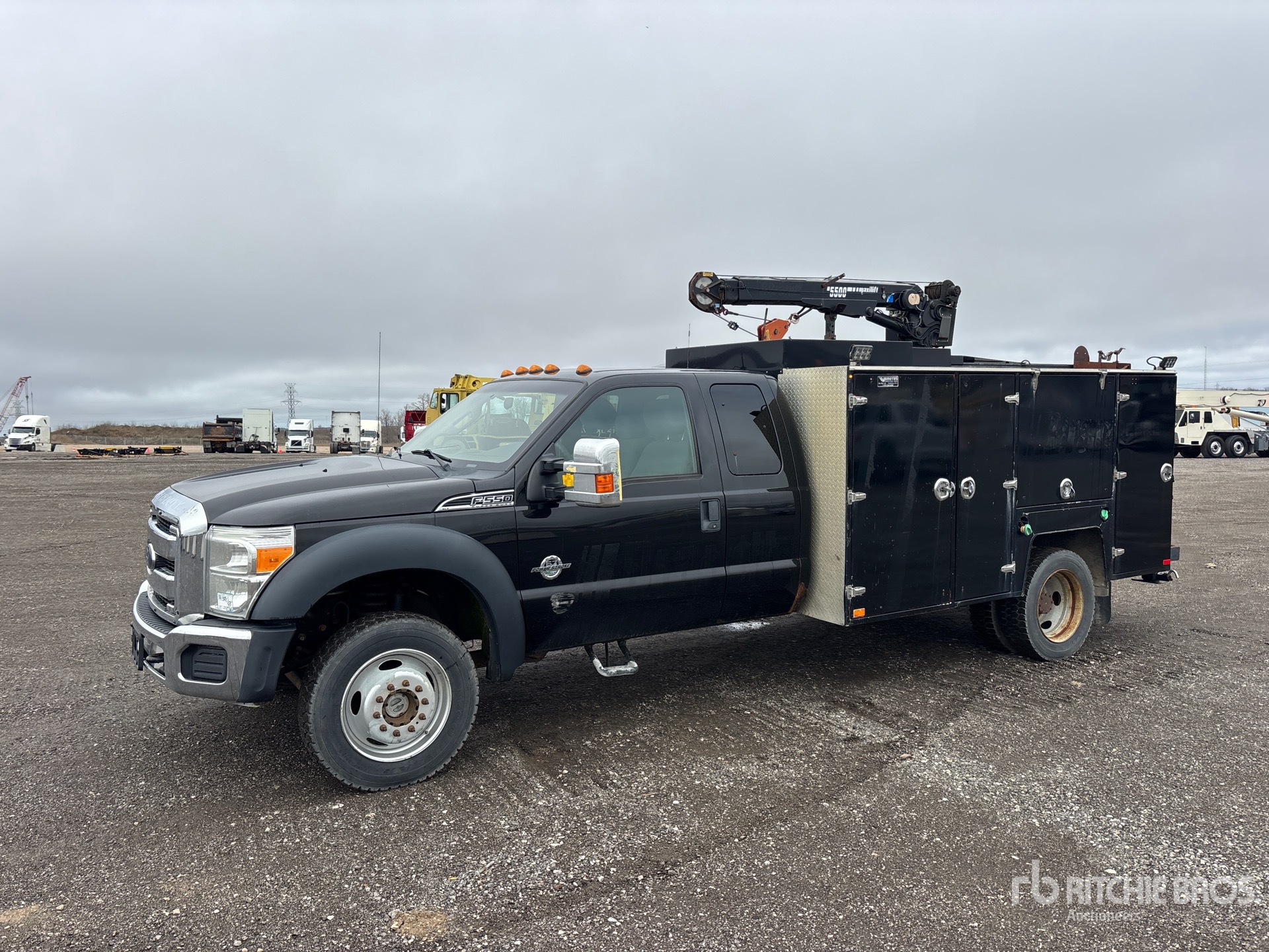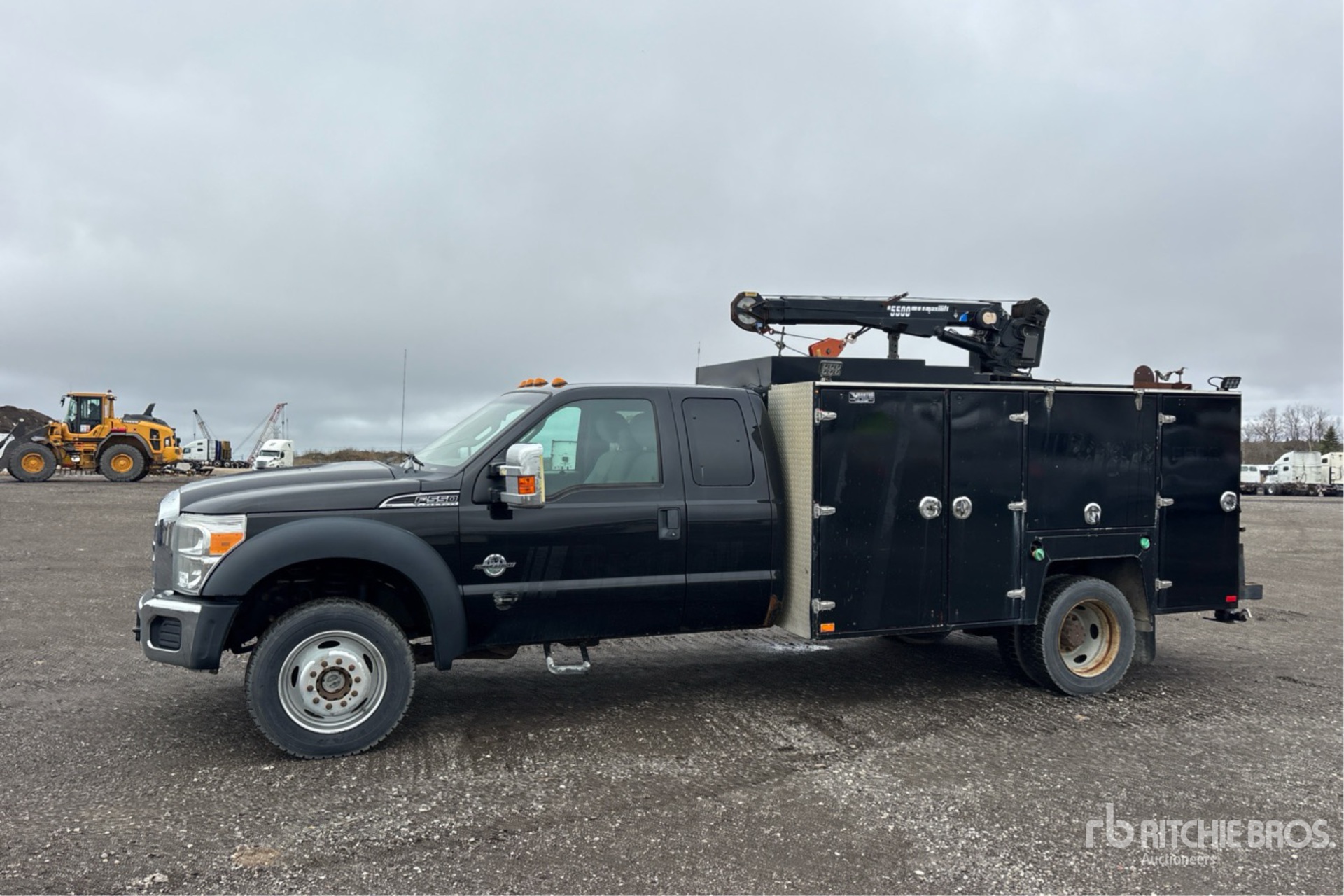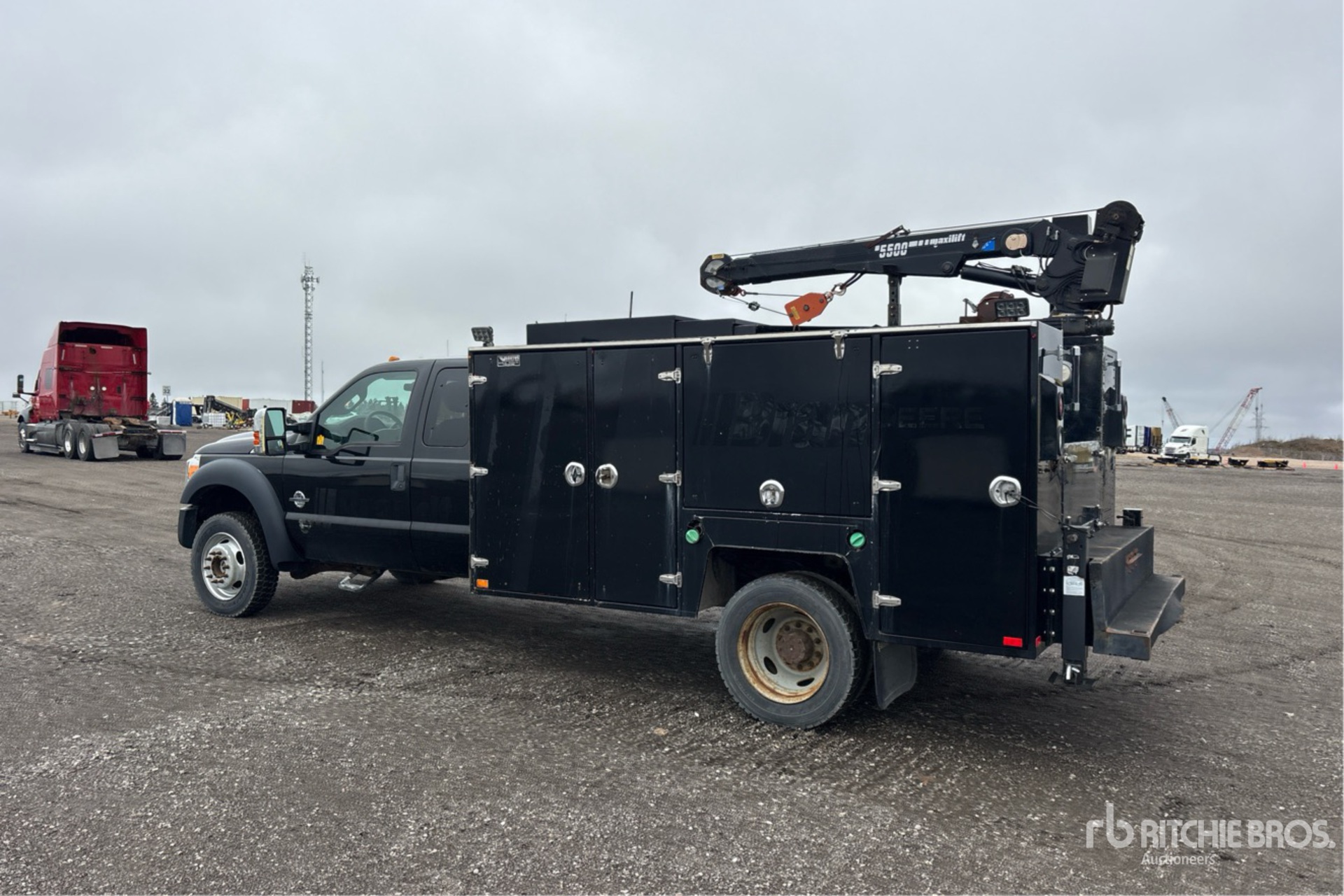 Located in Lane 15 Spot 19, Ford Powerstroke V8 6.7 L Diesel Engine, 2012 US EPA Label, CARB Compliant, Automatic Transmission, 7000 lb Front Axle, 14706 lb Rears, 19500 lb GVWR, 225/70R19.5, Spring Suspension, 186 in Wheelbase, 12 ft 8 in Body, Manual Stabilizers, Maxilift Cobra 5500 5100 lb 3 Section Hydraulic Crane