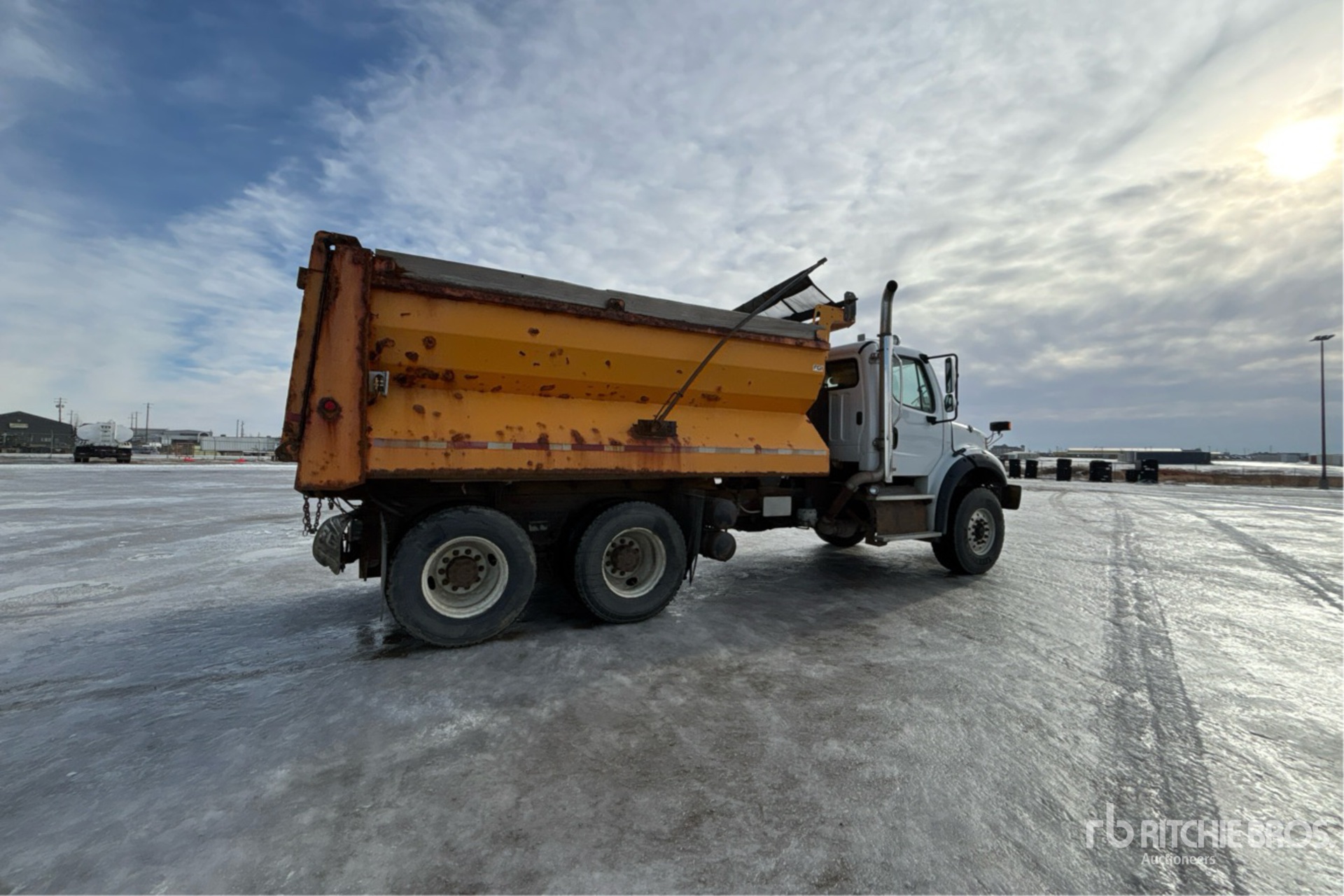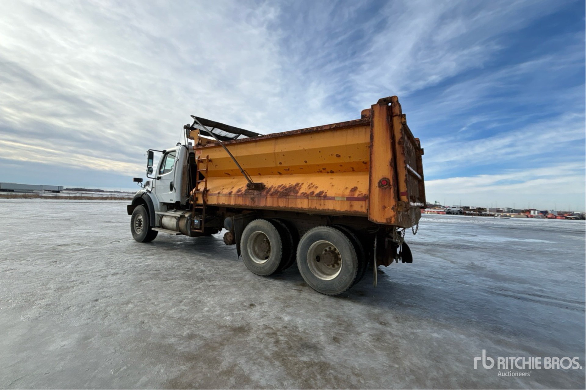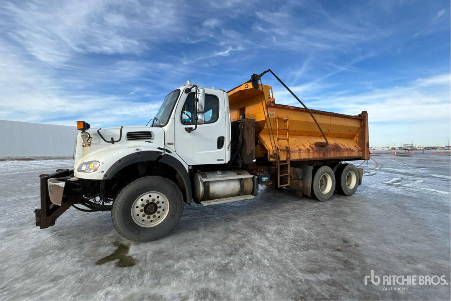Detroit DD13 6 Cylinder 12.8 L Diesel 450 hp Engine, 12788 Engine hrs, Engine Brake, Eaton Fuller RTLO-16918B 18-Speed Manual Transmission, Double Differential Locks, 20000 lb Front Axle, 40000 lb Rears, Meritor RT-40-145P Drive Axles, 4.11:1 Axle Ratio, 60000 lb GVWR, Air Ride Cab, Aluminum Front Wheels, 425/65R22.5 Front Tires, 11R22.5 Rear Tires, Dual Steering Boxes, Double Frame, Hendrickson Haulmaax Rubber over Walking Beam Suspension, 213 in Wheelbase, Spreader, Tenco 15 ft Long x 4 ft 6 in High Steel Body, Manual Roll Tarp, Pintle Hitch, Pre-Wet System, In-Cab Controls