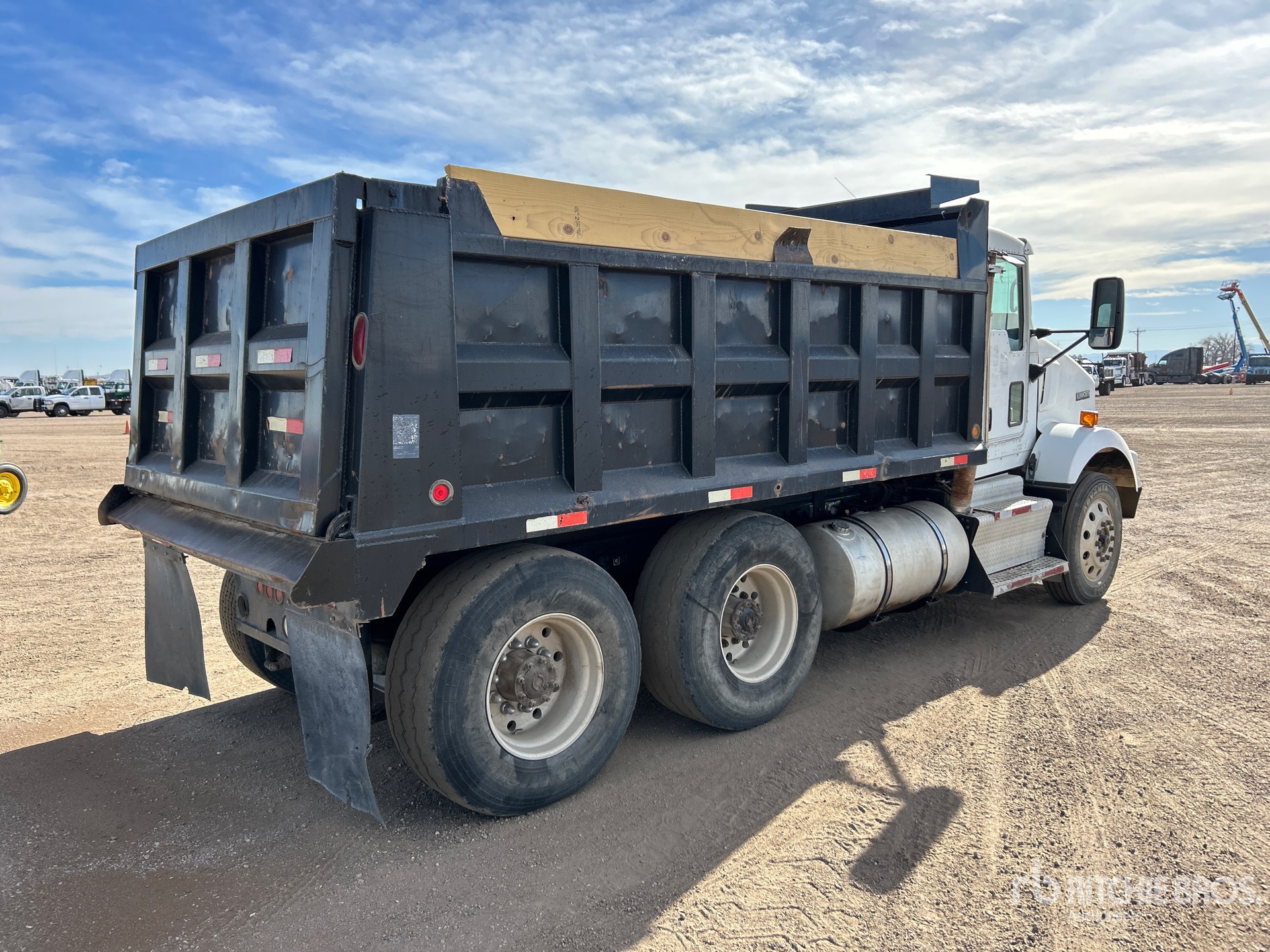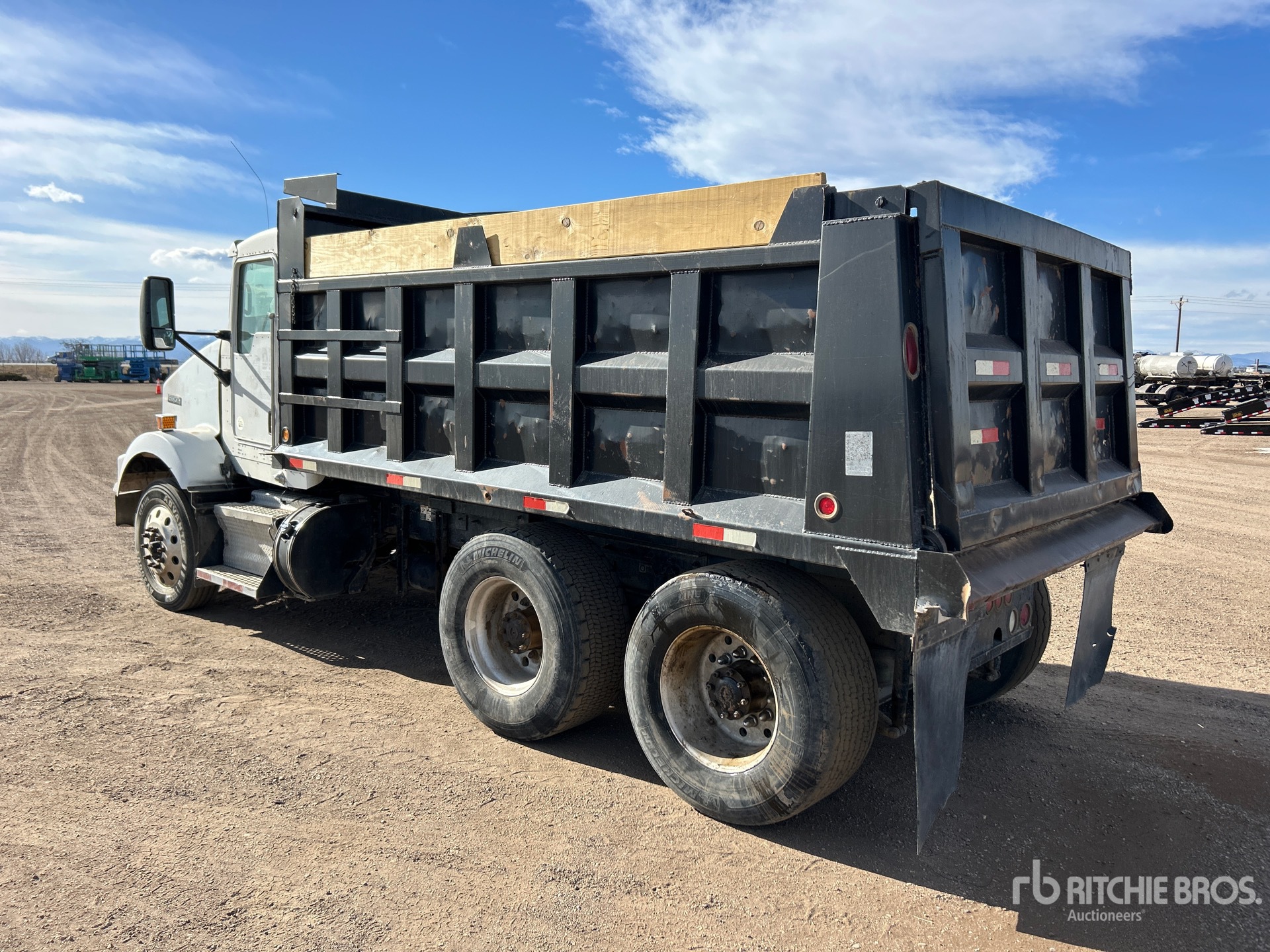 Paccar MX 6 Cylinder 12.9 L Diesel 380 hp Engine, 2011 US EPA Label, 3055 Engine hrs, Engine Brake, Eaton Fuller FOM-15E310C-LAS Automatic Transmission, 12000 lb Front Axle, 34000 lb Rears, Meritor RT41-145A Drive Axles, 3.73:1 Axle Ratio, 46000 lb GVWR, Aluminum Wheels, 285/75R24.5 Front Tires, 425/65R22.5 Super Singles Rear Tires, Air Ride Suspension, 185 in Wheelbase, PTO, 14 ft Long x 3 ft 3 in High Steel Body