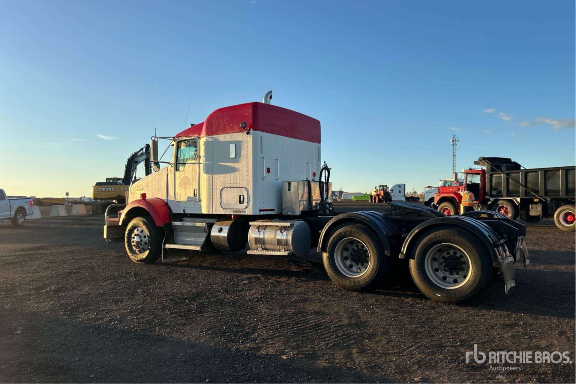 Located in Lane 9 Spot 16, Paccar 485 hp Engine, 2011 US EPA Label, 27581 Engine hrs, Eaton Fuller Manual Transmission, 6623 kg Front Axle, 20412 kg Rears, 26853 kg GVWR, Engine Brake, Double Differential Locks, 52 in Mid Roof Sleeper Cab, 227 in Wheelbase, Air Suspension, Aluminum Wheels, 11R22.5, Wet Kit, Air Sliding 5th Wheel, Dual Fuel Tanks
