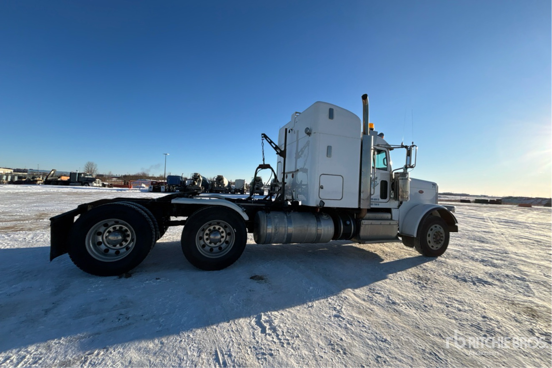 Cummins ISX15 500 hp Engine, Positive Air Shutoff, 2011 US EPA Label, 21558 Engine hrs, Eaton Fuller 18-Speed Manual Transmission, 12000 lb Front Axle, 40000 lb Rears, 52000 lb GVWR, Engine Brake, Double Differential Locks, 44 in Mid Roof Sleeper Cab, Bunk Heater, 244 in Wheelbase, Air Suspension, Aluminum Wheels, 11R24.5, Wet Kit, Air Sliding 5th Wheel, Dual Fuel Tanks, Complete-Dispersal-for-ABS-Trucking