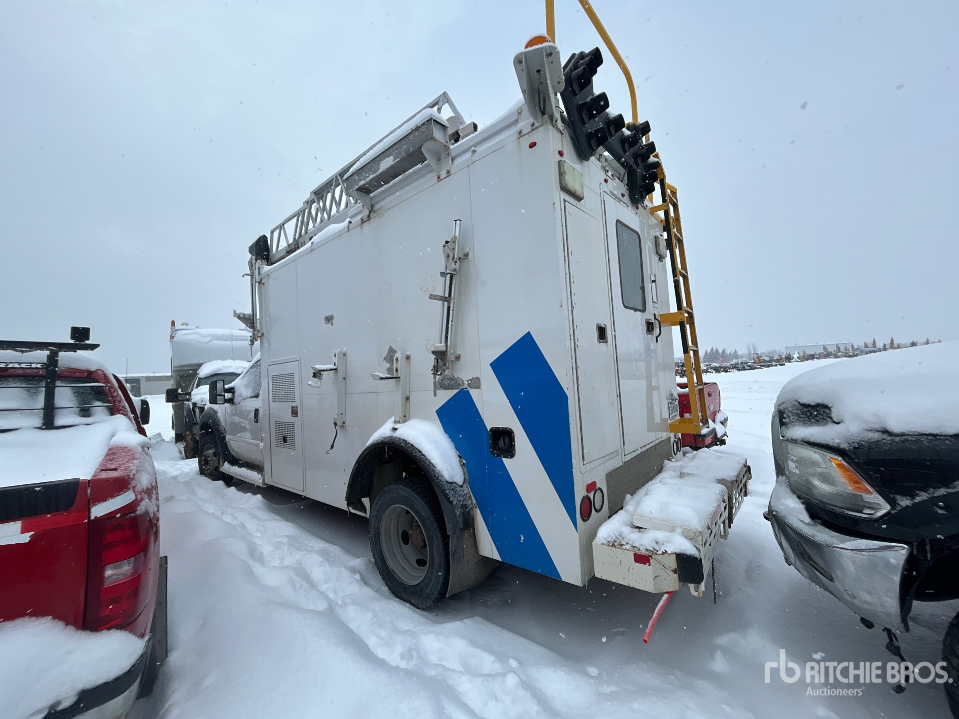 V10 6.8 L Gasoline Engine, 2012 US EPA Label, Automatic Transmission, 6500 lb Front Axle, 14706 lb Rears, 8845 kg GVWR, 225/70R19.5, Spring Suspension, 189 in Wheelbase, 550 lb Capacity, Rear Mounted, One-Person Telescopic Boom, Utility Body, Remote Control w/Cord, 13 ft x 82 in Bed