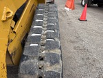 Enclosed Cab (Door missing), Air Conditioner, Joystick Steering, 18 in Track Belts, Hydraulic Coupler