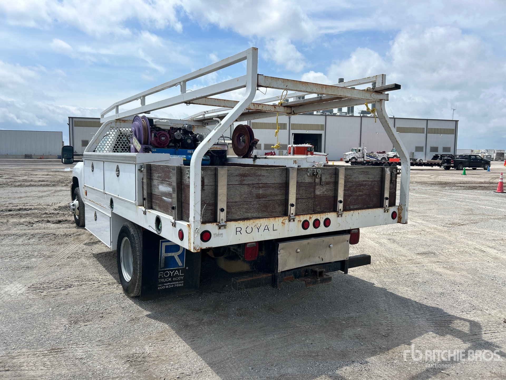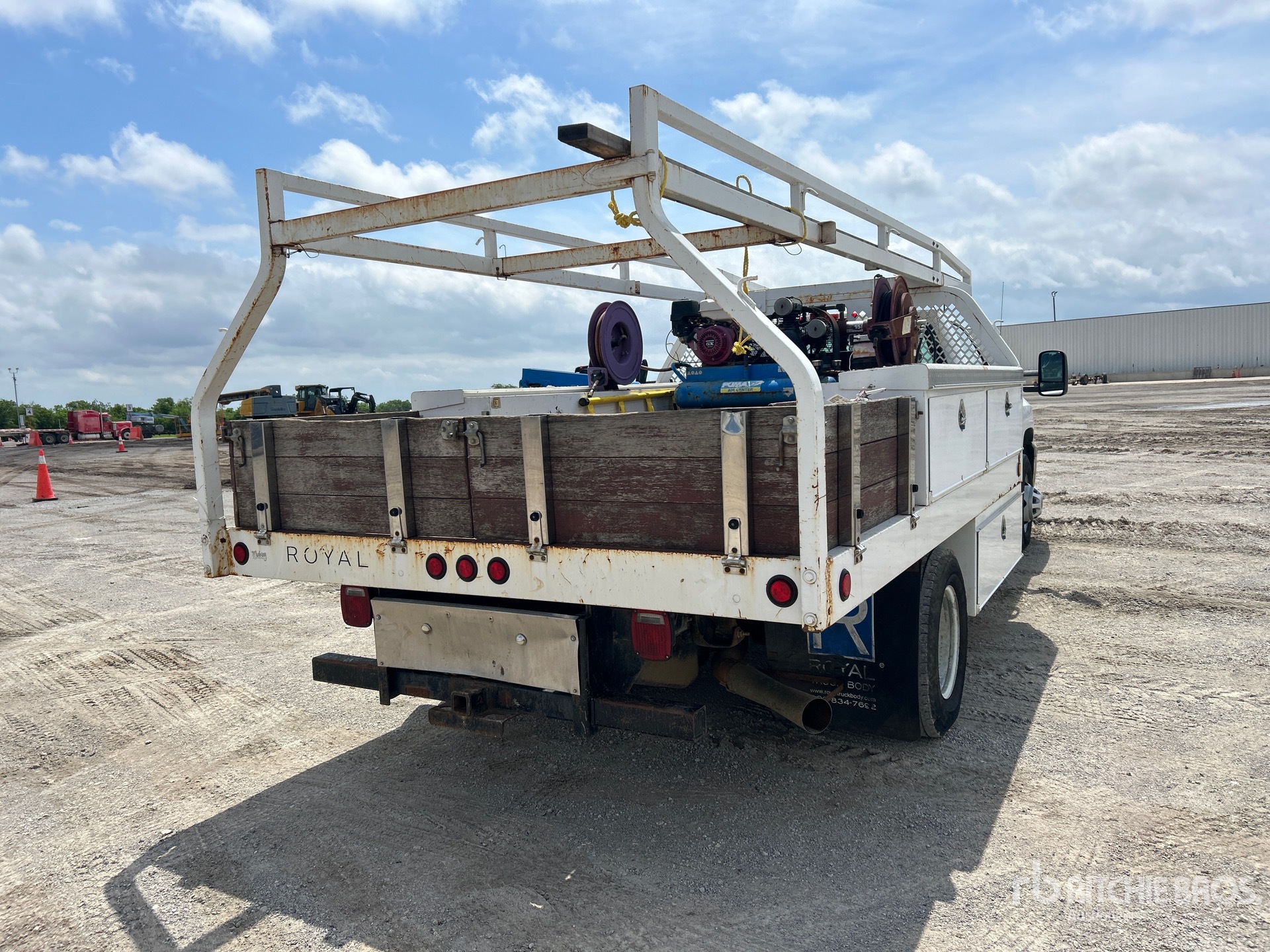General Motors V8 6.6 L Diesel Engine, Requires Diesel Exhaust Fluid, Automatic Transmission, 5600 lb Front Axle, 9750 lb Rears, 13200 lb GVWR, 235/80R17, Spring Suspension, 164 in Wheelbase, Royal truck body 12 ft Body, Puma Air Center Gasoline Air Compressor