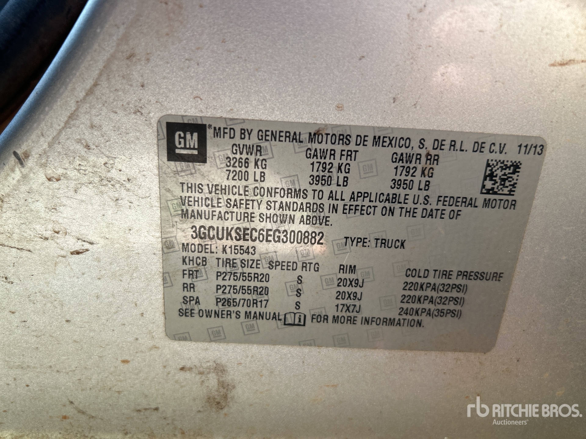 5.3 L V8 Gasoline Engine, 2014 US EPA Label, Automatic Transmission, Air Conditioner, Power Windows, Spray-On Bed Liner, 7200 lb GVWR, 275/55R20 Tires, 6 ft 2 in Bed