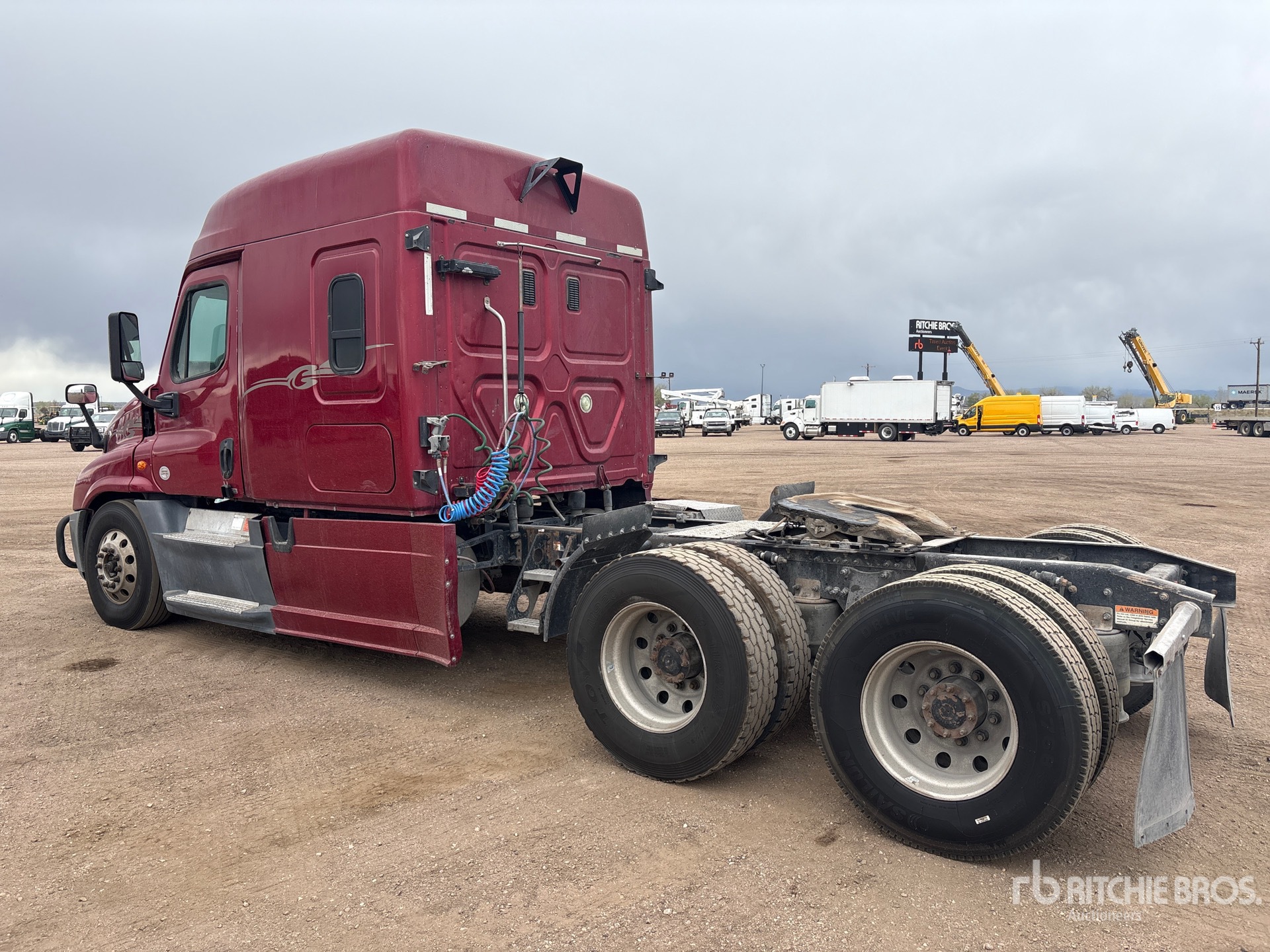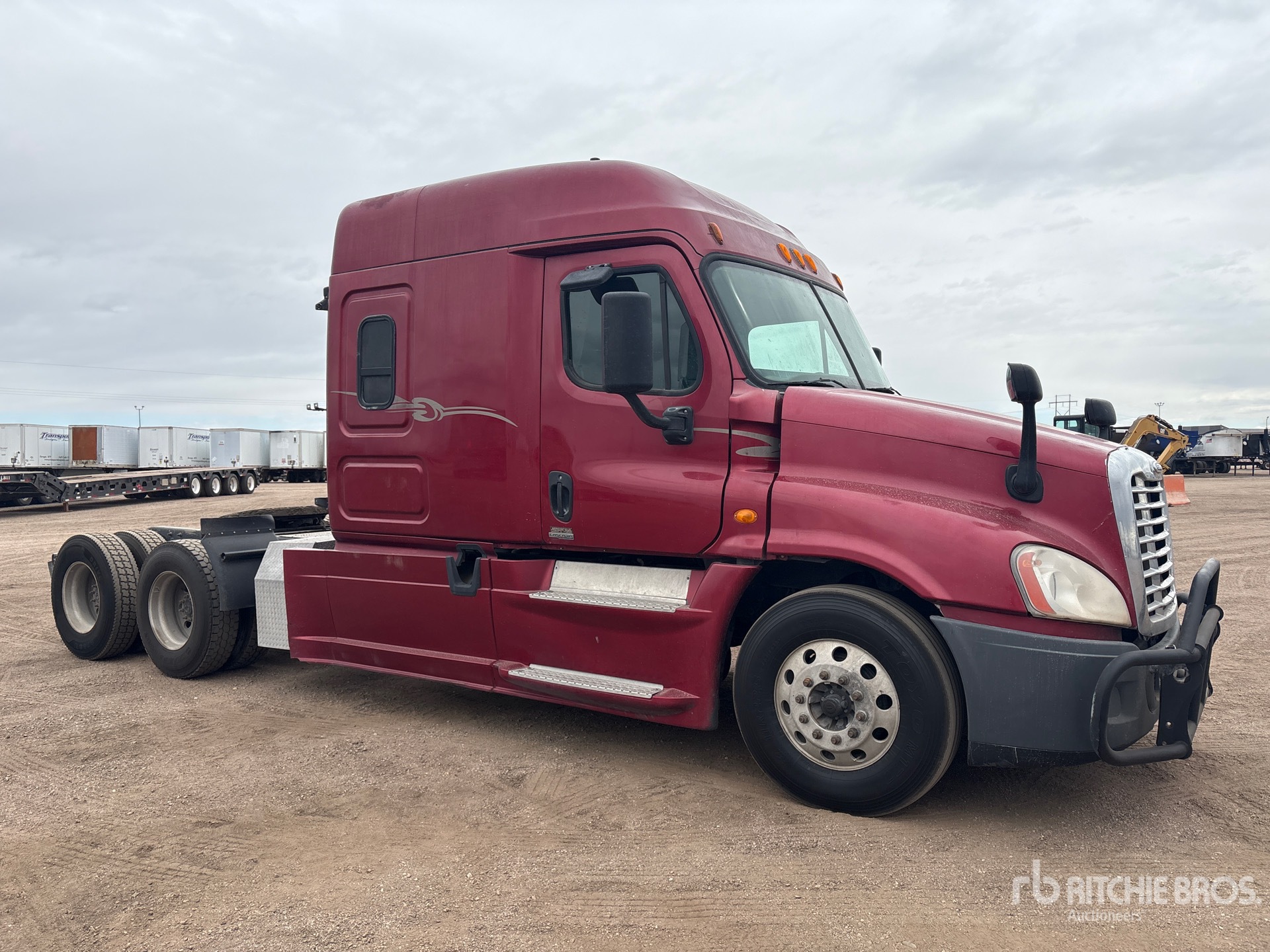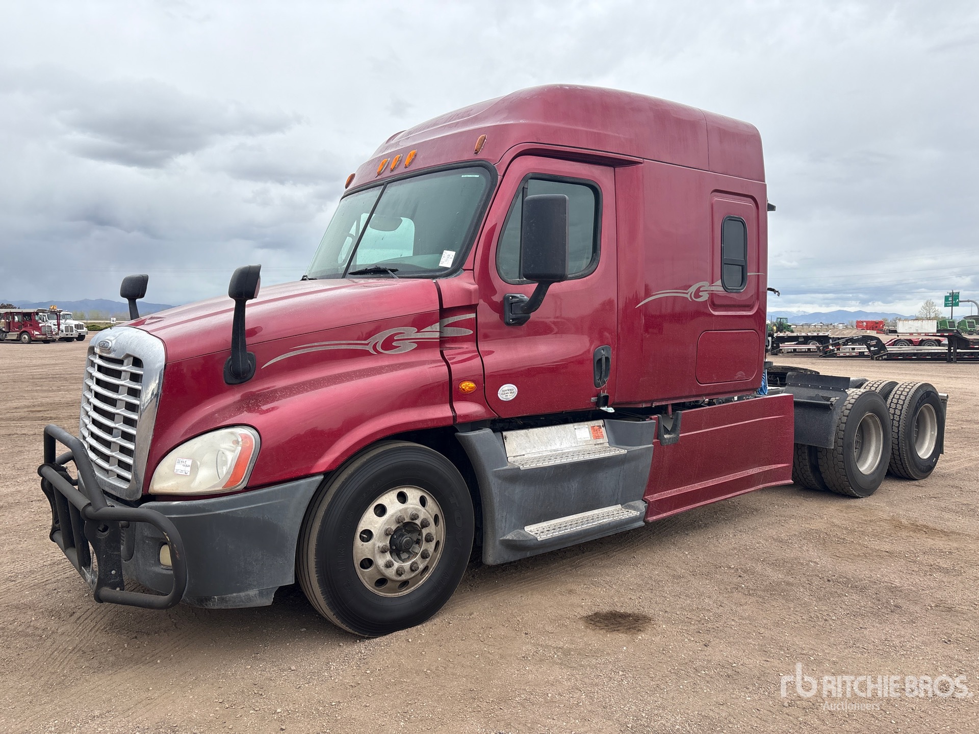 Detroit DD15 505 hp Engine, 27761 Engine hrs, Eaton Fuller FR-14210B 10-Speed Manual Transmission, 12000 lb Front Axle, 40000 lb Rears, 52000 lb GVWR, Engine Brake, 60 in Mid Roof Sleeper Cab, Bunk Beds, Bunk Heater, Auxiliary Power Unit, Rig Master Sleeper Air Conditioner, 231 in Wheelbase, Air Suspension, Aluminum Wheels, 11R22.5, Air Sliding 5th Wheel, Dual Fuel Tanks