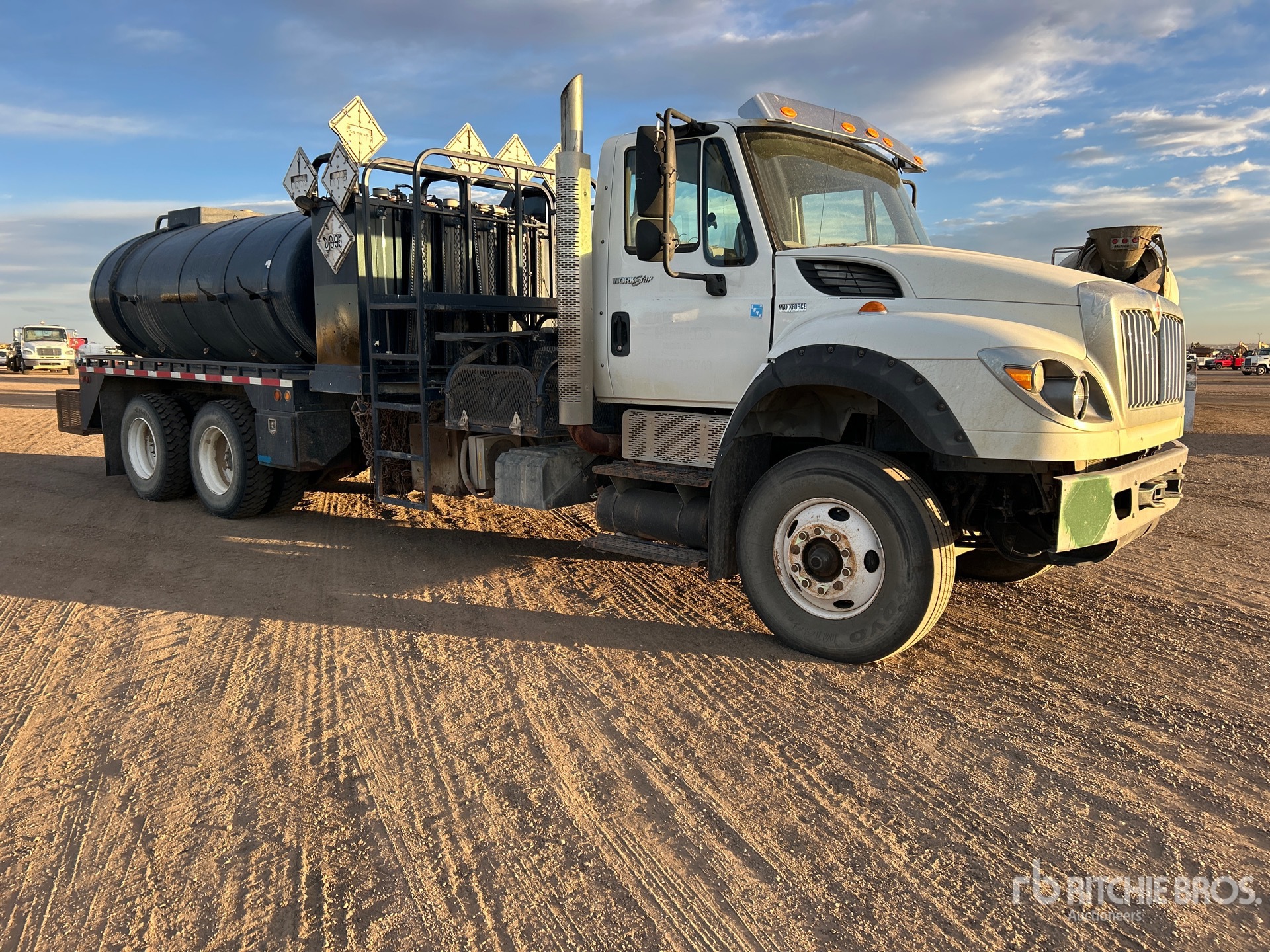 International MaxxForce 13 6 Cylinder Diesel Engine, 2013 US EPA Label, Manual Transmission, Differential Lock, 20000 lb Front Axle, 40000 lb Rears, 60000 lb GVWR, 295/80R22.5 Front Tires, 11R22.5 Rear Tires, Double Frame, Air Ride Suspension, 264 in Wheelbase, PTO, 2013 Hernco Fabrications Services Tank, Catwalk
