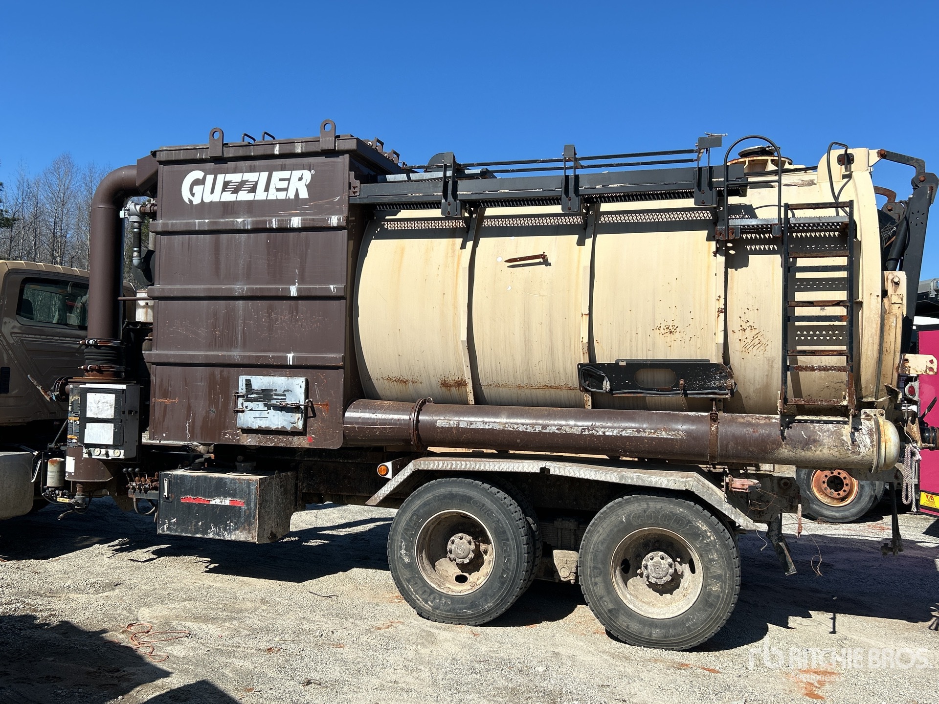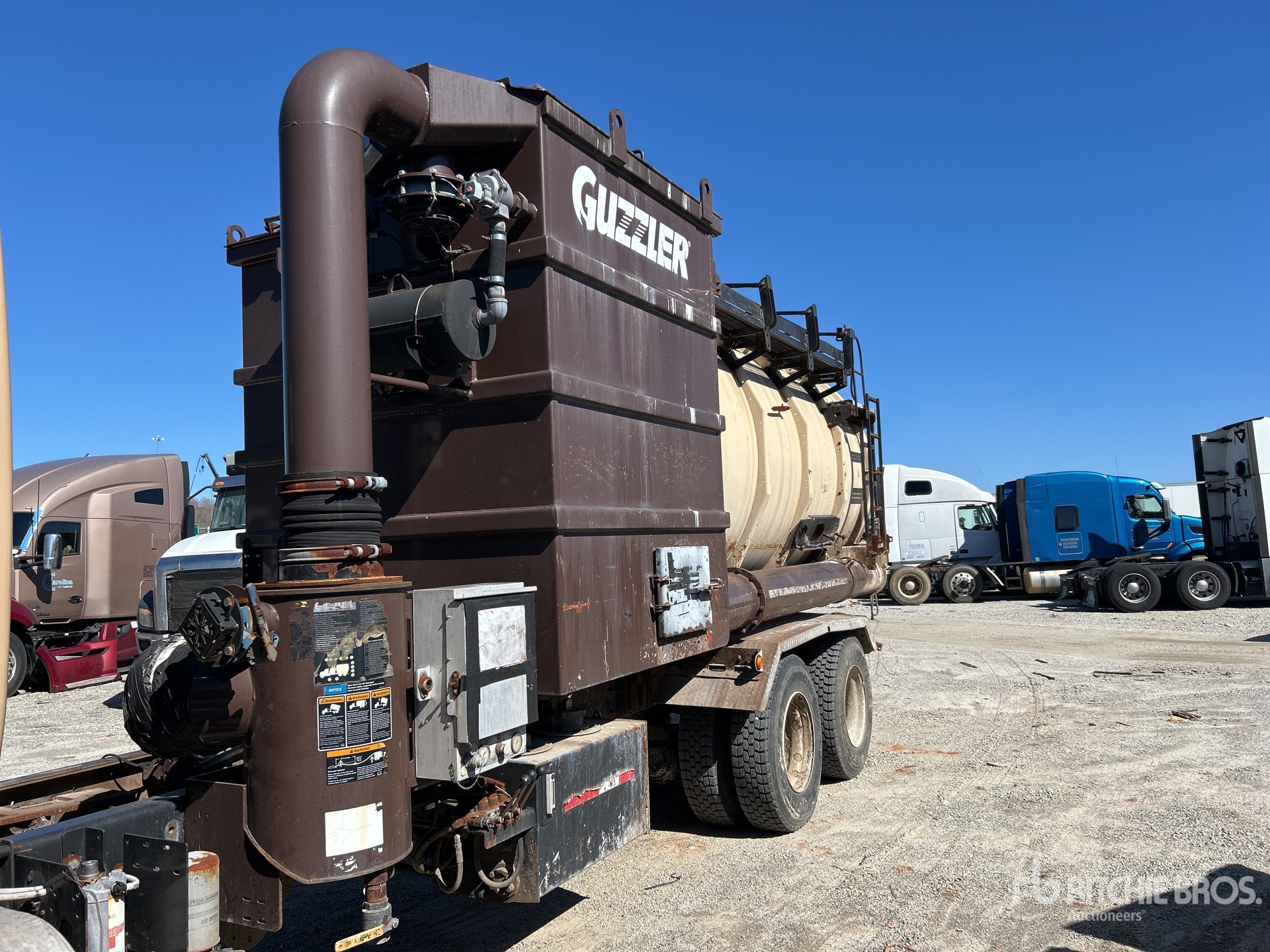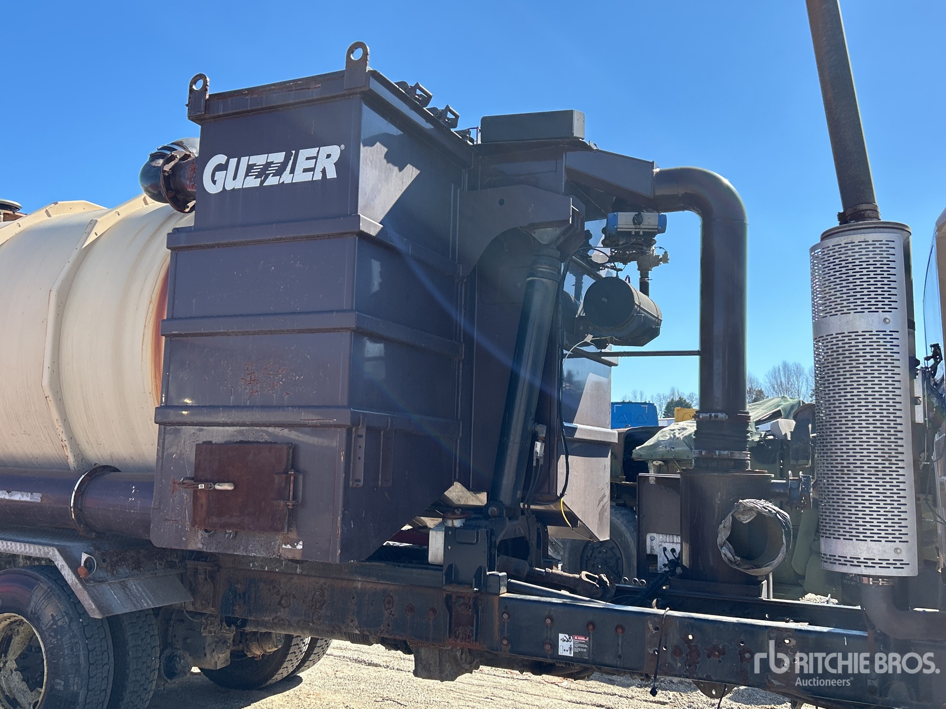 International MaxxForce 13 6 Cylinder Diesel Engine, 2013 US EPA Label, Eaton Fuller Manual Transmission, 20000 lb Front Axle, 46000 lb Rears, 66000 lb GVWR, Air Ride Cab, 425/65R22.5 Front Tires, 11R22.5 Rear Tires, Dual Steering Boxes, Double Frame, Hendrickson RT/RTE Series Spring over Walking Beam Suspension, 272 in Wheelbase, PTO, Steel Debris Tank, Hoist, Vibrator, Hydraulic Lift Tailgate, Hydraulic Tailgate Locks, Hydraulic Driven Pump, GUZZLER Blower