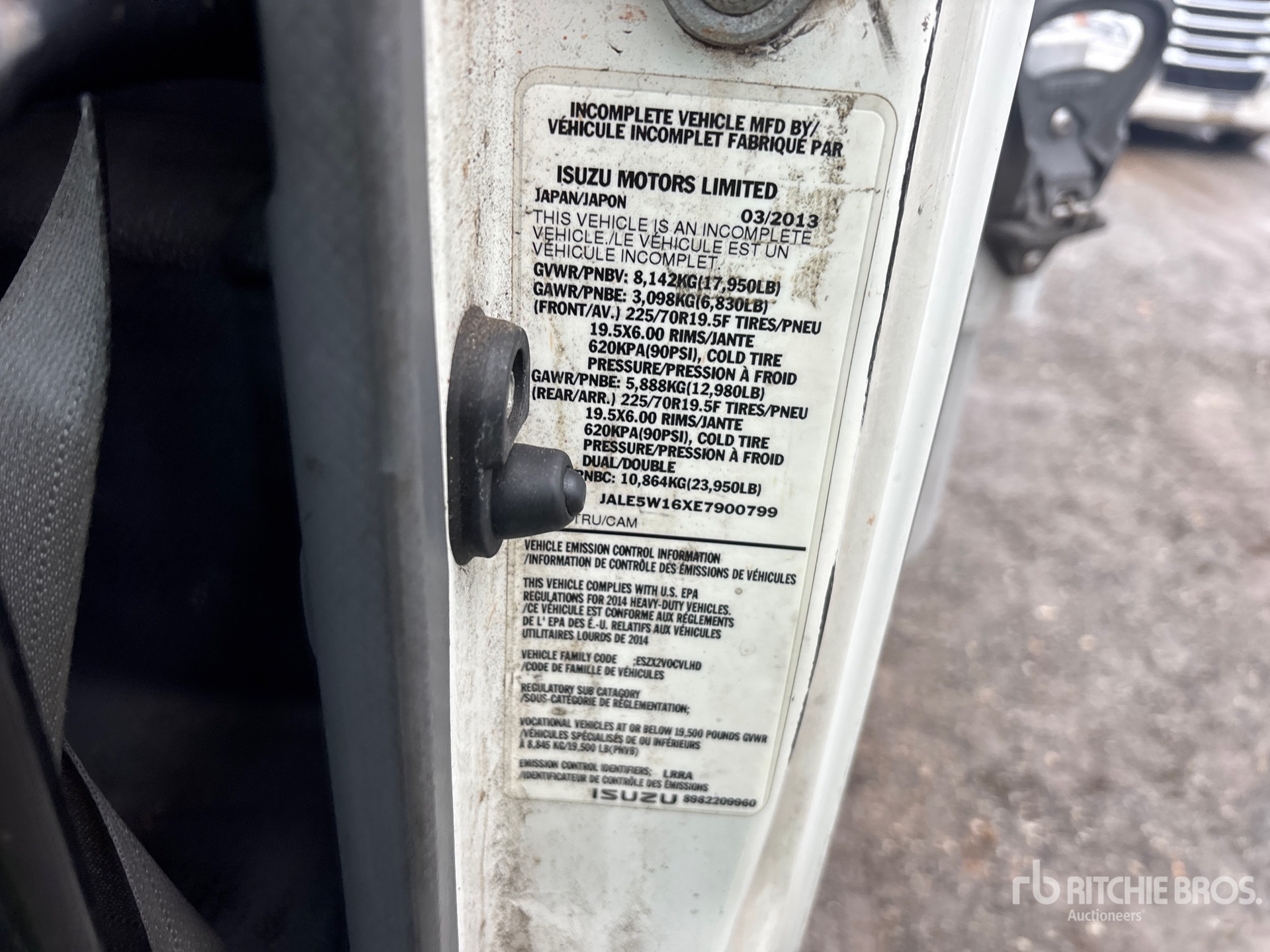 Located in Lane 39 Spot 32, Isuzu 4HK1TC 6 Cylinder Diesel 210 hp Engine, 2013 US EPA Label, Requires Diesel Exhaust Fluid, 9685 Engine hrs, Automatic Transmission, 6830 lb Front Axle, 12980 lb Rears, 17950 lb GVWR, 225/70R19.5, Spring Suspension, 132 in Wheelbase, Thermo King Reefer Unit, Kold King XL 14 ft x 96 in Wide x 97 in High Body, Professionally-Maintained-Fleet-Vehicle-PAG