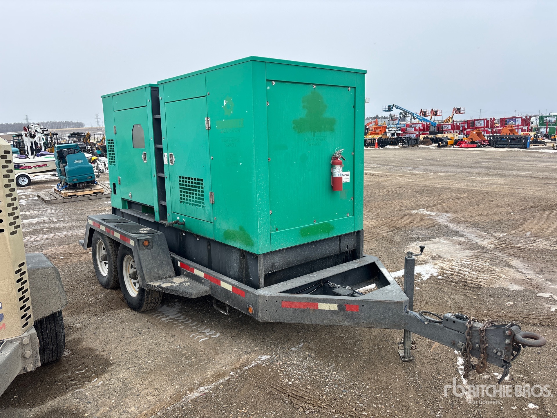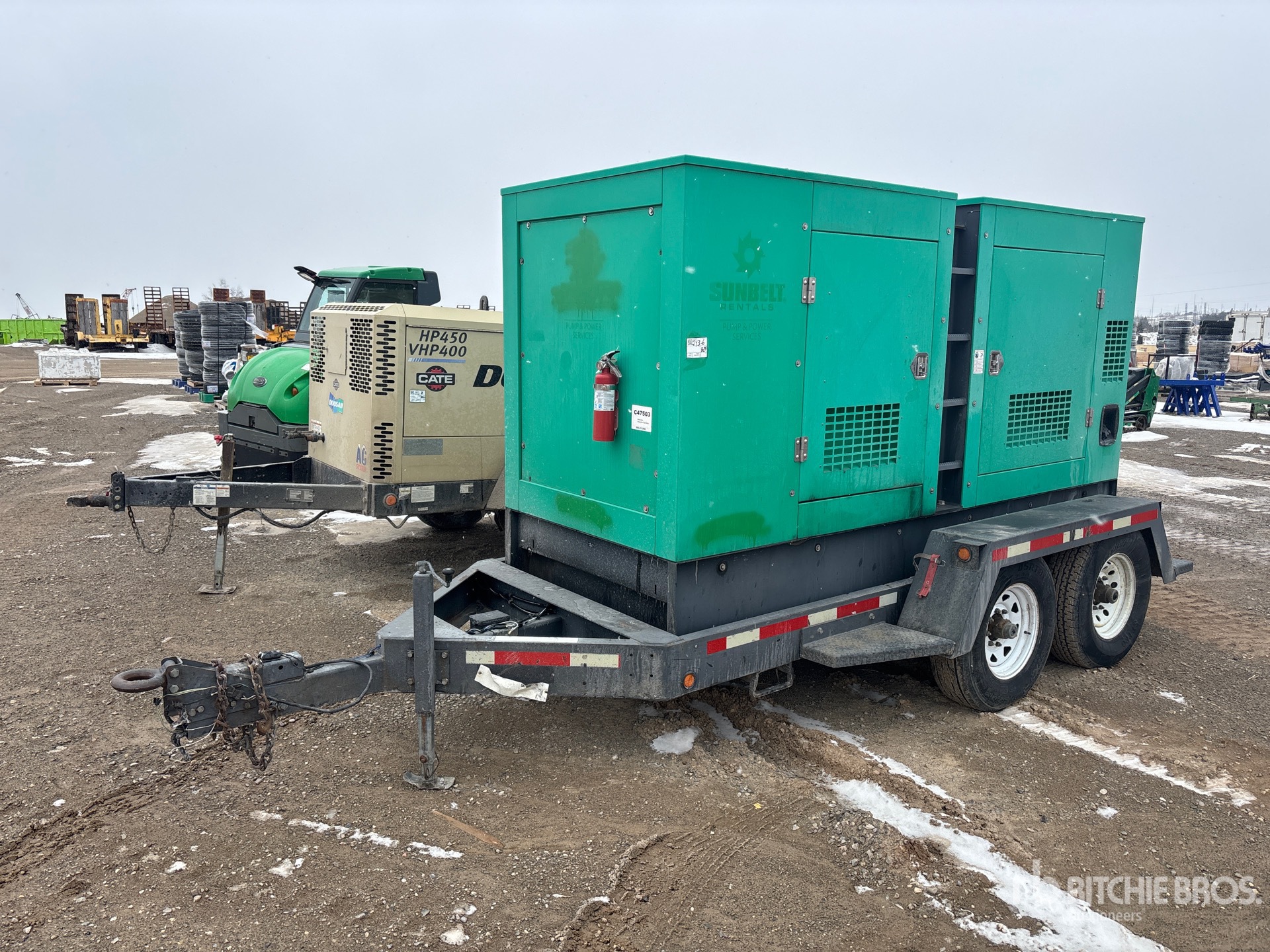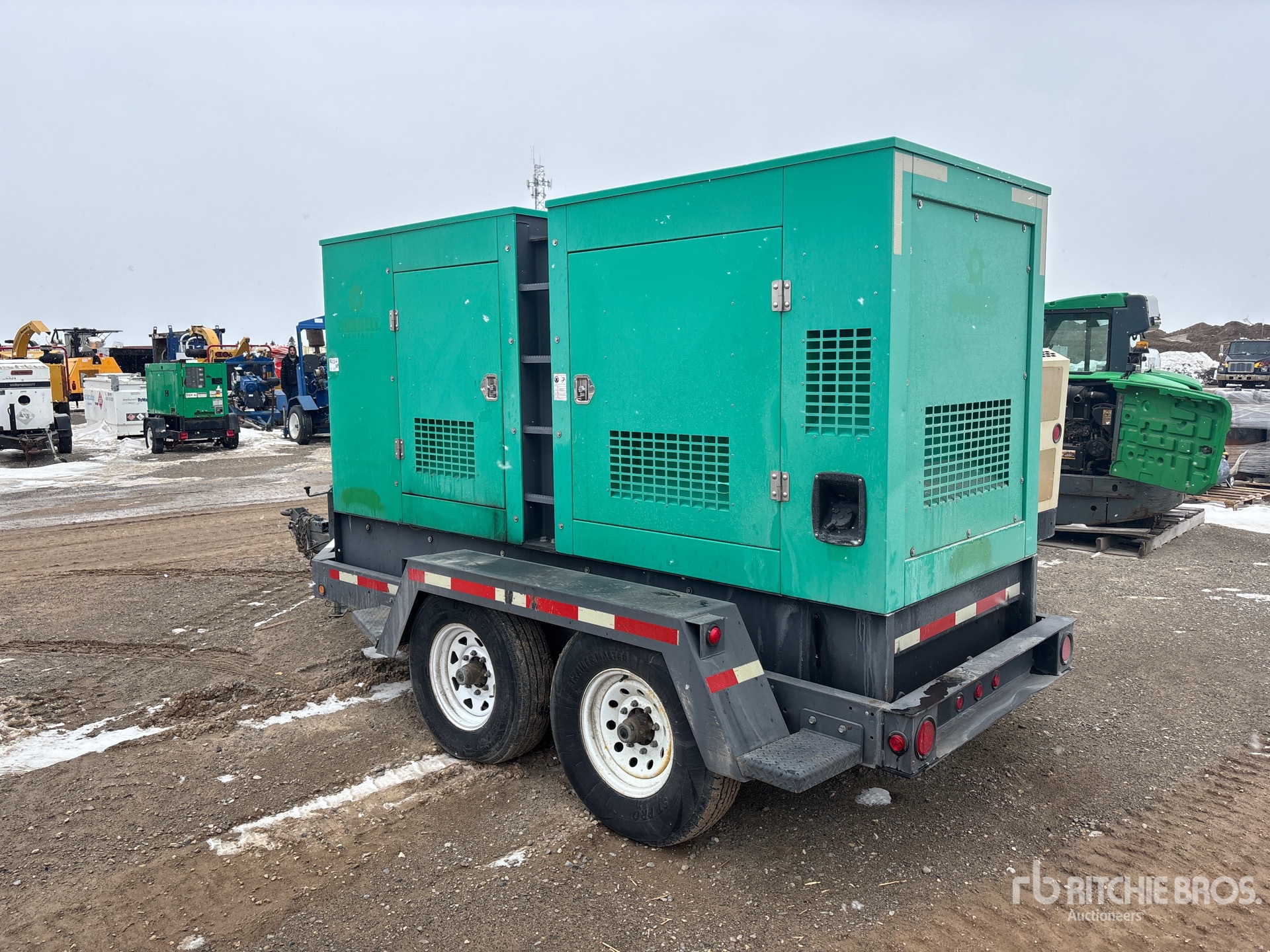 2013 US EPA Label, John Deere AJDXL 6 Cylinder 235 kW 6.8 L Diesel Engine, 237 kVA/190 kW Rated 3 Phase Output, 480 V / 208 V Rated Voltage, 190 kVA,/190 kW, Rated Single Phase Output, 240 V Rated Voltage, 240 V & 120 V Receptacles, Bottom Mounted Fuel Tank, Lunette Ring Carrier Trailer