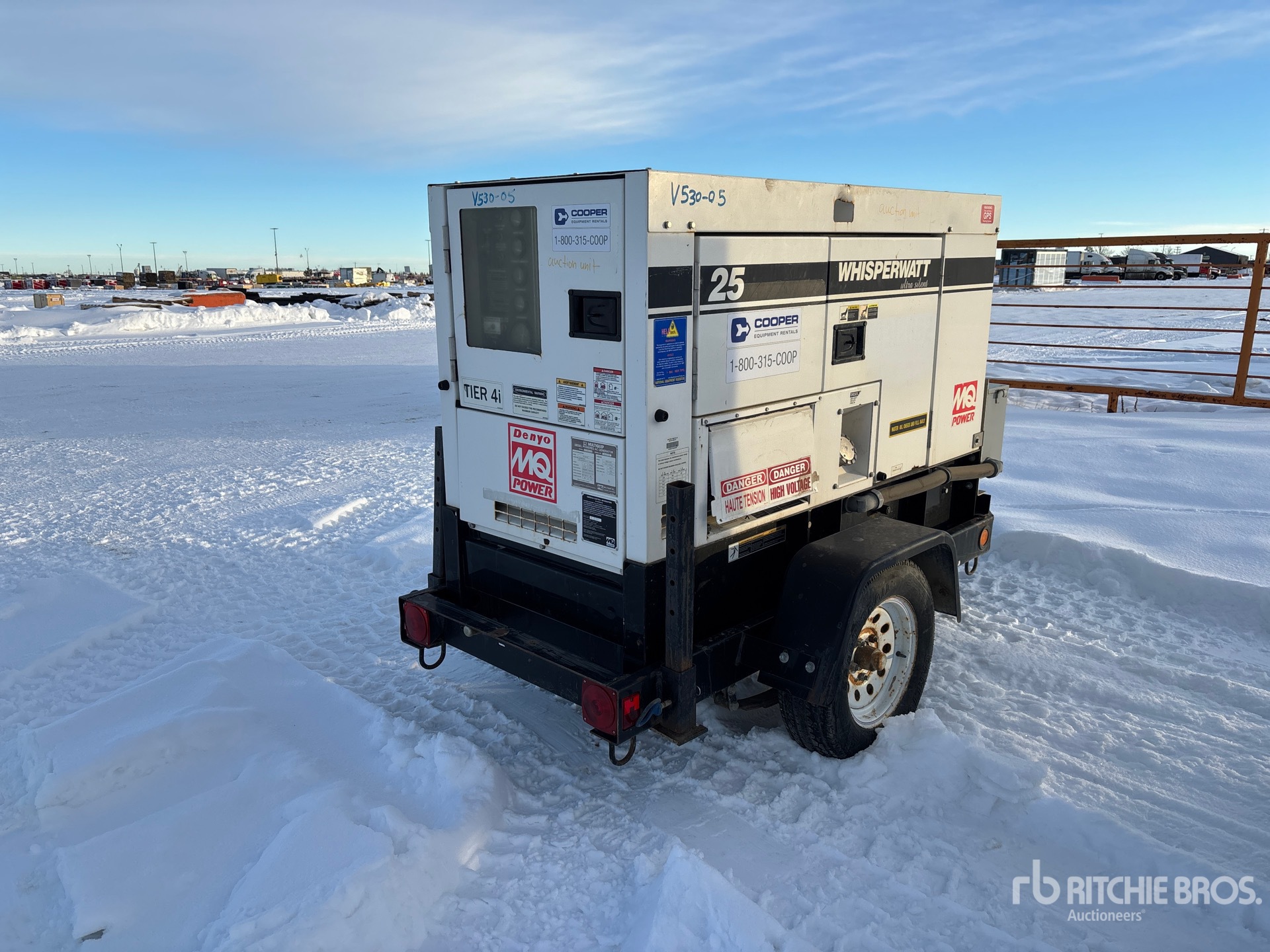Isuzu 4 Cylinder 2.1 L Diesel Engine, 25 kVA/20 kW Rated 3 Phase Output, 240 V / 480 V Rated Voltage, Lunette Ring Carrier Trailer